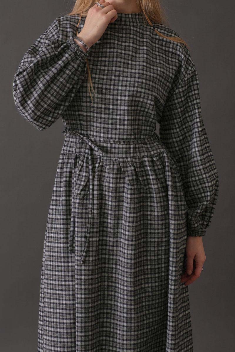 Dropped Shoulder Plaid Dress – Navy is an elegant and comfortable design that brings together modern ease with a classic plaid pattern. Its relaxed fit and dropped shoulder details allow freedom of movement throughout the day, while the high-neck design adds a minimal and refined look to the dress. Thanks to its soft-textured fabric, it offers warm and pleasant wear during the winter season.
