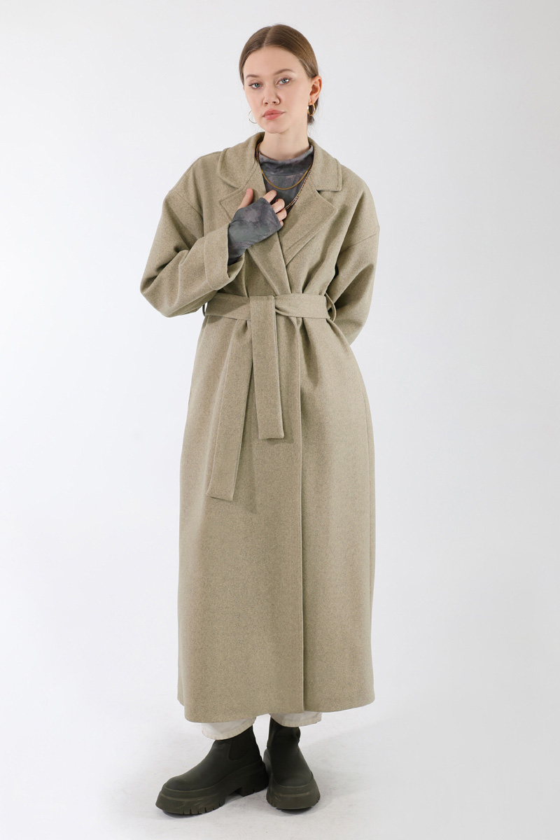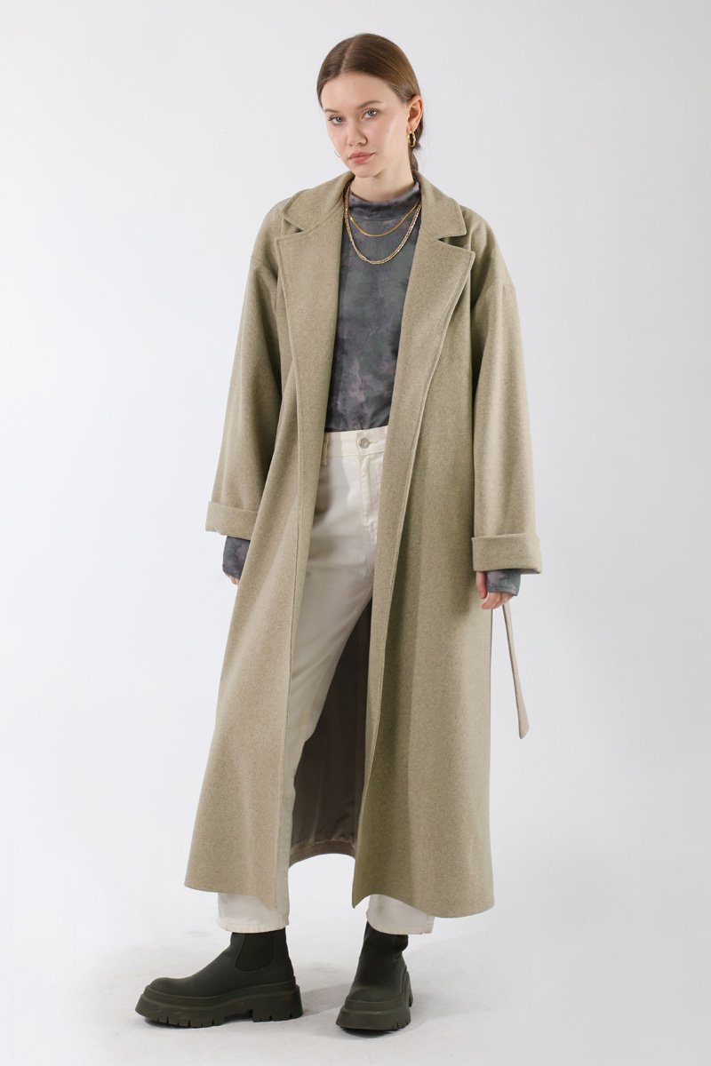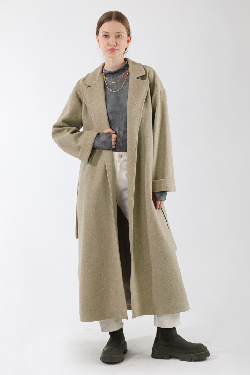 Duble Kol Kaban Koyu Taş. Ceket yakalıdır. Düşük omuzludur. Duble kolludur. Kuşaklıdır. Astarlıdır. Günlük kullanım ve özel günlerinizde tercih edebilirsiniz.