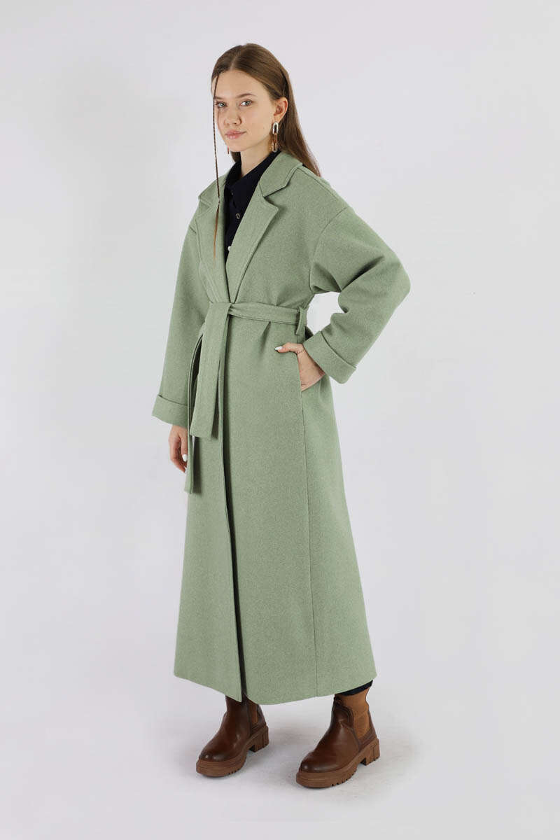 Duble Kol Kaban Mint. Ceket yakalıdır. Düşük omuzludur. Duble kolludur. Kuşaklıdır. Astarlıdır. Günlük kullanım ve özel günlerinizde tercih edebilirsiniz.
