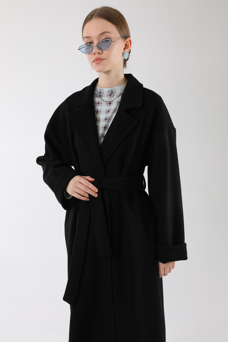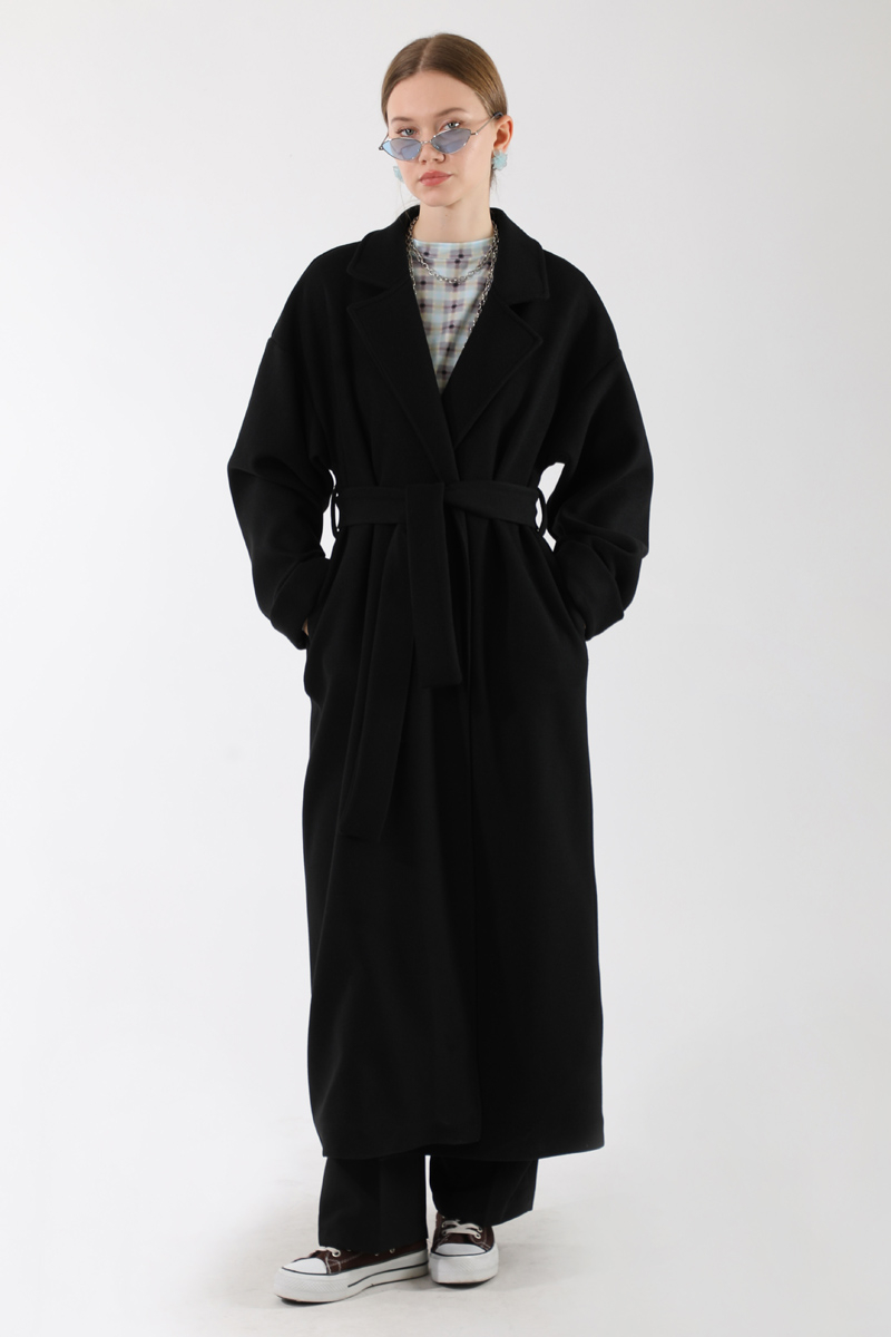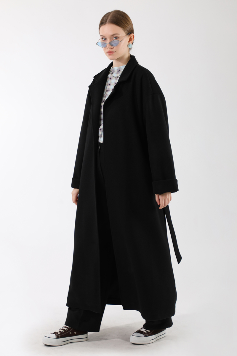 Duble Kol Kaban Siyah. Ceket yakalıdır. Düşük omuzludur. Duble kolludur. Kuşaklıdır. Astarlıdır. Günlük kullanım ve özel günlerinizde tercih edebilirsiniz.