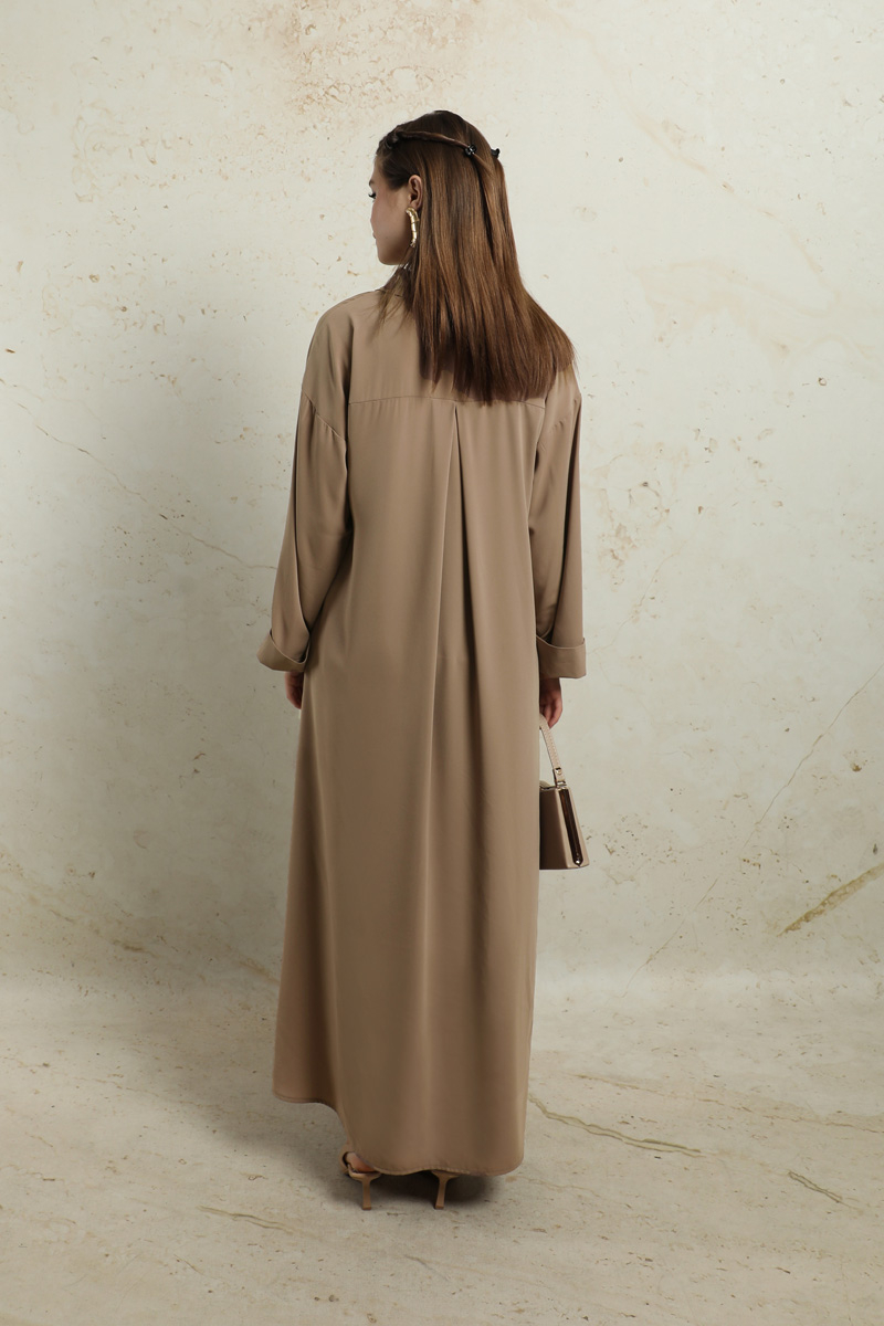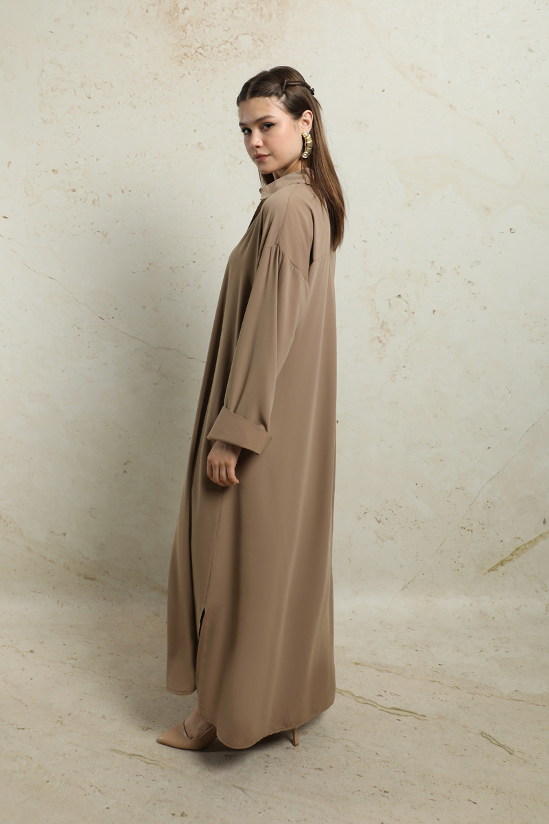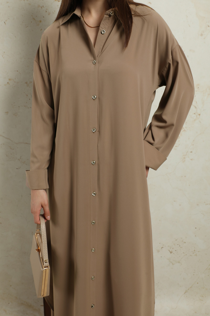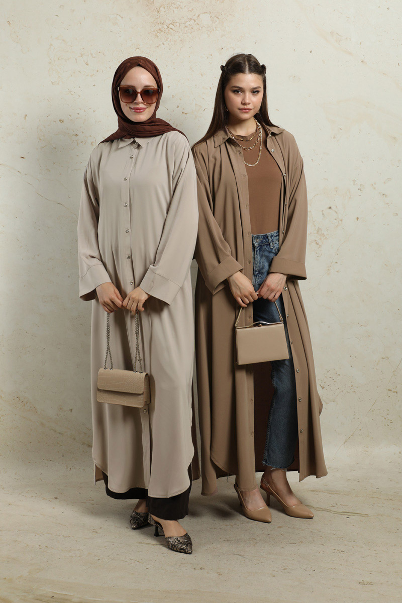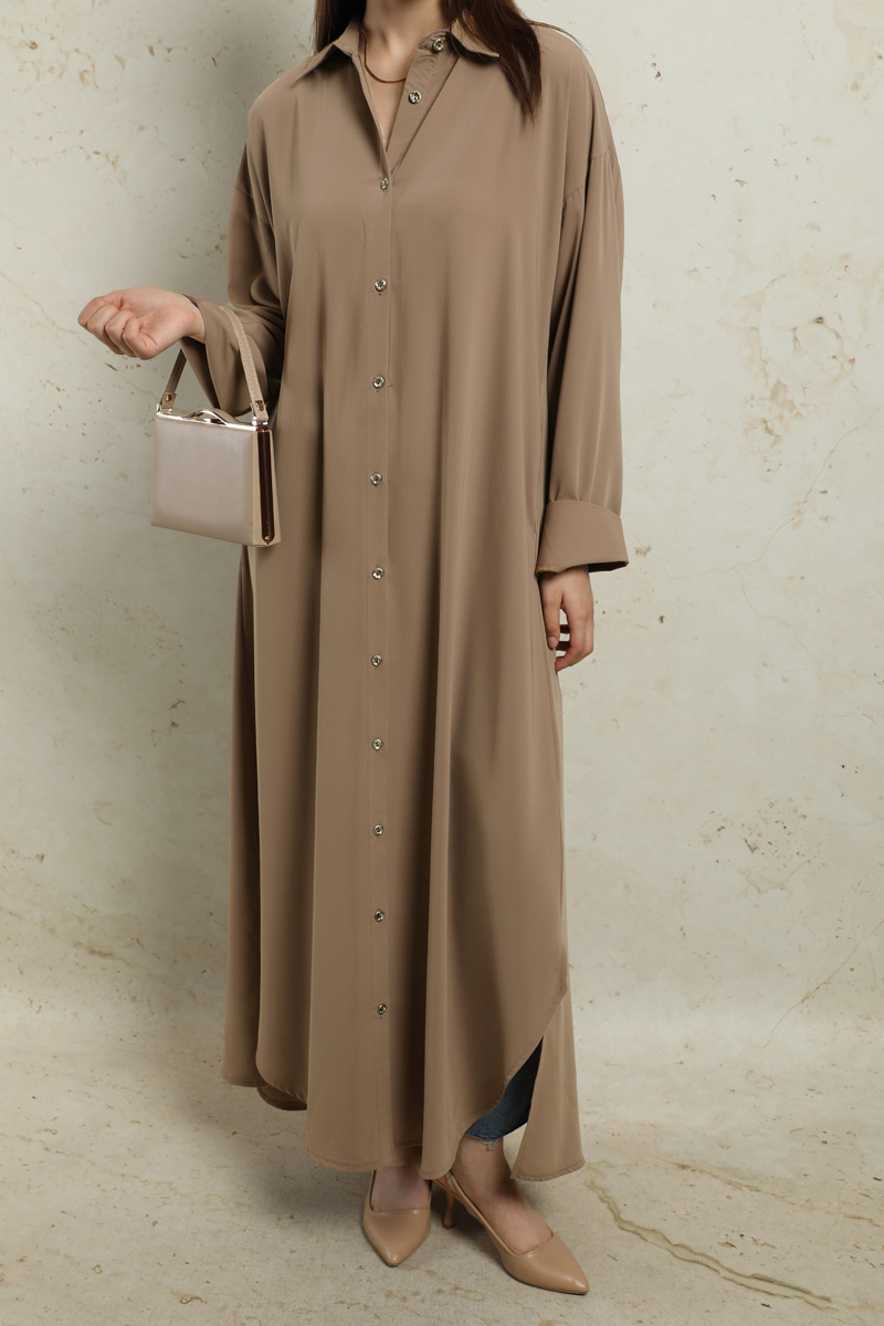 Duble Kol Salaş Gömlek Taba. Gömlek yakalıdır. Düşük omuzludur. Duble koldur. Önü düğmelidir. Yandan ceplidir. Eteği oval kesimdir. Yandan yırtmaçlıdır. Günlük ve özel günlerinizde kullanabilirsiniz.