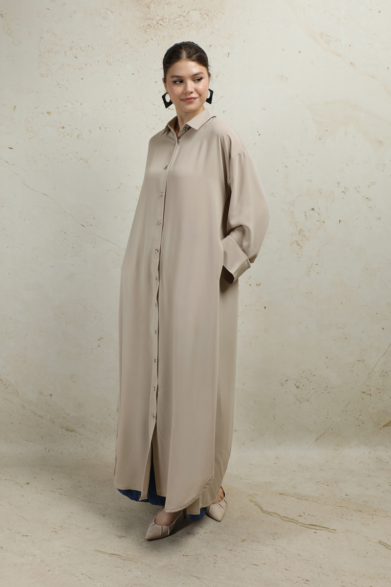 Duble Kol Salaş Gömlek Taş. Gömlek yakalıdır. Düşük omuzludur. Duble koldur. Önü düğmelidir. Yandan ceplidir. Eteği oval kesimdir. Yandan yırtmaçlıdır. Günlük ve özel günlerinizde kullanabilirsiniz.