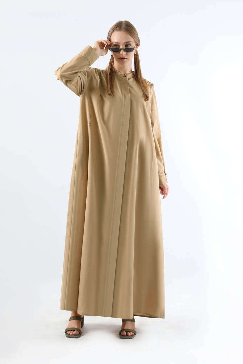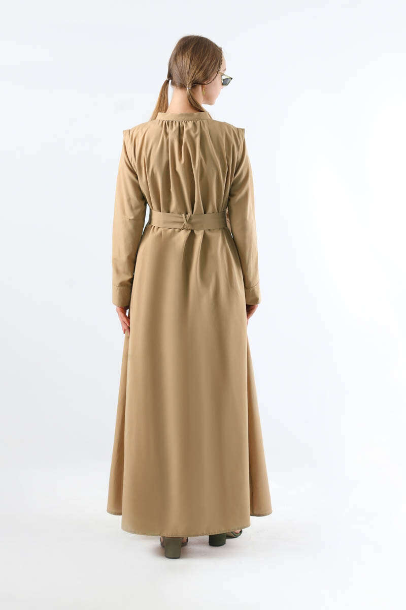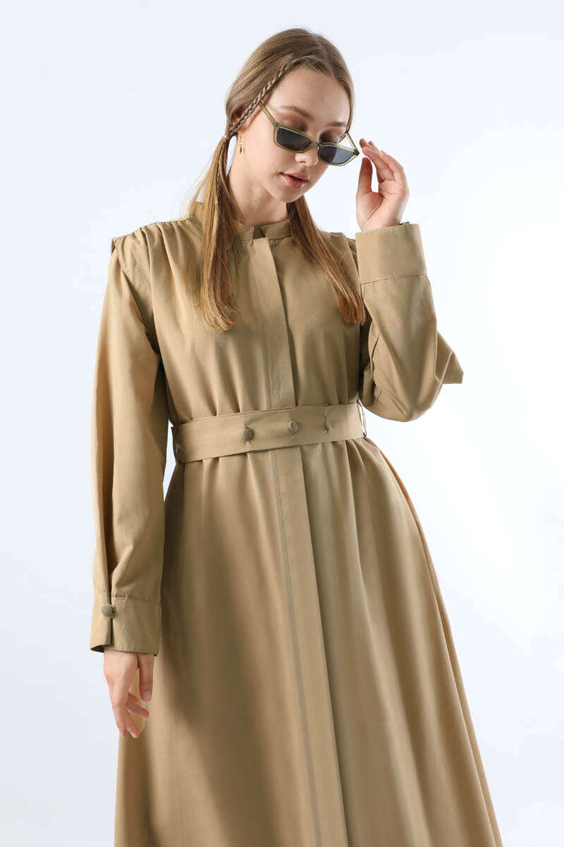 Düğme Detaylı Gömlek Elbise Taş