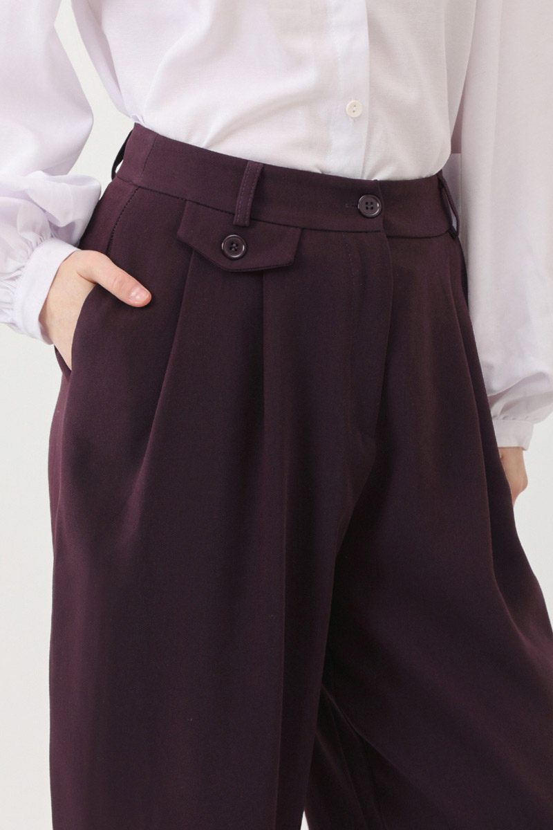 Düğme Detaylı Pantolon Mürdüm