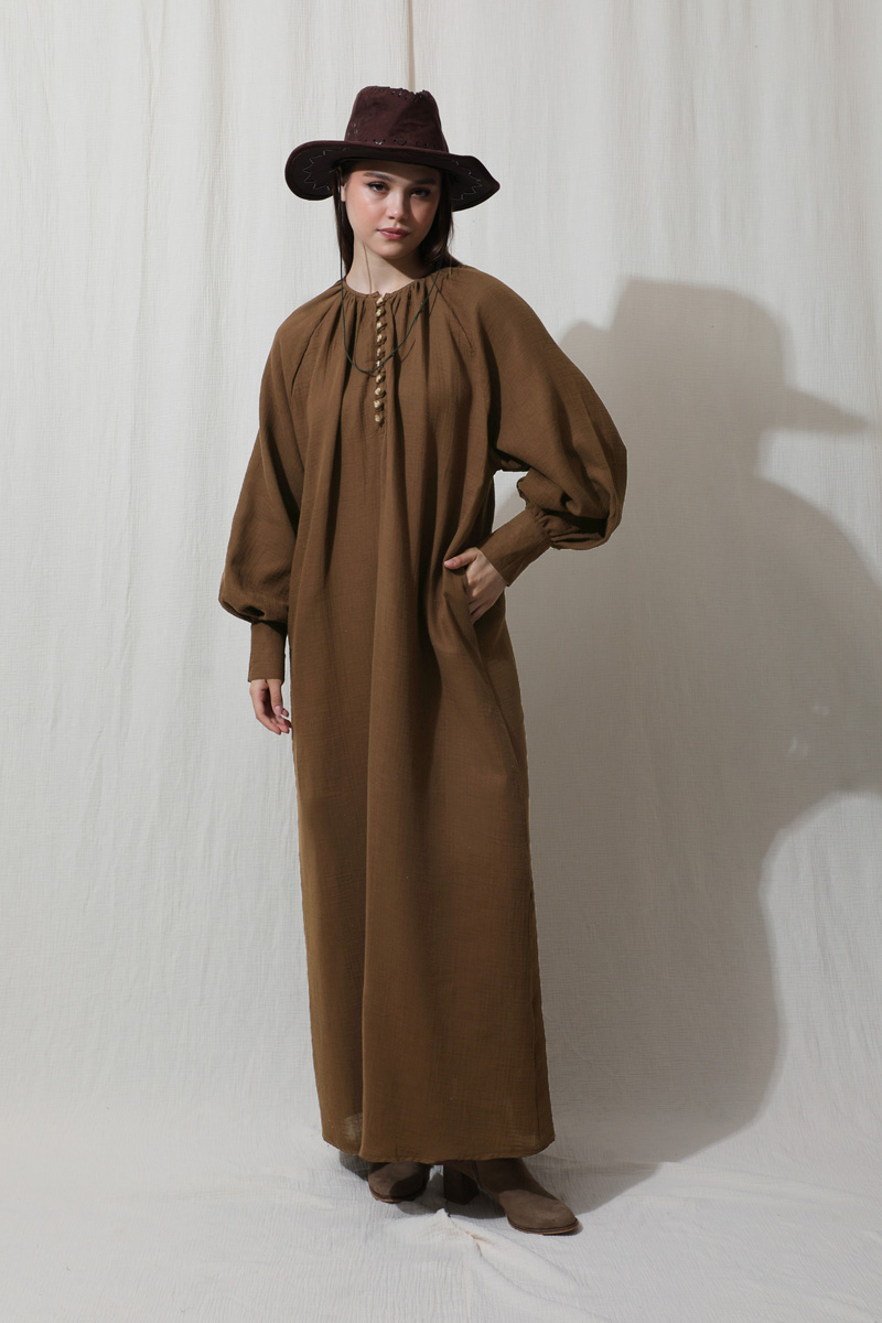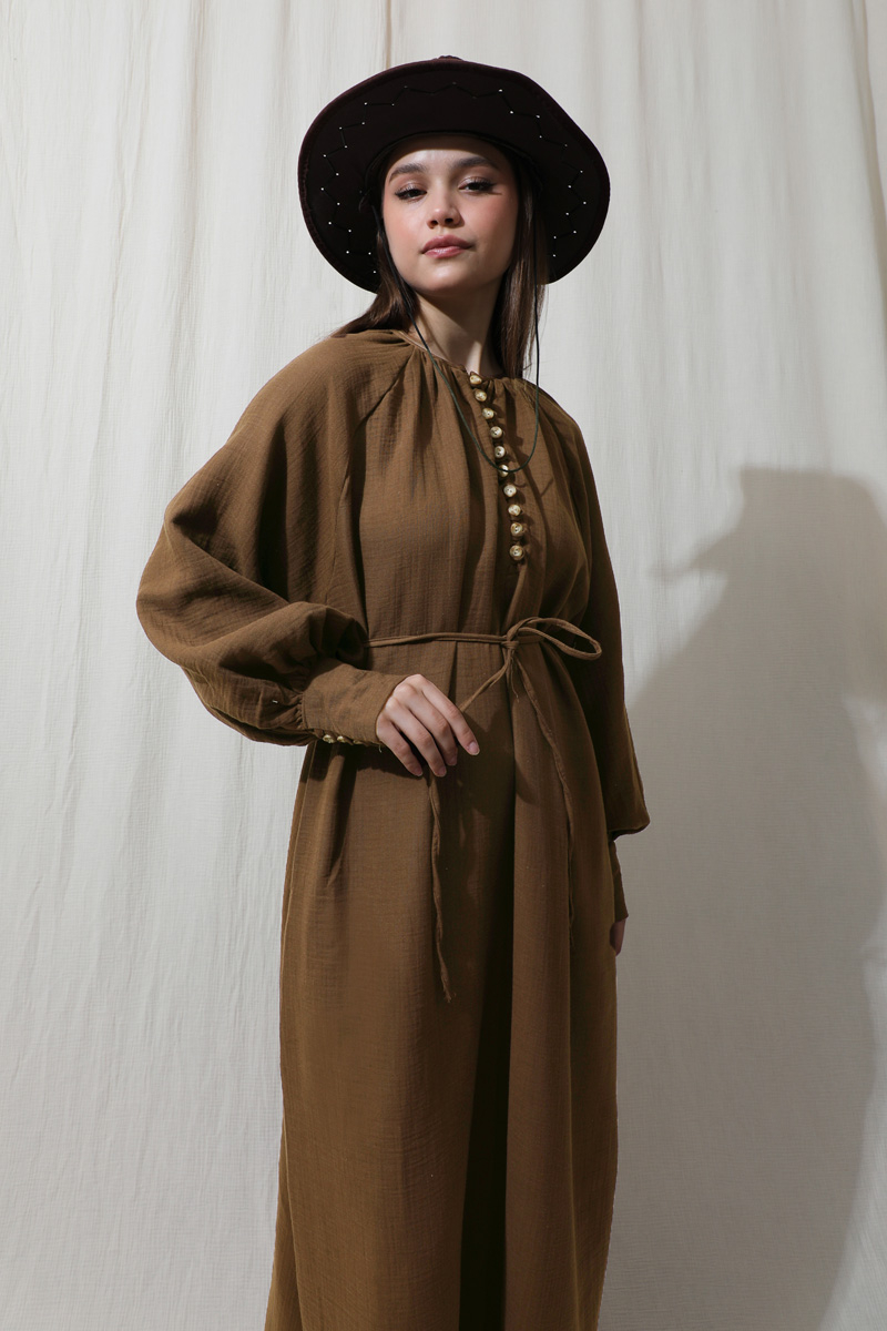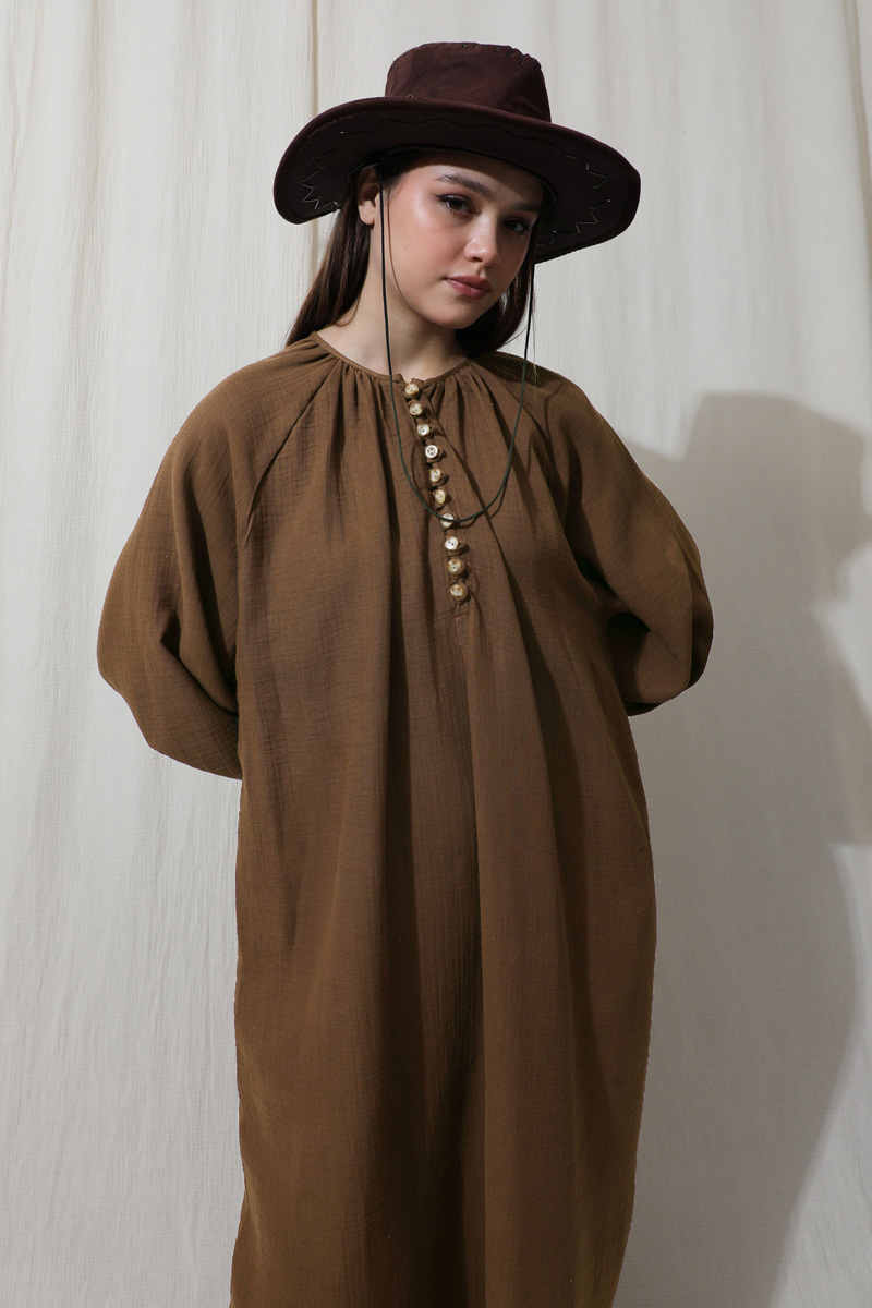 Düğme Yaka Müslin Elbise Lacivert. Bisiklet büzgülü yaka, önden yarım birit düğmeli, yandan gizli cepleri mevcut, ince biye kuşaklı (kuşak için köprü yok), manşetleri kalın ve birit düğmelidir. Astarsızdır müslin kumaş olduğu için iç gösterebilir ürün içine içlik ürünlerimizden tercih edebilirsiniz. Yazlık ve günlük kullanım için uygundur.