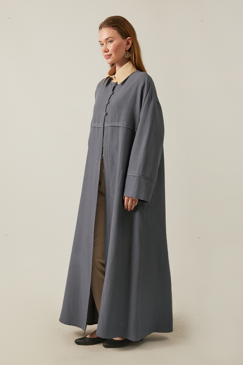 Düğmeli Keten Abaya Füme