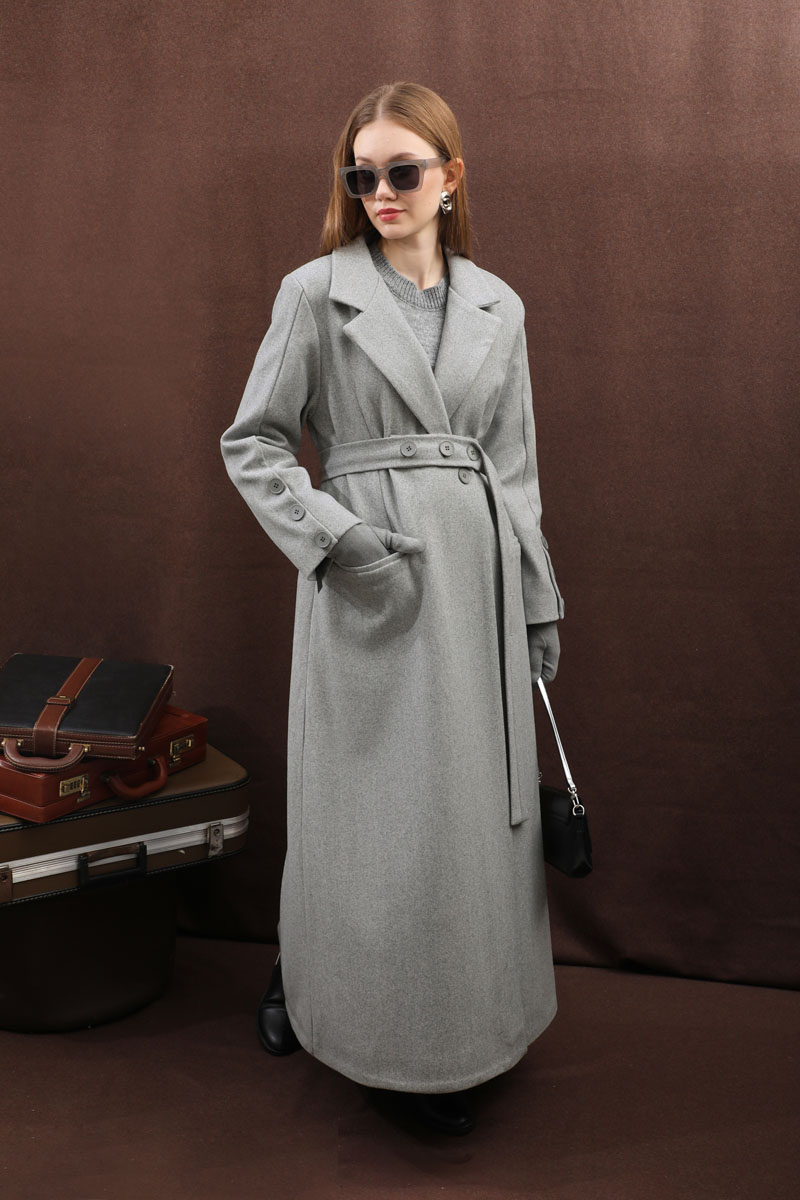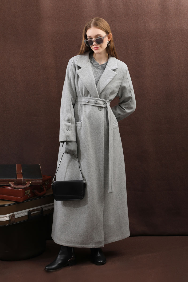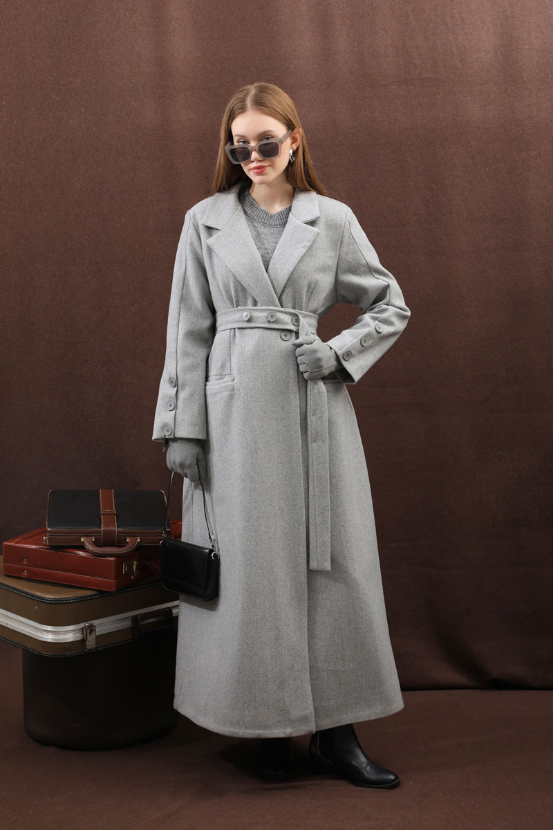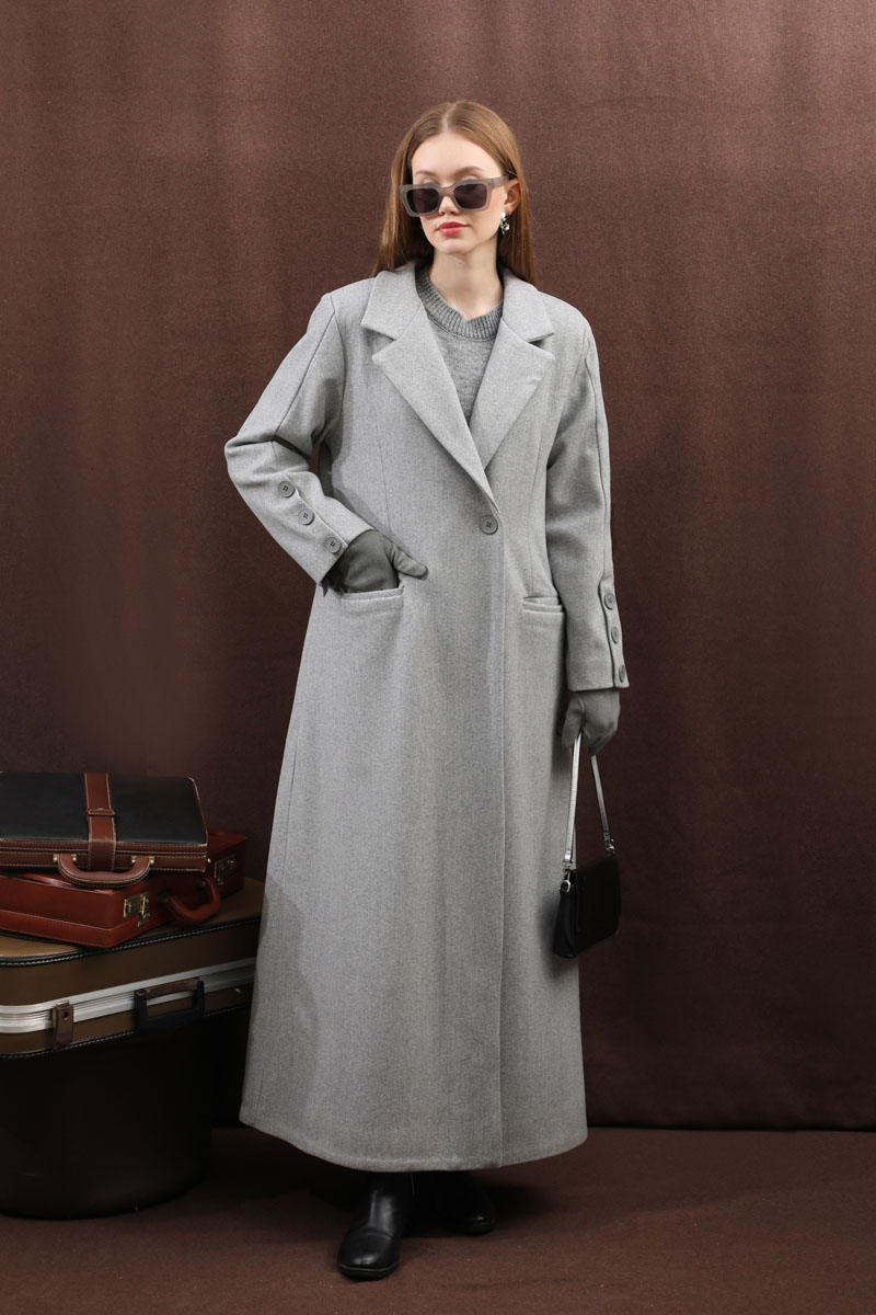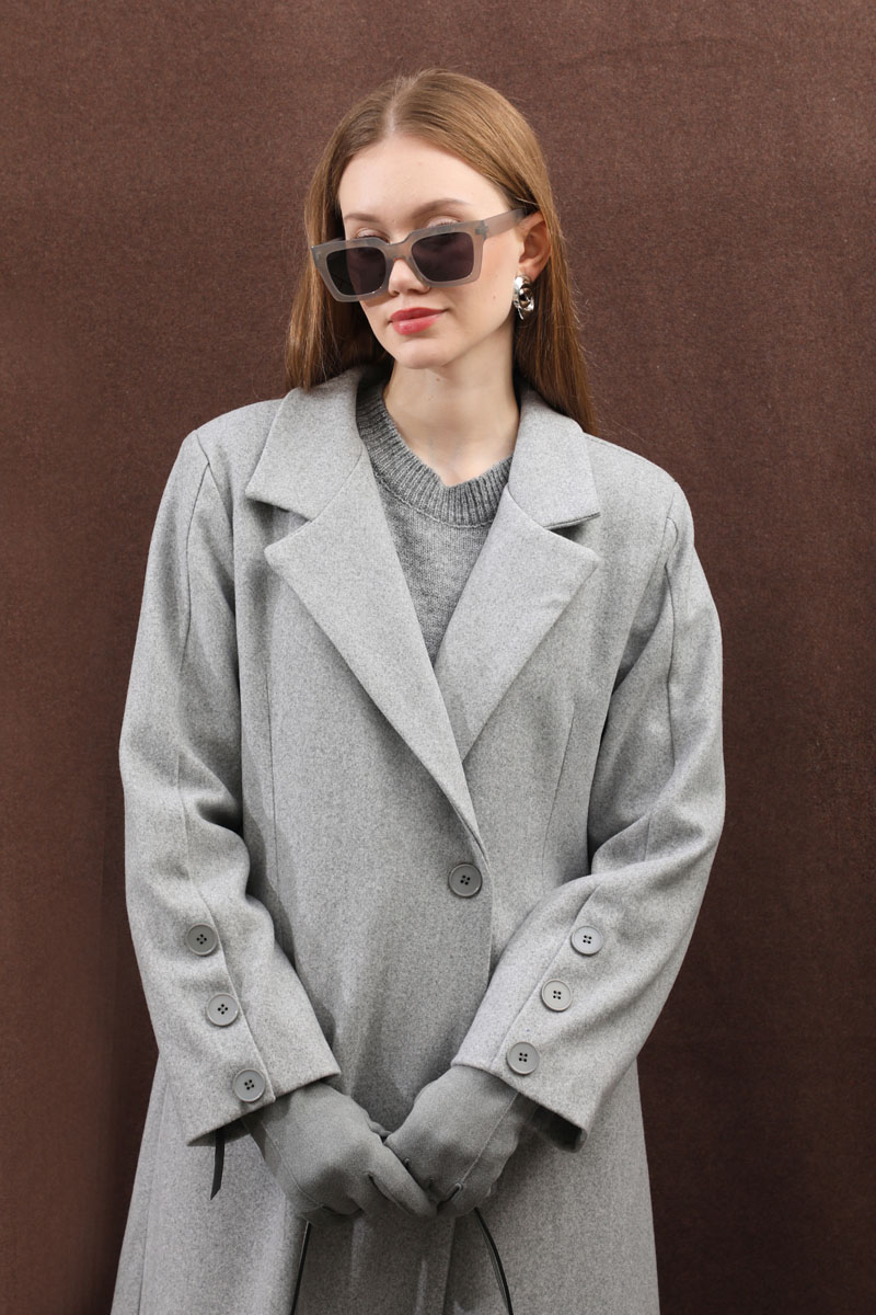 Düğmeli Klasik Kaban Gri