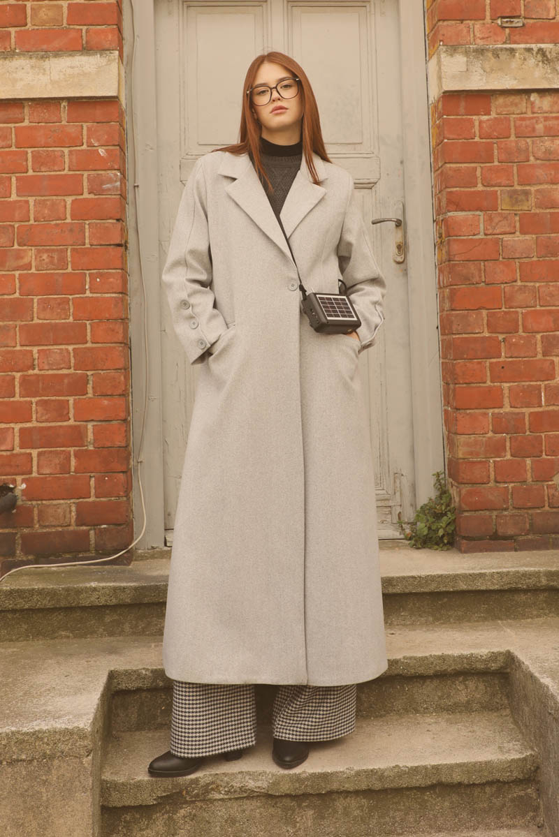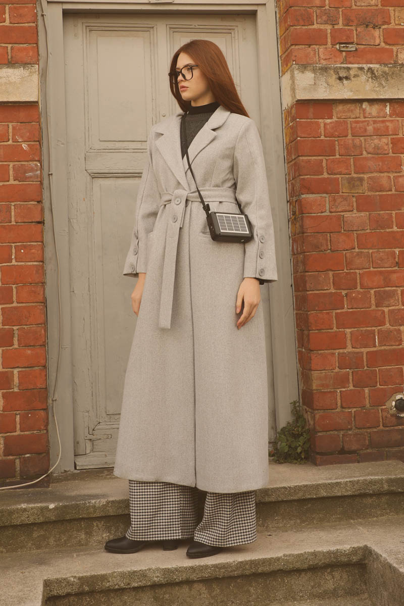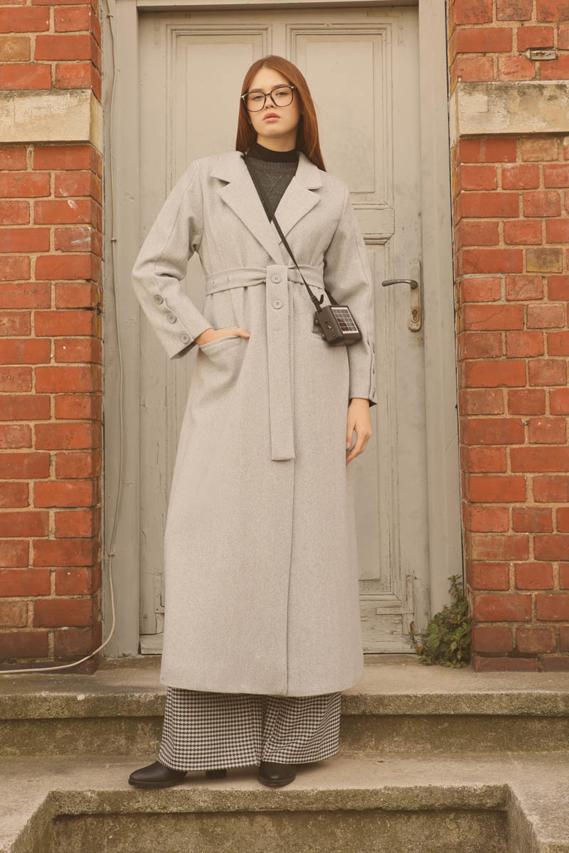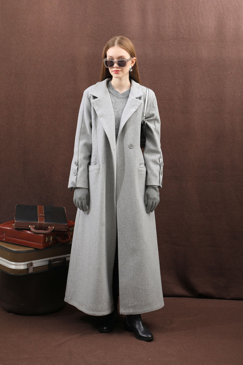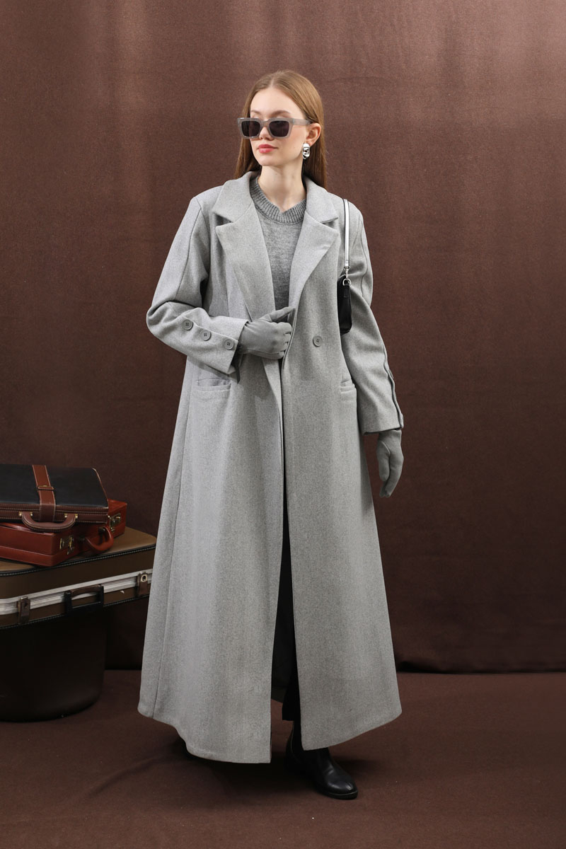 Düğmeli Klasik Kaban Gri