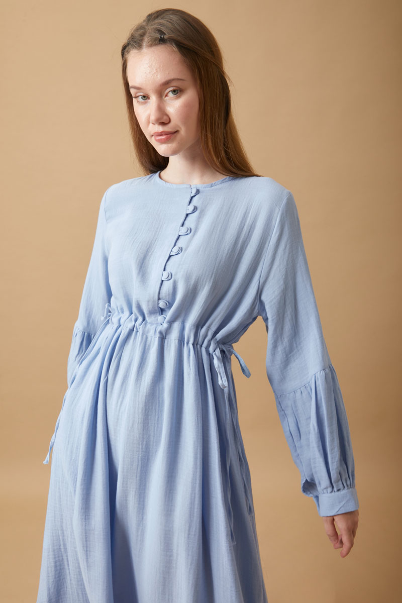 Düğmeli Müslin Elbise Bebe Mavisi