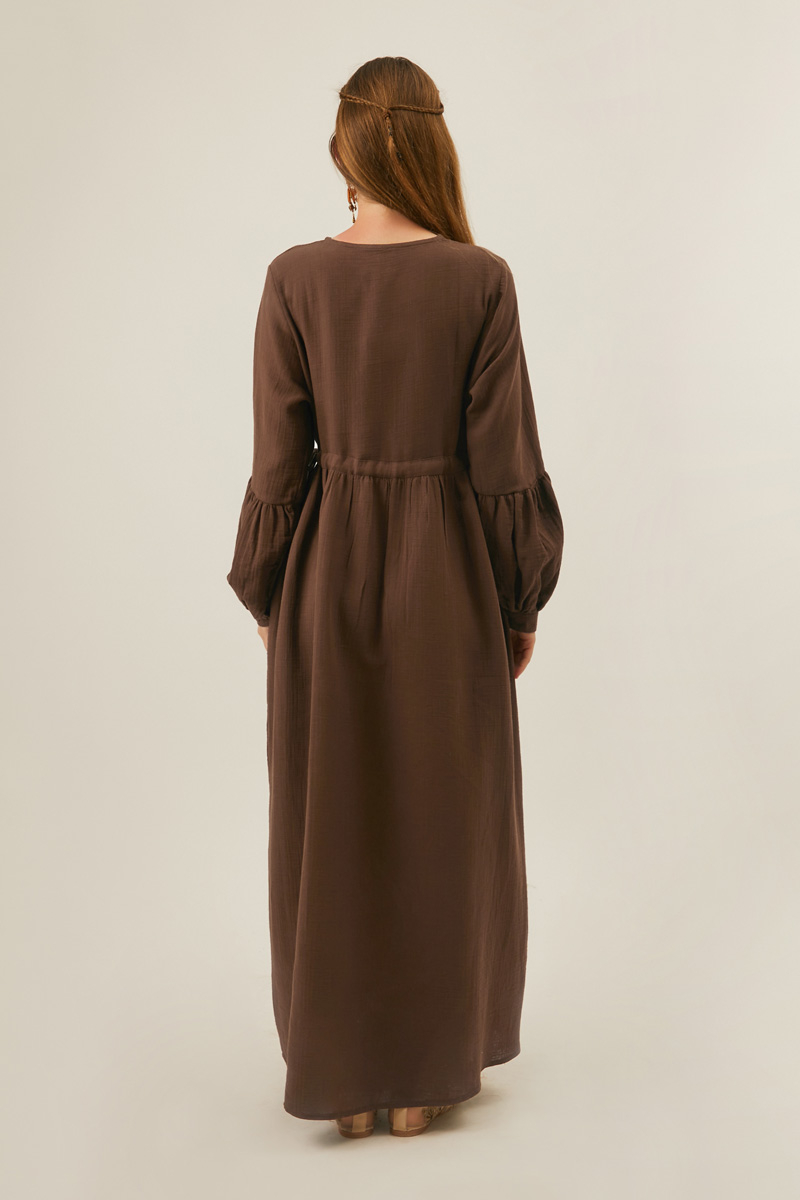 Düğmeli Müslin Elbise Kahverengi