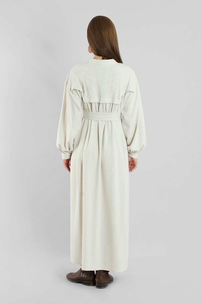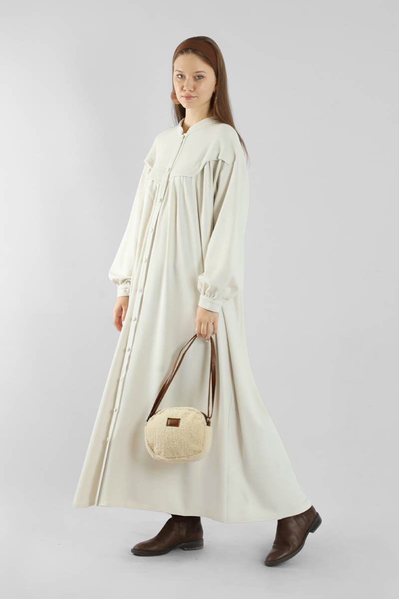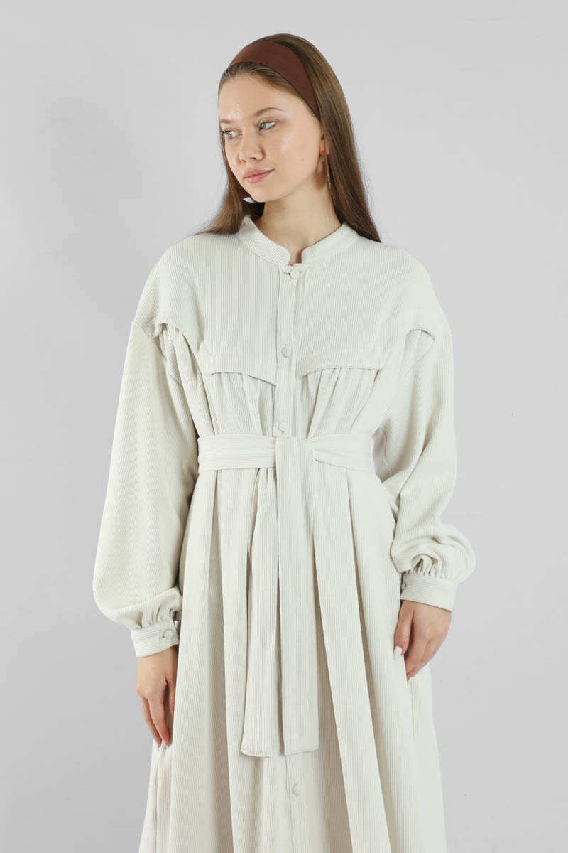 Düğmeli Triko Elbise Ekru. Hakim yakalıdır. Ön roba altında büzgü detaylıdır. Düşük kolludur. Kaplama düğmelidir. Kuşaklıdır. Günlük kullanım ve özel günlerinizde tercih edebilirsiniz.