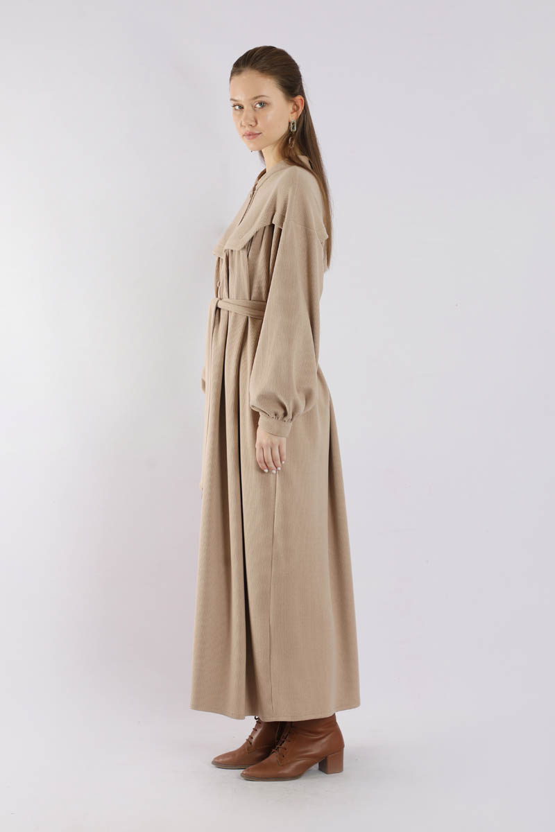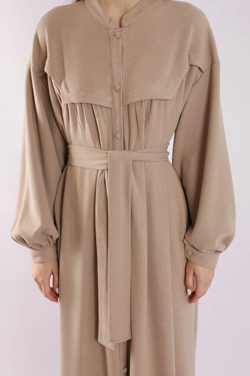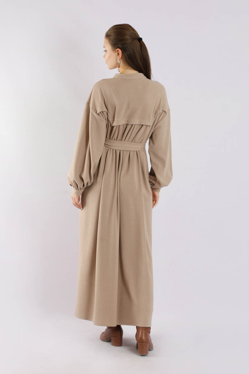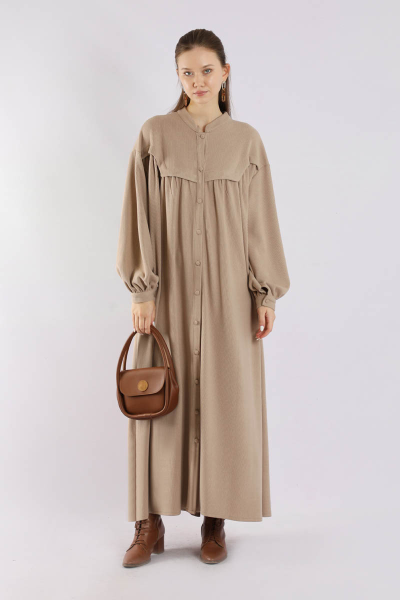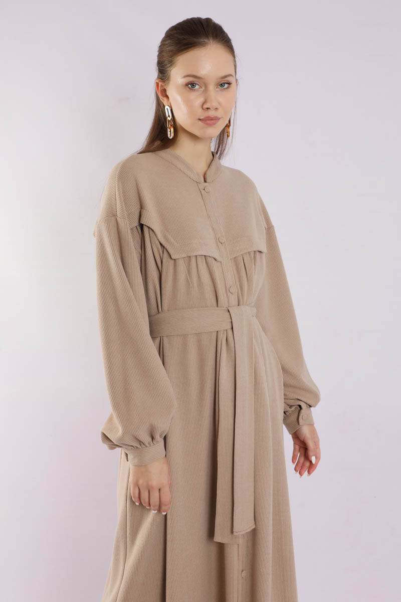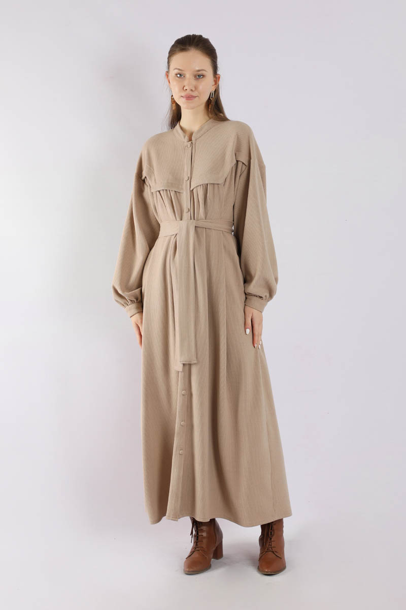 Düğmeli Triko Elbise Pudra. Hakim yakalıdır. Ön roba altında büzgü detaylıdır. Düşük kolludur. Kaplama düğmelidir. Kuşaklıdır. Günlük kullanım ve özel günlerinizde tercih edebilirsiniz.