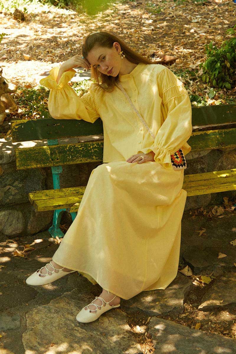 Duru Büzgülü Etek Tereyağı Sarısı