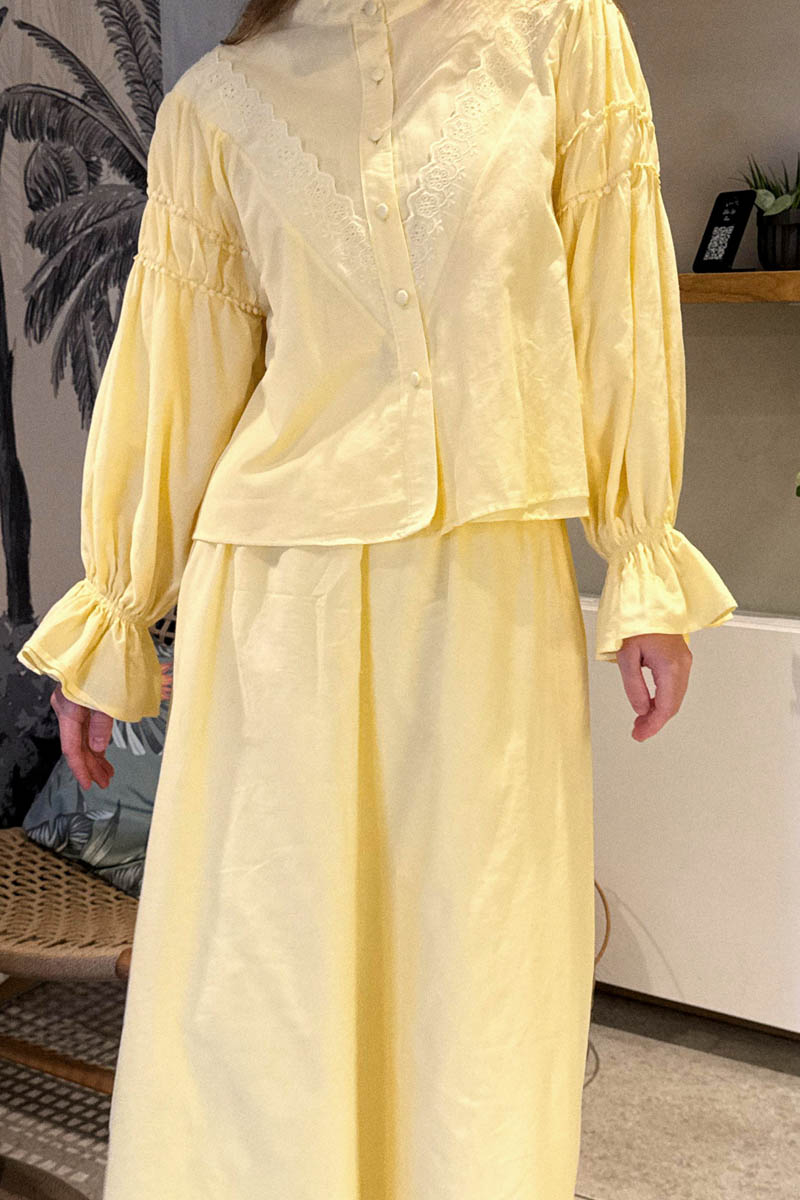 Duru Dantelli Gömlek Tereyağı Sarısı