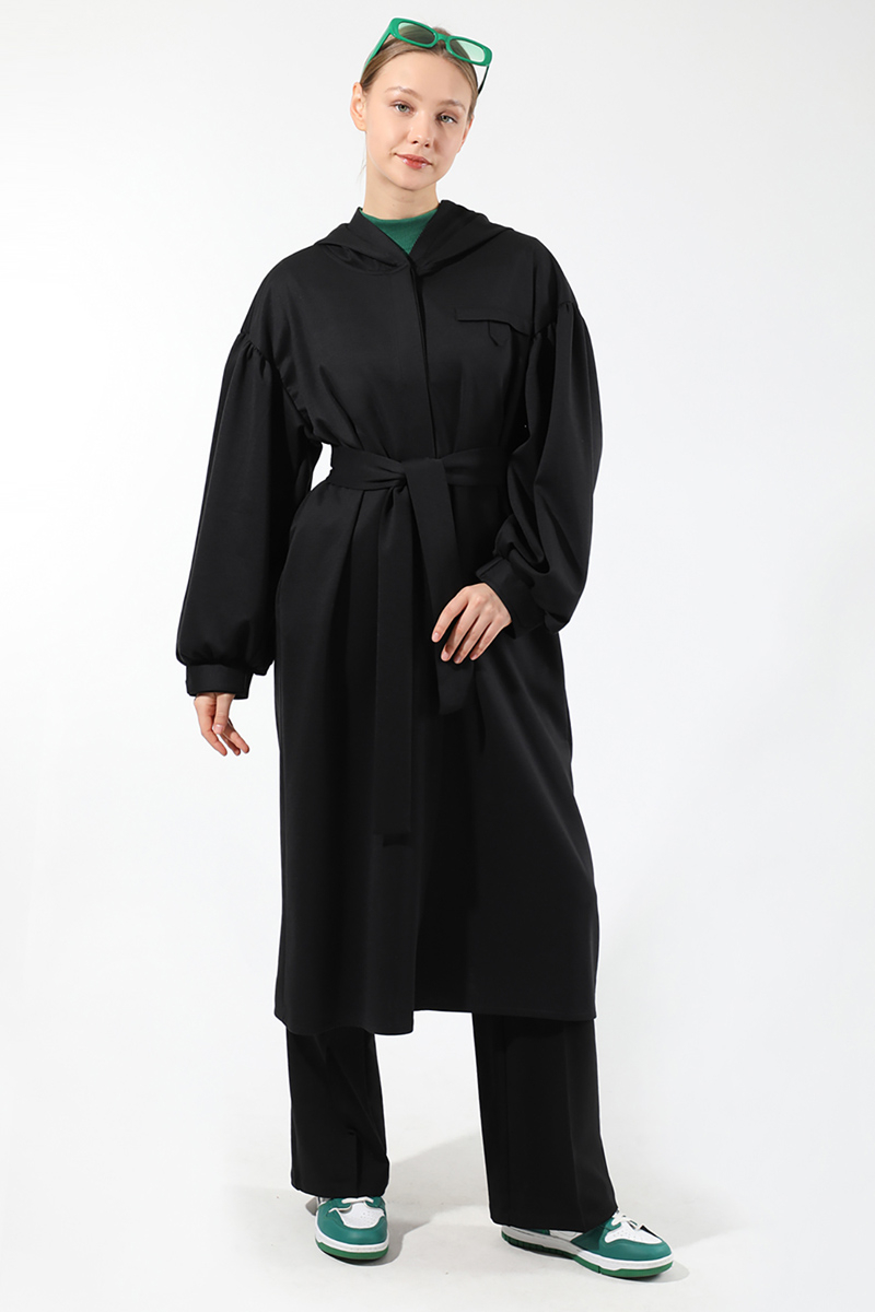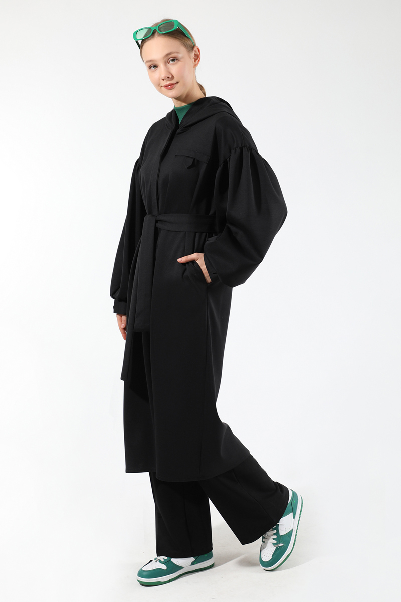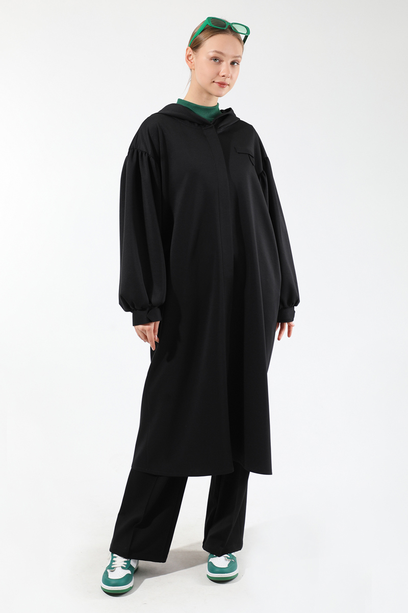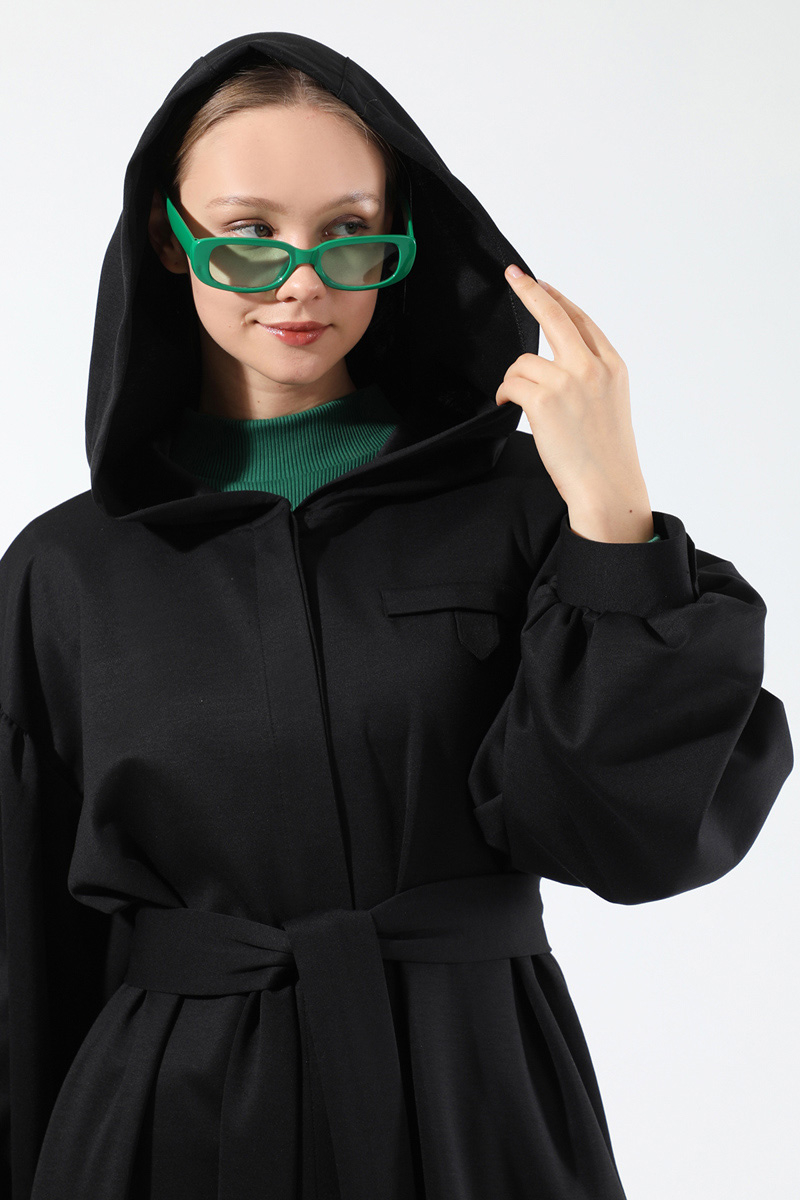 Düşük Balon Kol Kapüşonlu Tunik Siyah. Balon kolludur. Manşeti pasif kemer detaylıdır. Gizli düğme detaylıdır. Kemerlidir. Ceplidir. Kuşaklıdır. Günlük kullanım ve özel günlerinizde tercih edebilirsiniz.