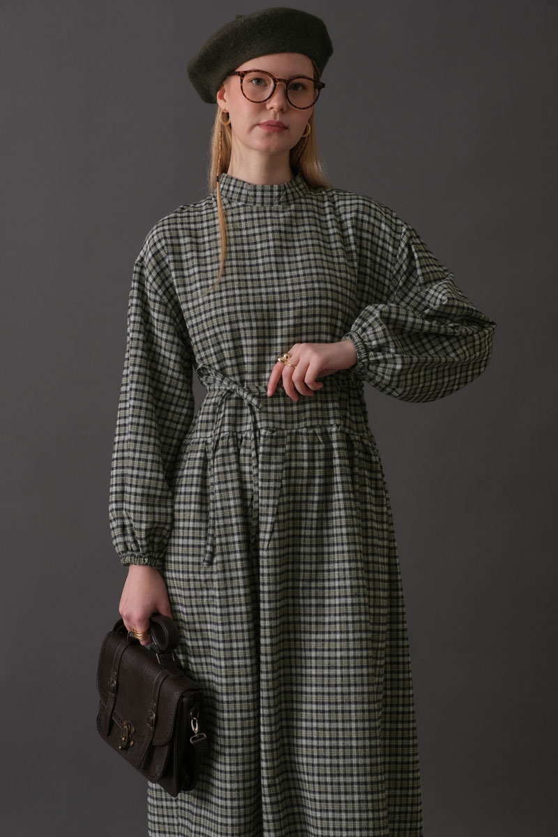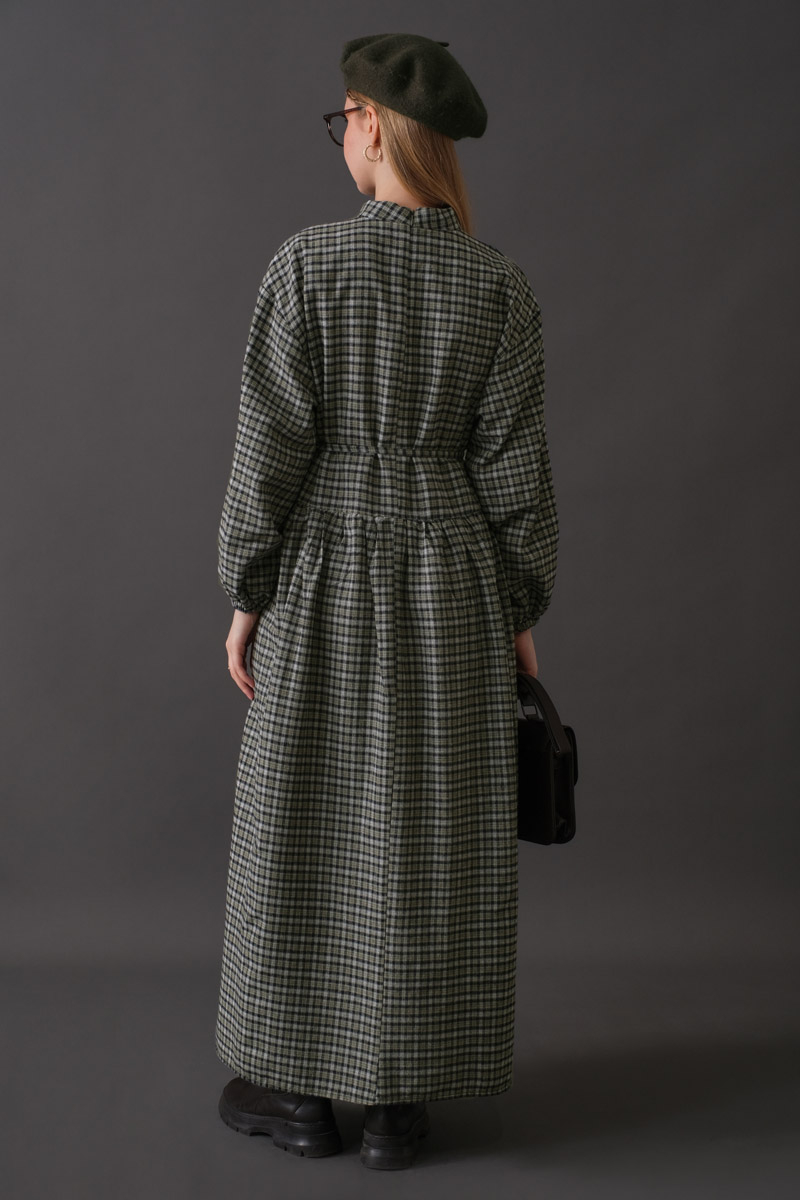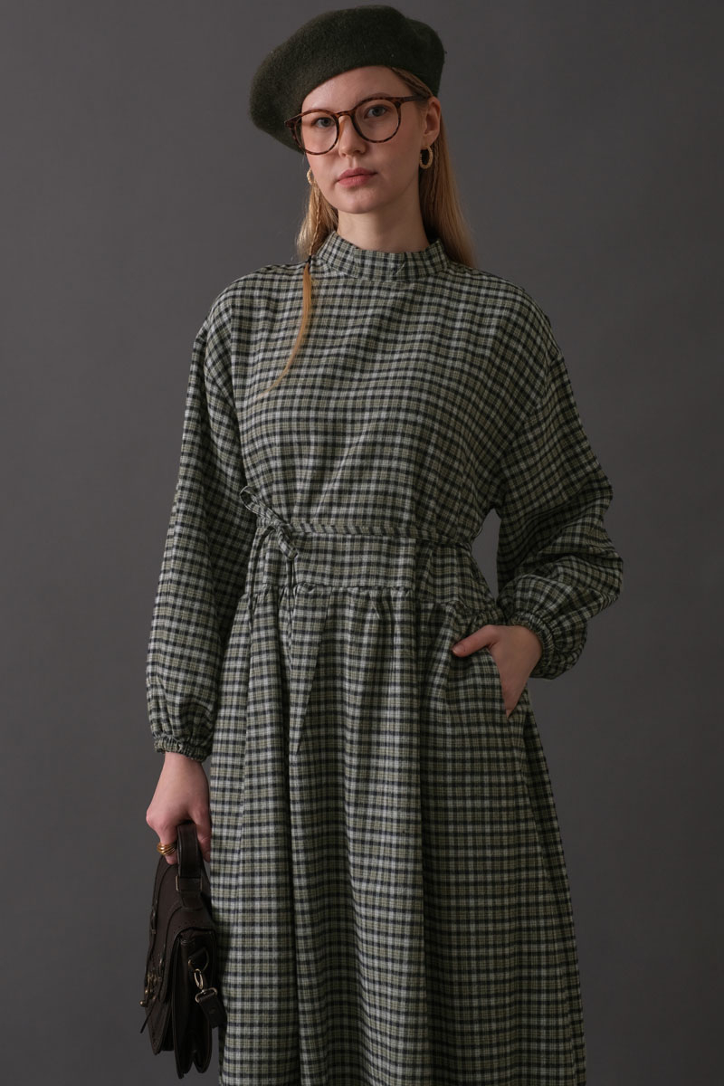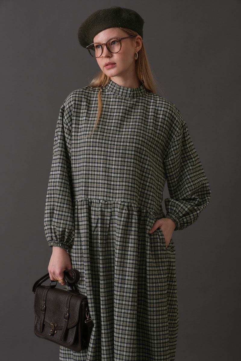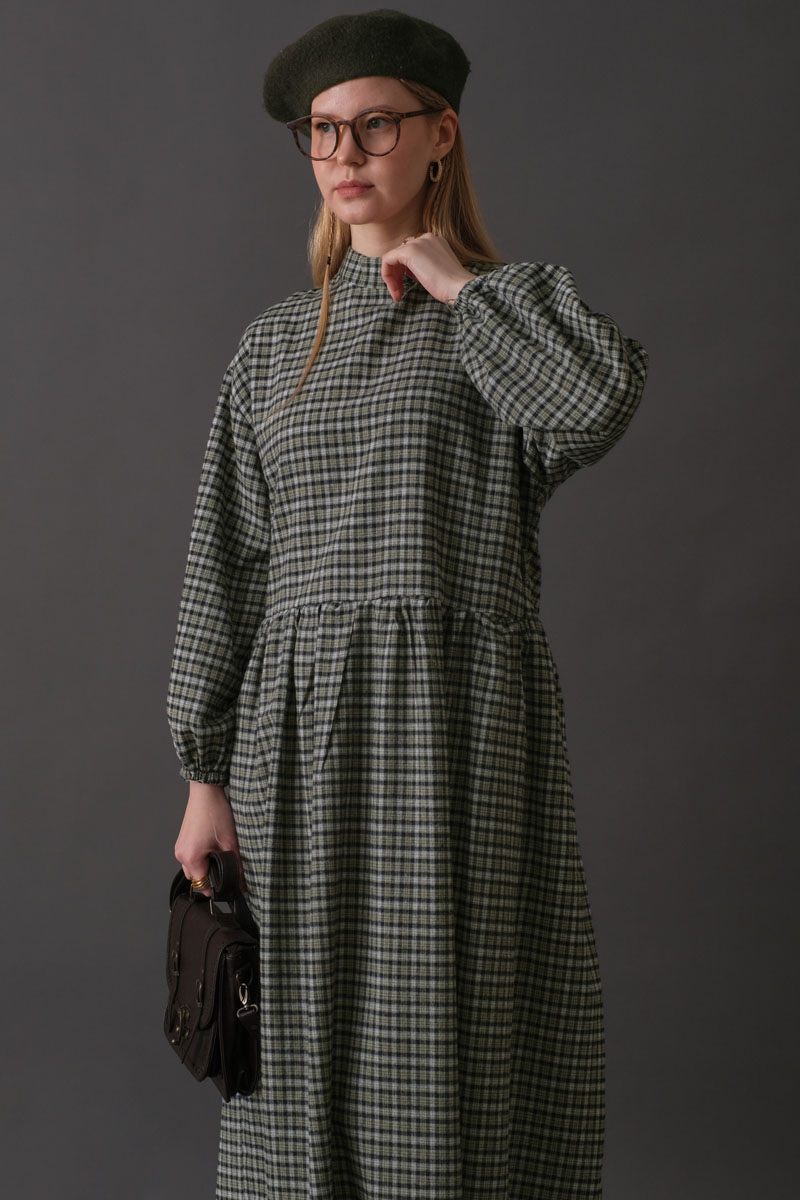 Dropped Shoulder Plaid Dress – Navy is an elegant and comfortable design that brings together modern ease with a classic plaid pattern. Its relaxed fit and dropped shoulder details allow freedom of movement throughout the day, while the high-neck design adds a minimal and refined look to the dress. Thanks to its soft-textured fabric, it offers warm and pleasant wear during the winter season.