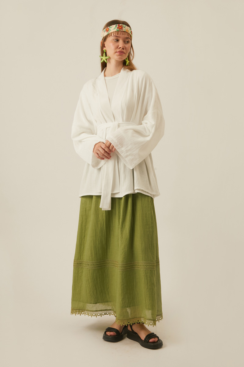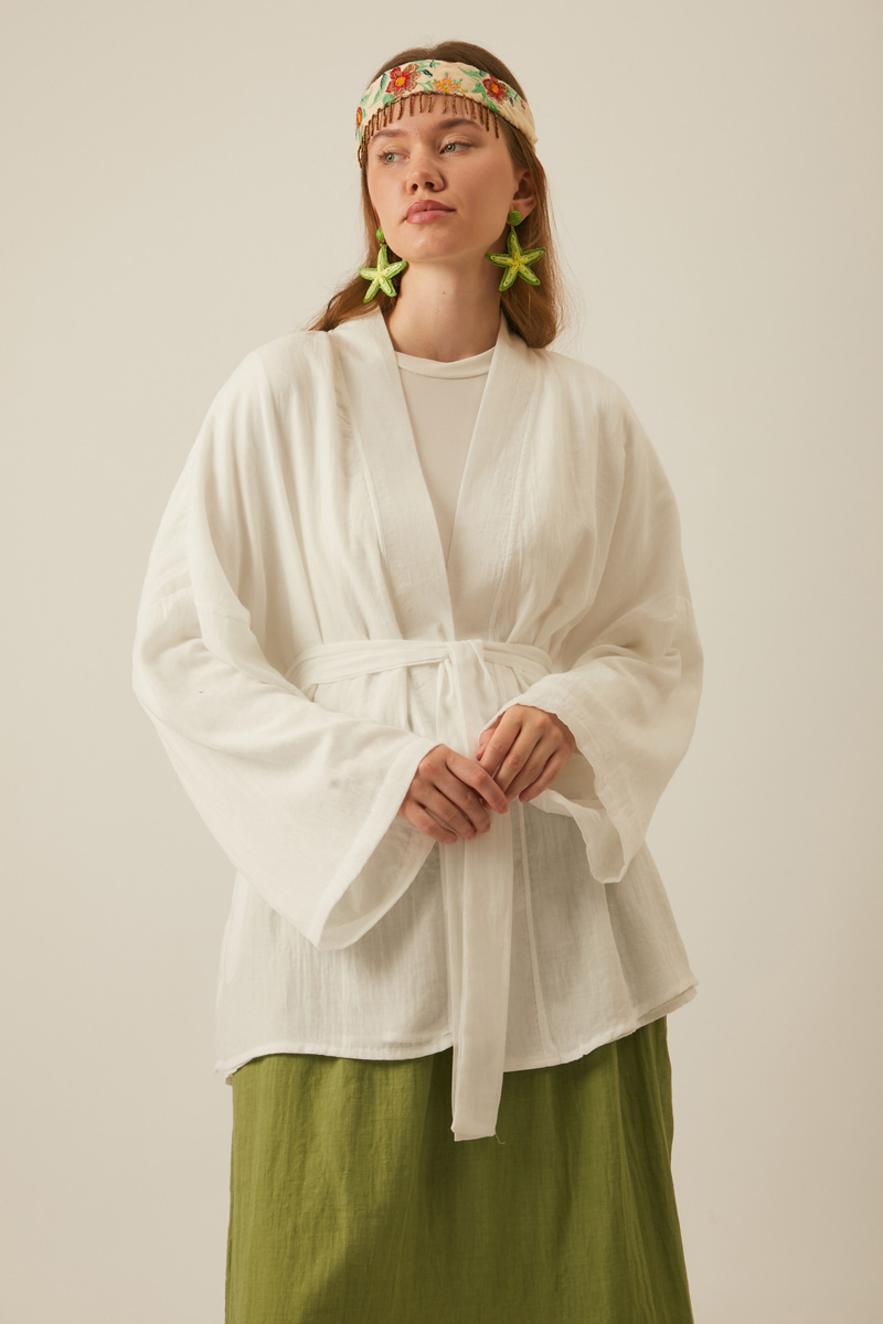 Düşük Kol Kimono Beyaz, Gardırobunuzda zamansız bir parça arayanlar için tasarlanan bu düşük kol İtalyan pamuk kimono, doğal dokusu ve rahat kesimiyle öne çıkıyor. Yüksek kaliteli İtalyan pamuk kumaşının hafifliği ve nefes alabilirliği sayesinde, yaz aylarının ve mevsim geçişlerinin vazgeçilmezi olacak. Şık ve sade tasarımıyla her tarza kolayca uyum sağlar.