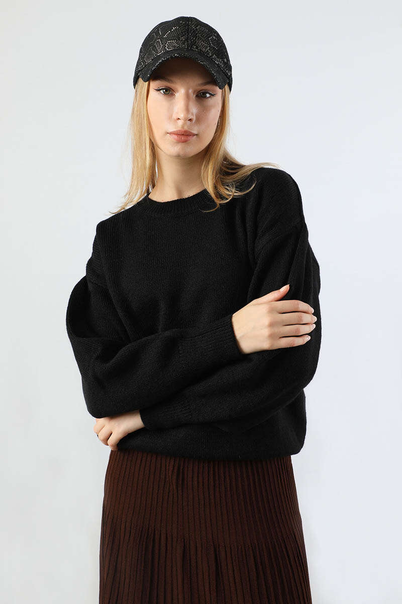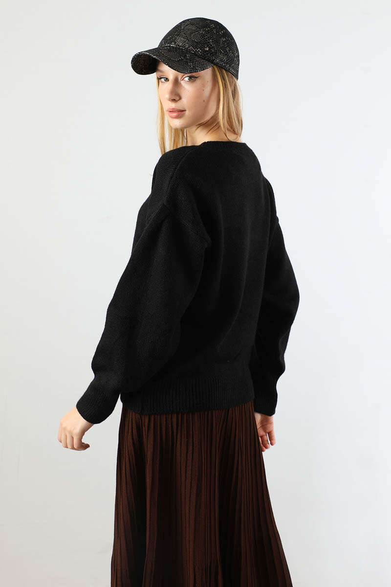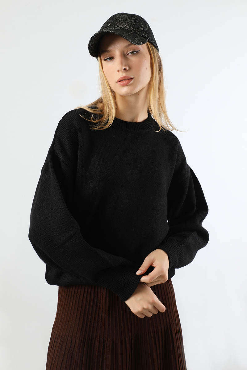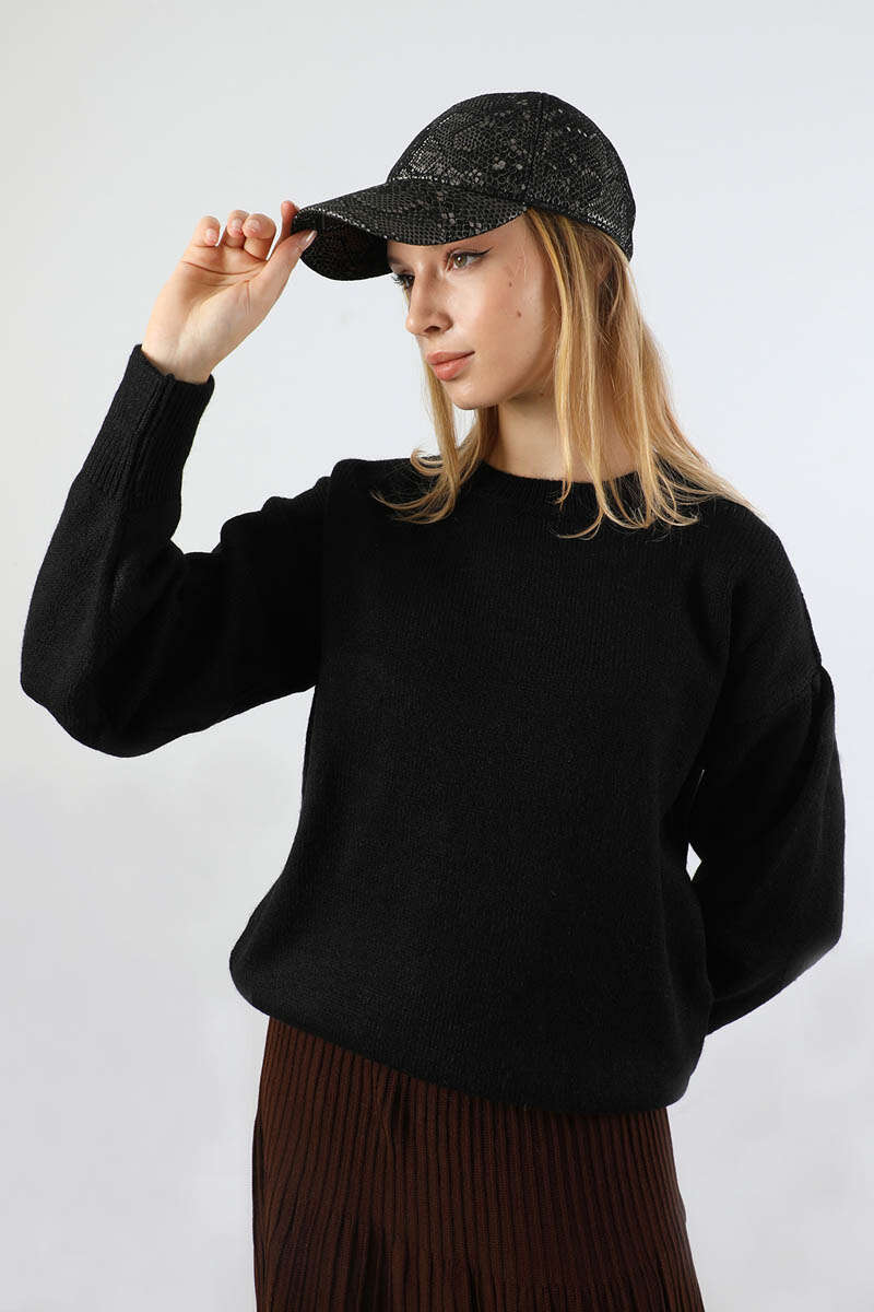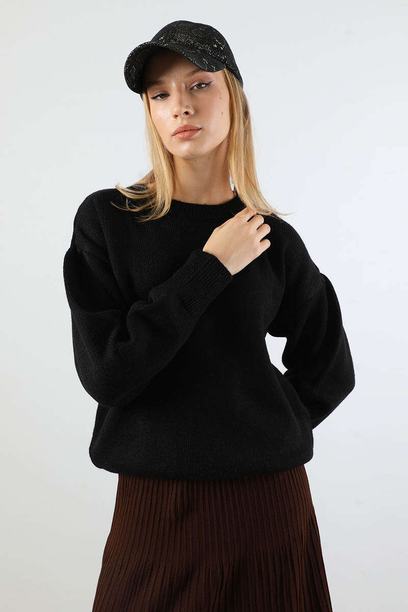 Düşük Kol Kısa Kazak Siyah. Bisiklet yakalıdır. Düşük kolludur. Geniş manşetlidir. Balon kolludur. Günlük kullanım ve özel günlerinizde tercih edebilirsiniz.