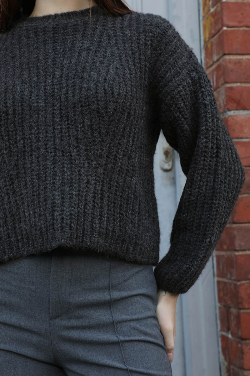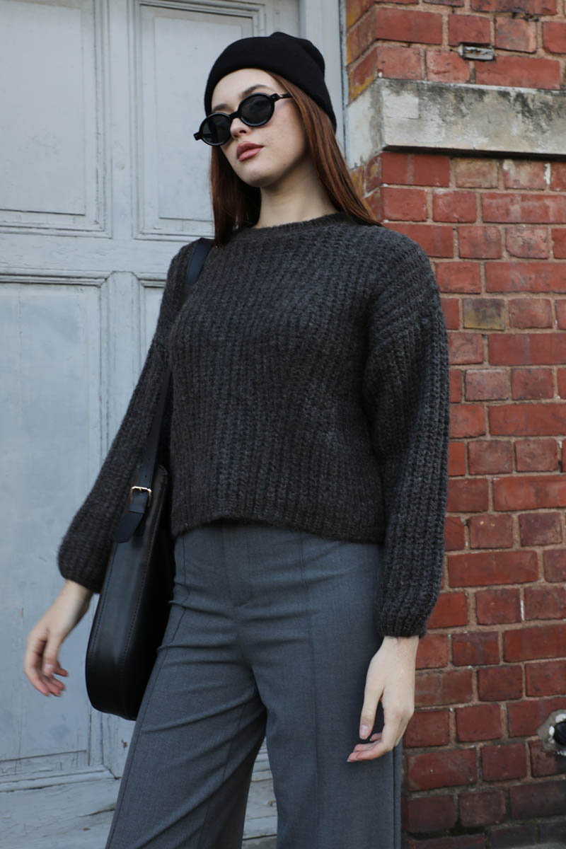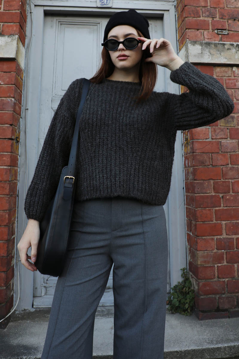 Düşük Omuzlu Kısa Kazak Siyah
