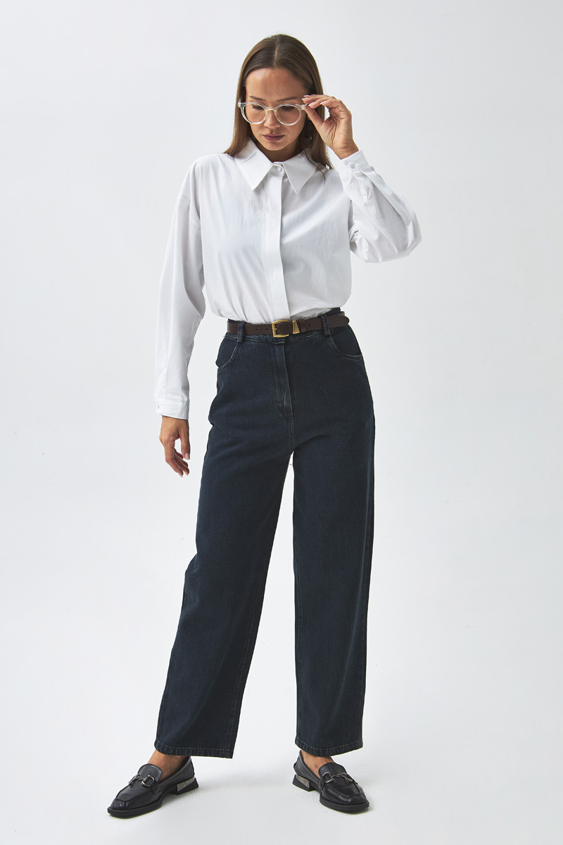 Düz Kesim Denim Pantolon Koyu Mavi, klasik ve zamansız tasarımıyla gardırobun vazgeçilmez parçalarından biridir. Yüksek bel formu ve düz kesim yapısıyla konforlu bir kullanım sunarken, her stile kolayca uyum sağlar. Günlük kombinlerden ofis şıklığına kadar çok yönlü bir seçenek oluşturur.