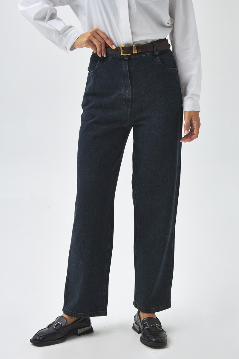 Düz Kesim Denim Pantolon Koyu Mavi