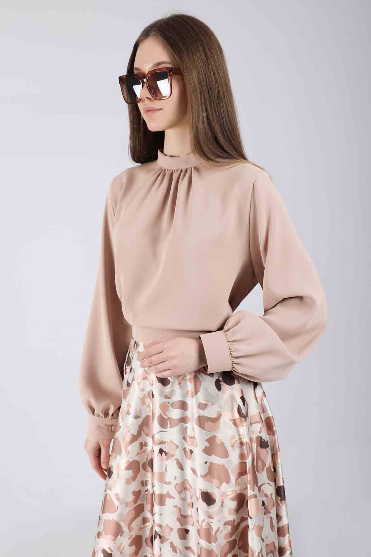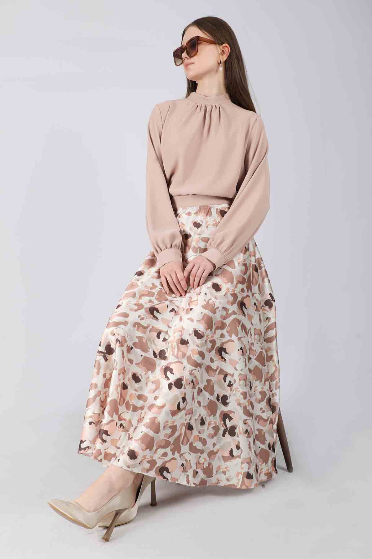 Ebru Desenli Etek Takım Krem, Normal kalıptır. Bluz krep, Büzgülü bant yakalıdır. Manşetinde kaplama düğmelleri vardır (Düğmeler aktiftir). Bluz Arkadan Fermuarlıdır. Etek ebru desenli ve arkadan fermuarlıdır. Özel Günlerinizde tercih edebilirsiniz.