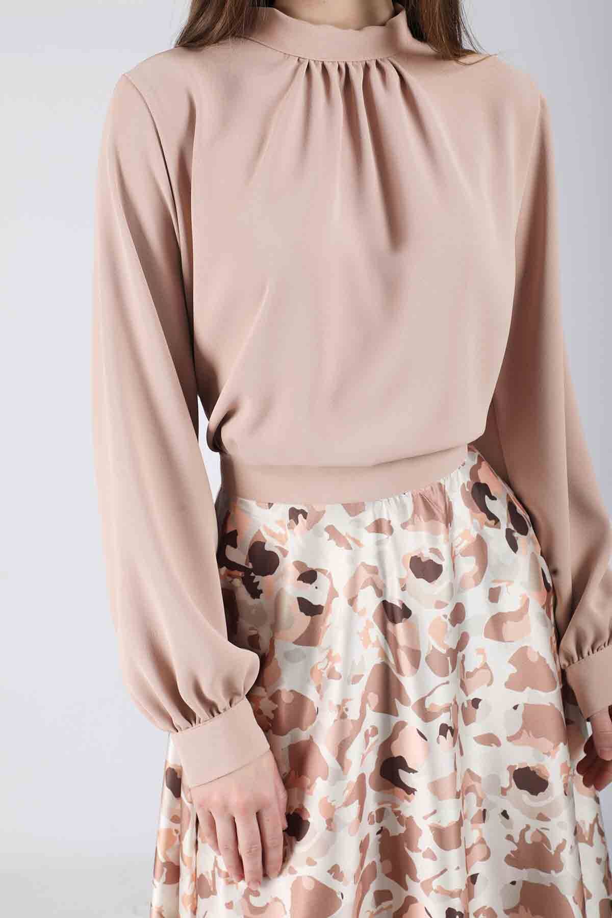 Ebru Patterned Skirt Set Cream, Normal pattern. This product, which is inspired by the art of marbling, which is prepared with its own techniques and is made by transferring the patterns to paper, is the favorite product of the new season.