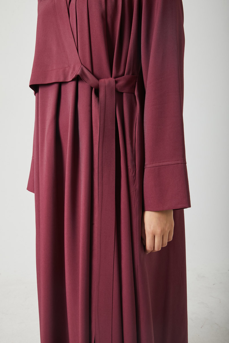 It has a crew neckline with button detail at the front neckline. Features thick cuffs, front and back pleats, front aller detail with side tie, side pockets, and is unlined. Suitable for daily wear.
