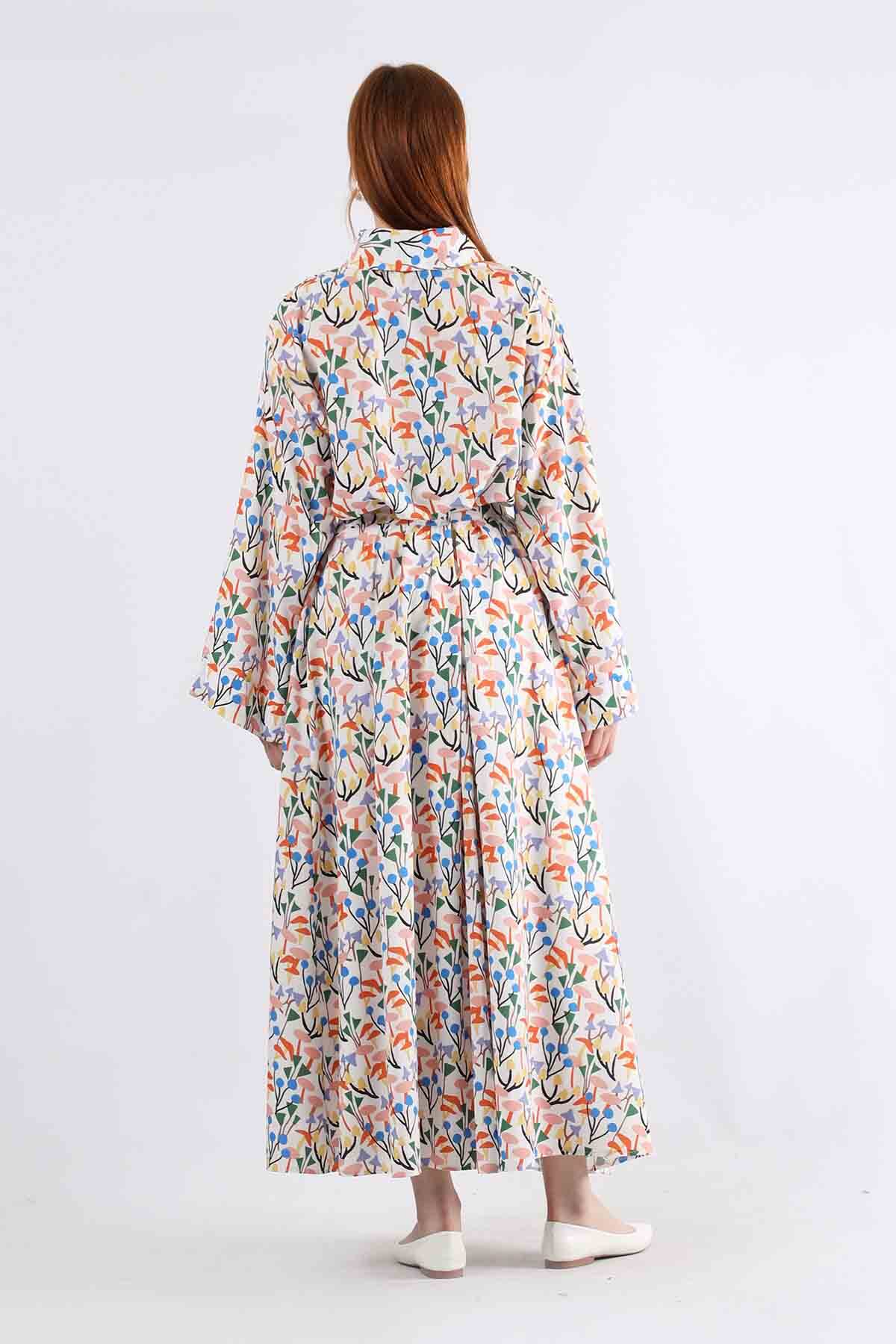 Eke Skirt Set; It is two sets consisting of a shirt and a skirt. The shirt should be buttoned from the neck. The skirt has a zipper and is easy to wear.