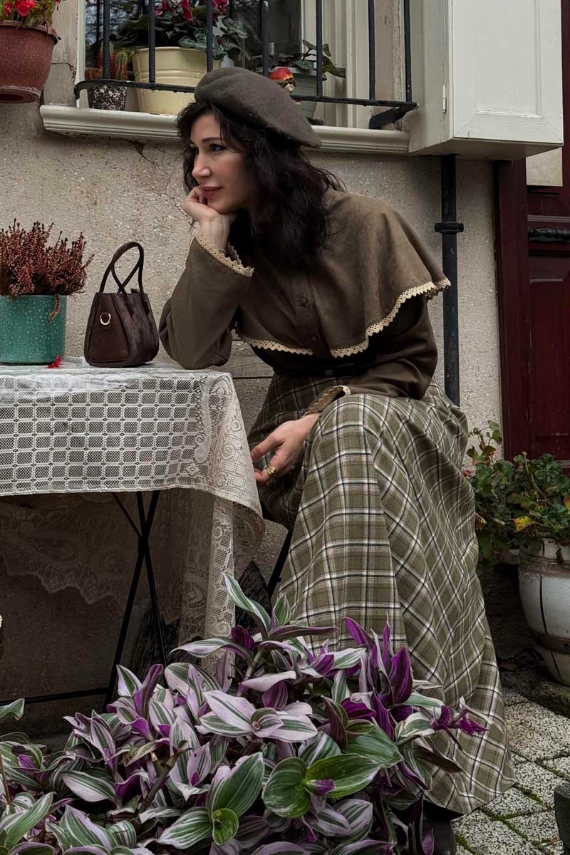 Ekose Desenli A Kesim Etek Haki, klasik dokuyu modern bir kesimle buluşturuyor. A formundaki siluetiyle zarif bir duruş sunarken, ekose deseniyle mevsim ruhuna uyum sağlar. Bel kısmındaki dikiş detayları vücut formunu vurgularken, doğal dokulu kumaşı gün boyu rahatlık sunar. Triko kazaklar, gömlekler veya blazer ceketlerle kolayca kombinlenebilir.