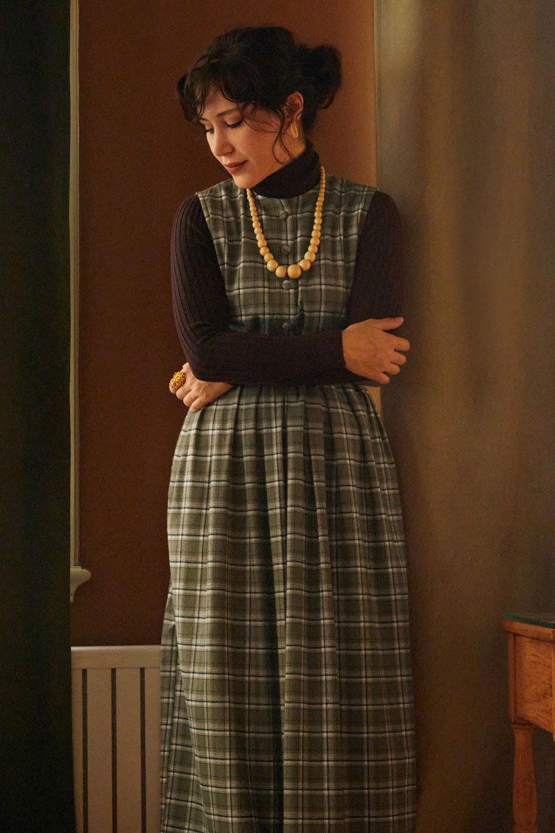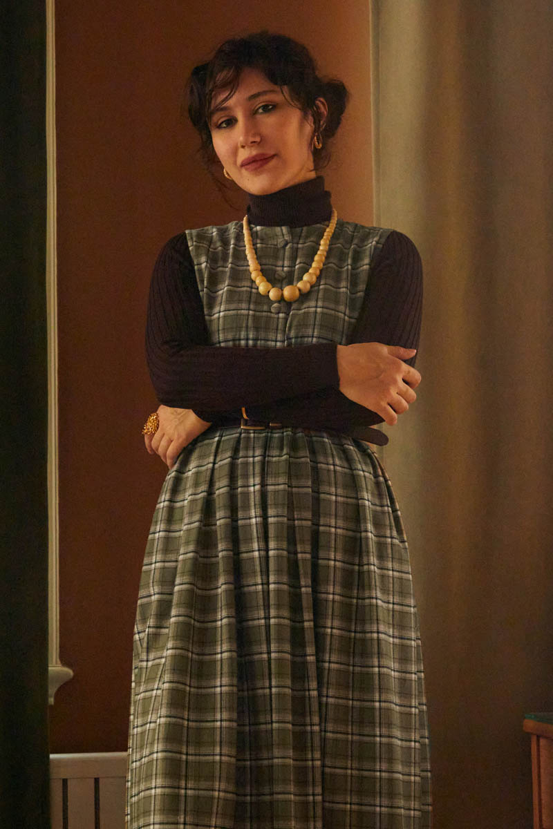 Ekose Desenli Jile Haki, nostaljik dokusunu modern kesimle buluşturuyor. Rahat kalıbı ve pile detaylı eteğiyle hem konforlu hem de feminen bir duruş sunar. Ekose deseniyle mevsim ruhunu yansıtan bu jile, sade gömlekler veya triko bluzlarla kolaylıkla kombinlenebilir. Günlük şehir stilinden hafta sonu görünümlerine kadar çok yönlü bir parçadır.