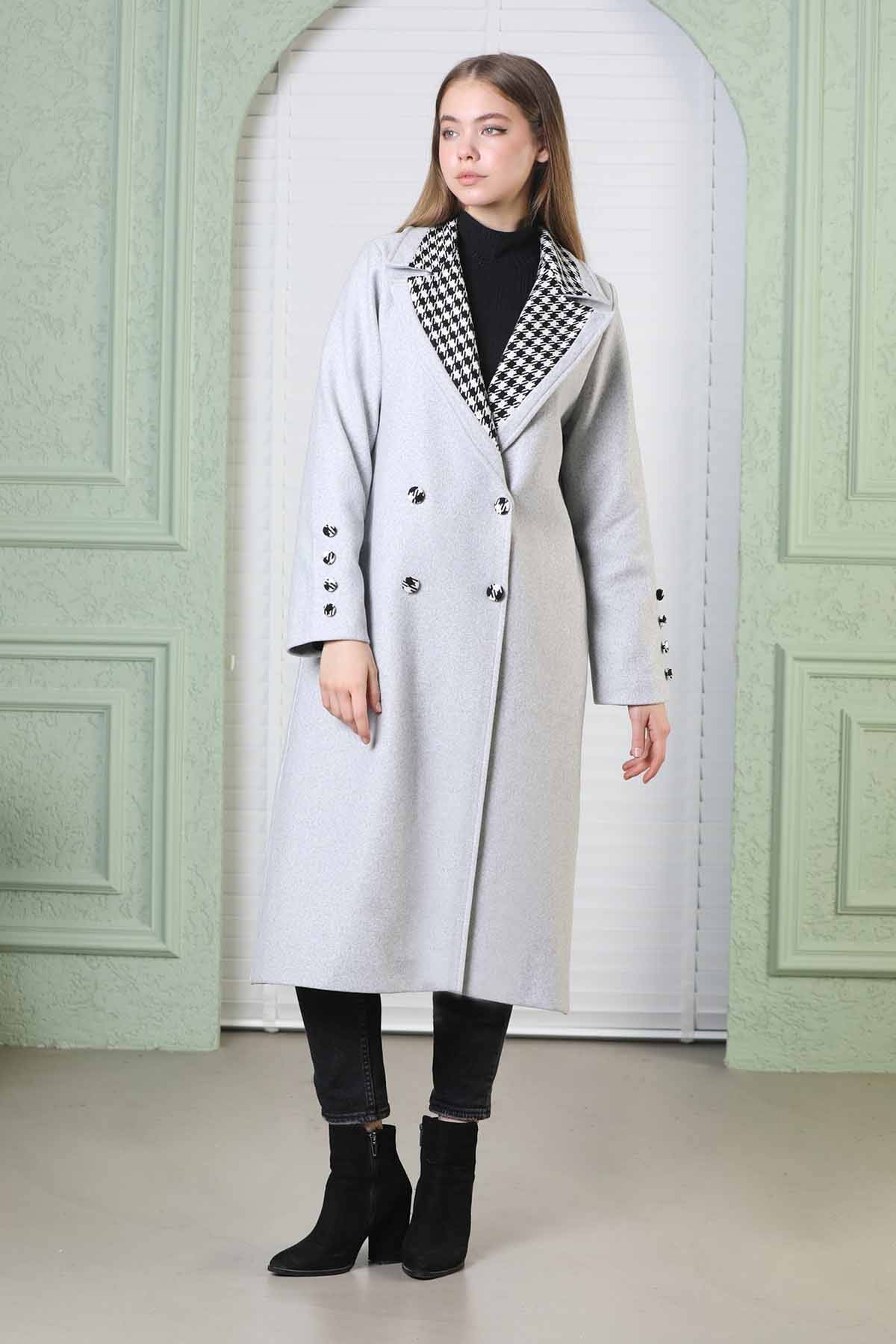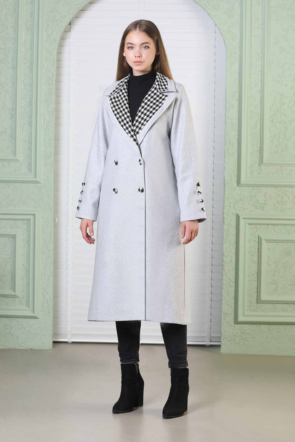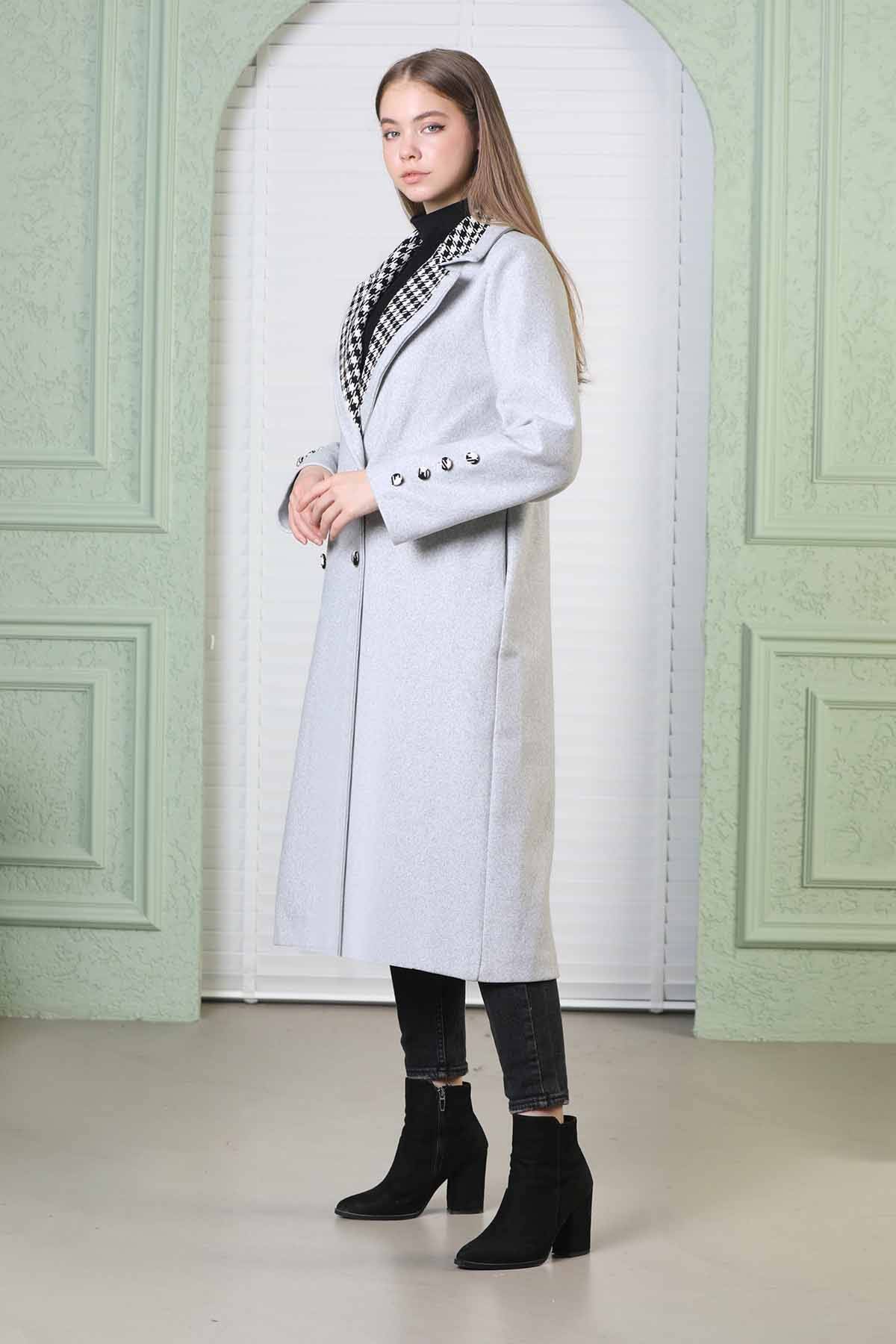 Ekose Detaylı Kaşe Kaban Gri. Ekose düğmeli. Kuşaksız. Astarlı.