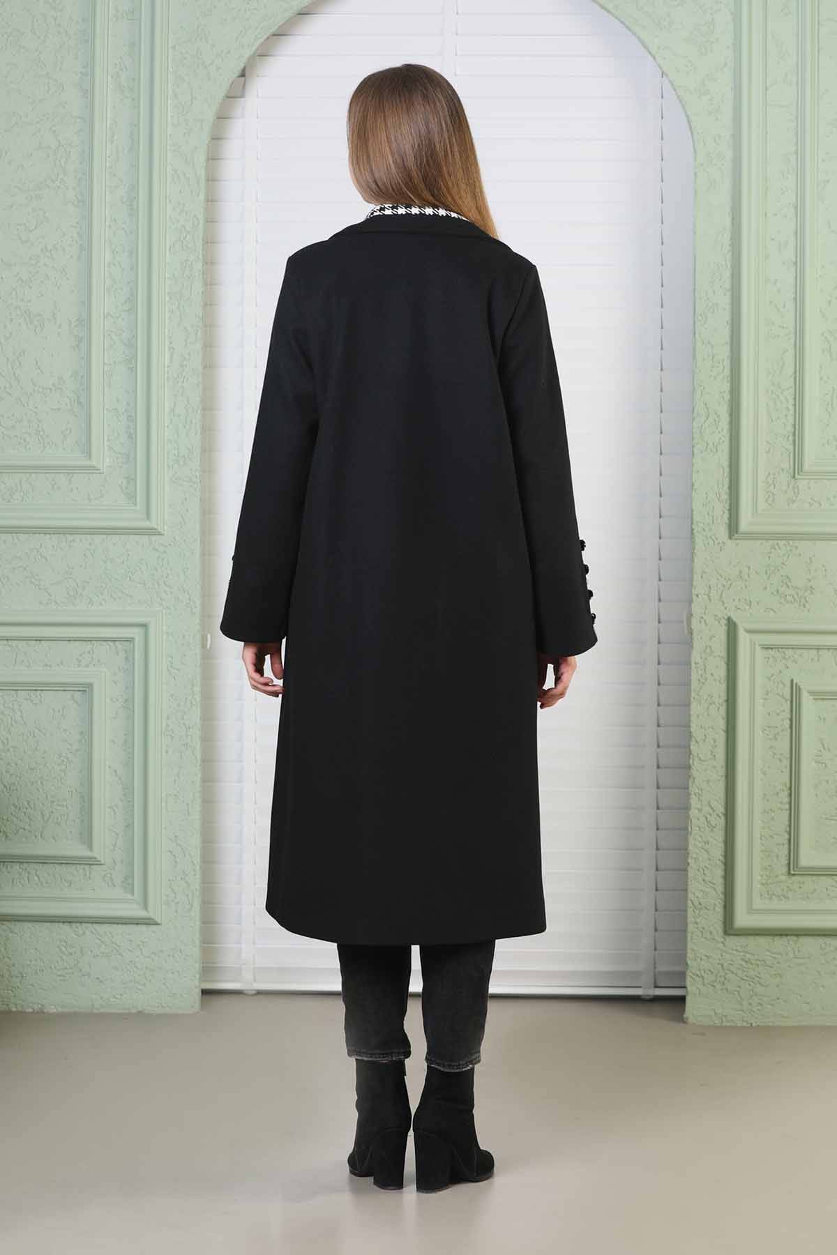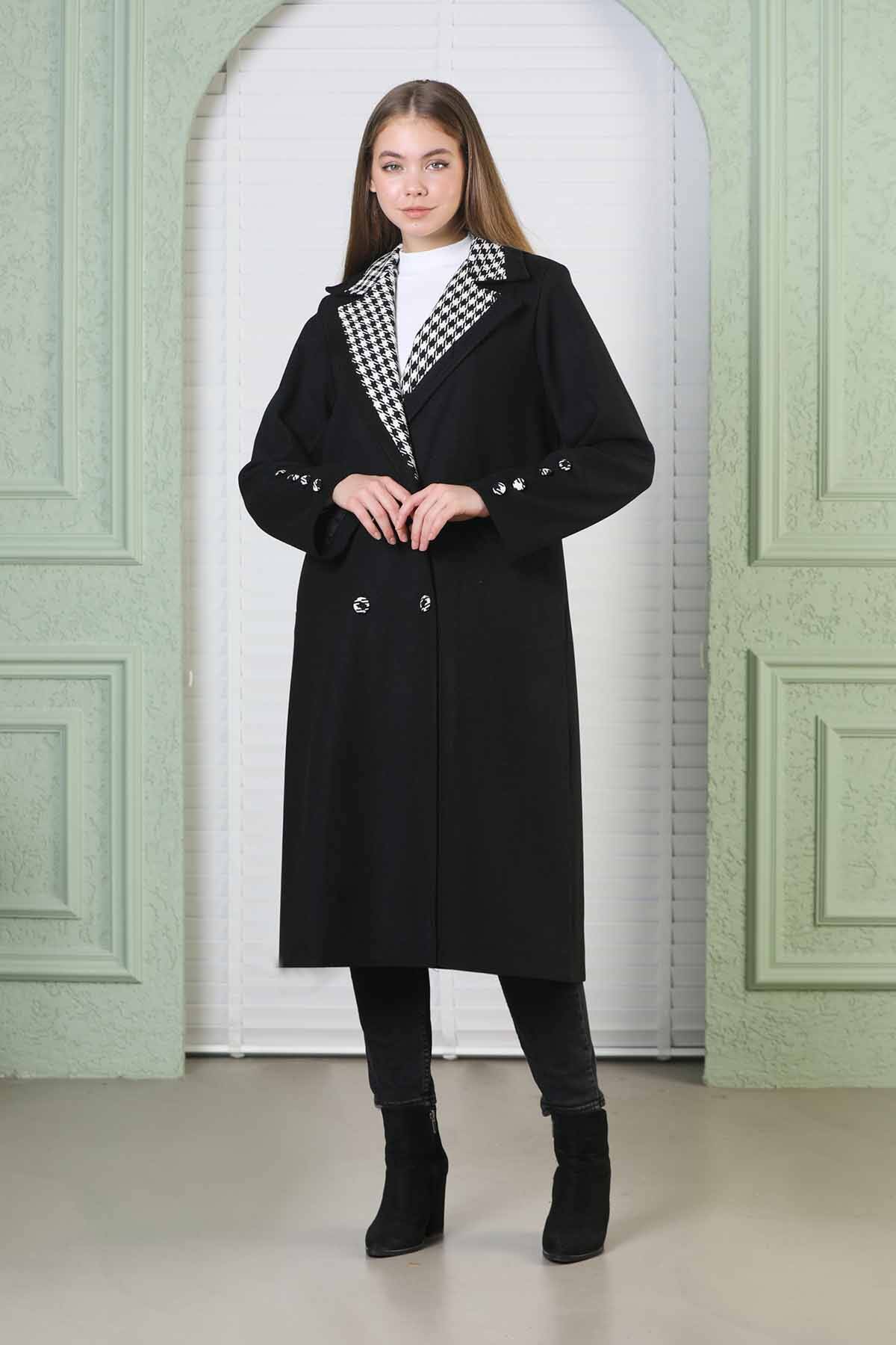 Plaid Detailed Cachet Coat Black. Plaid button up. Unbelted. Lined.