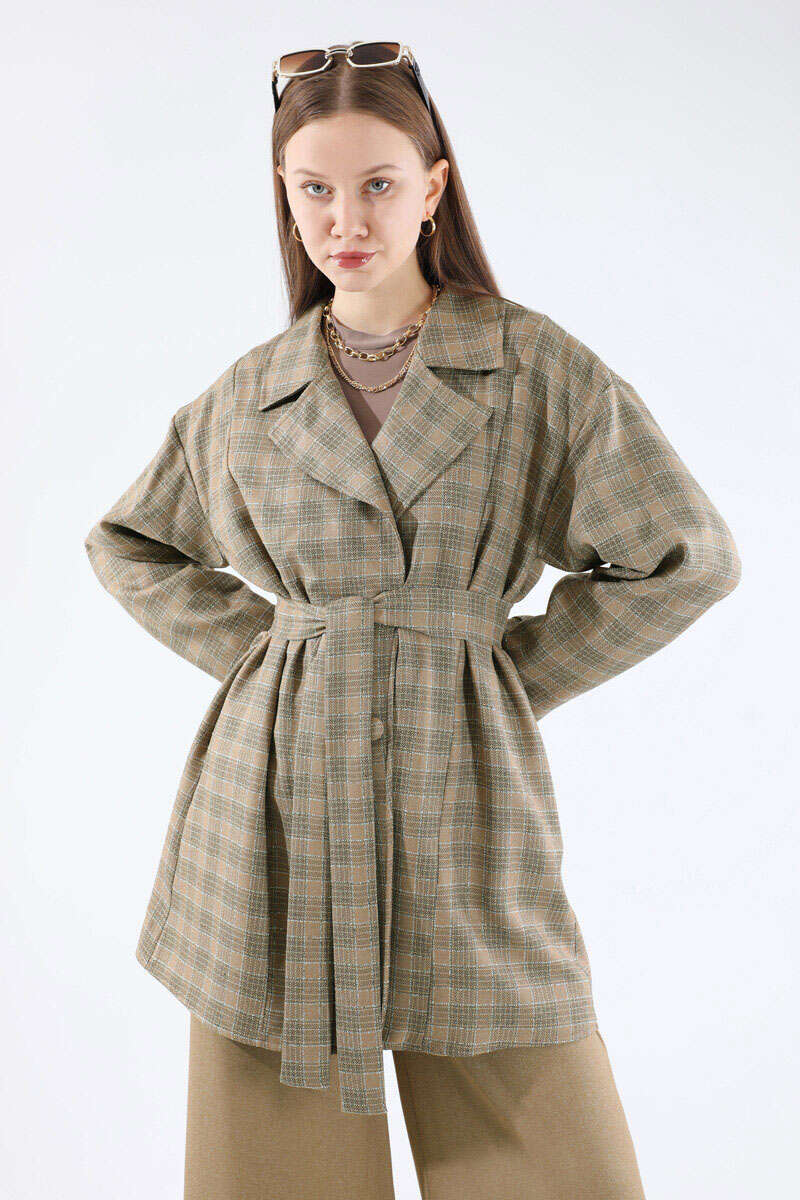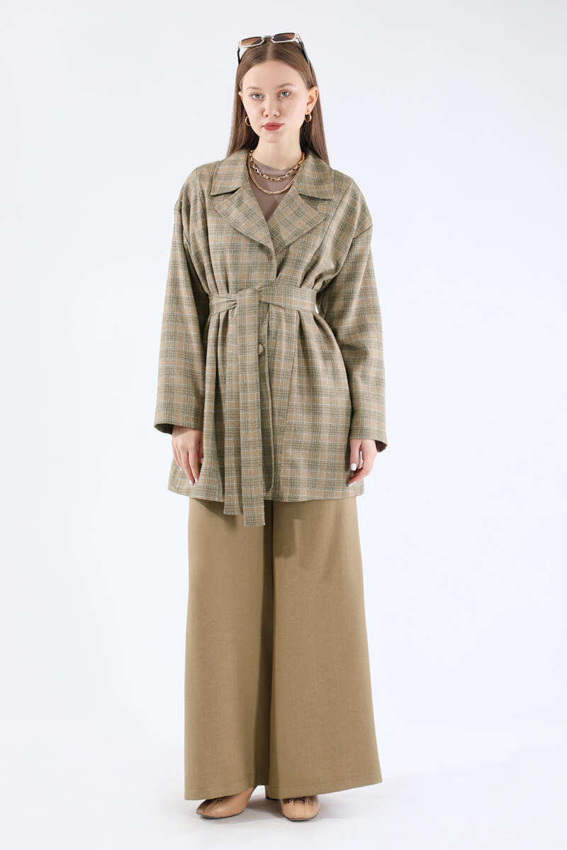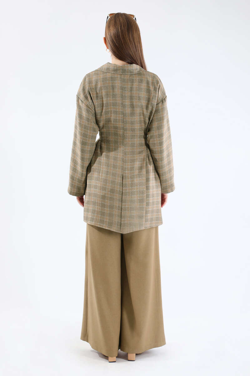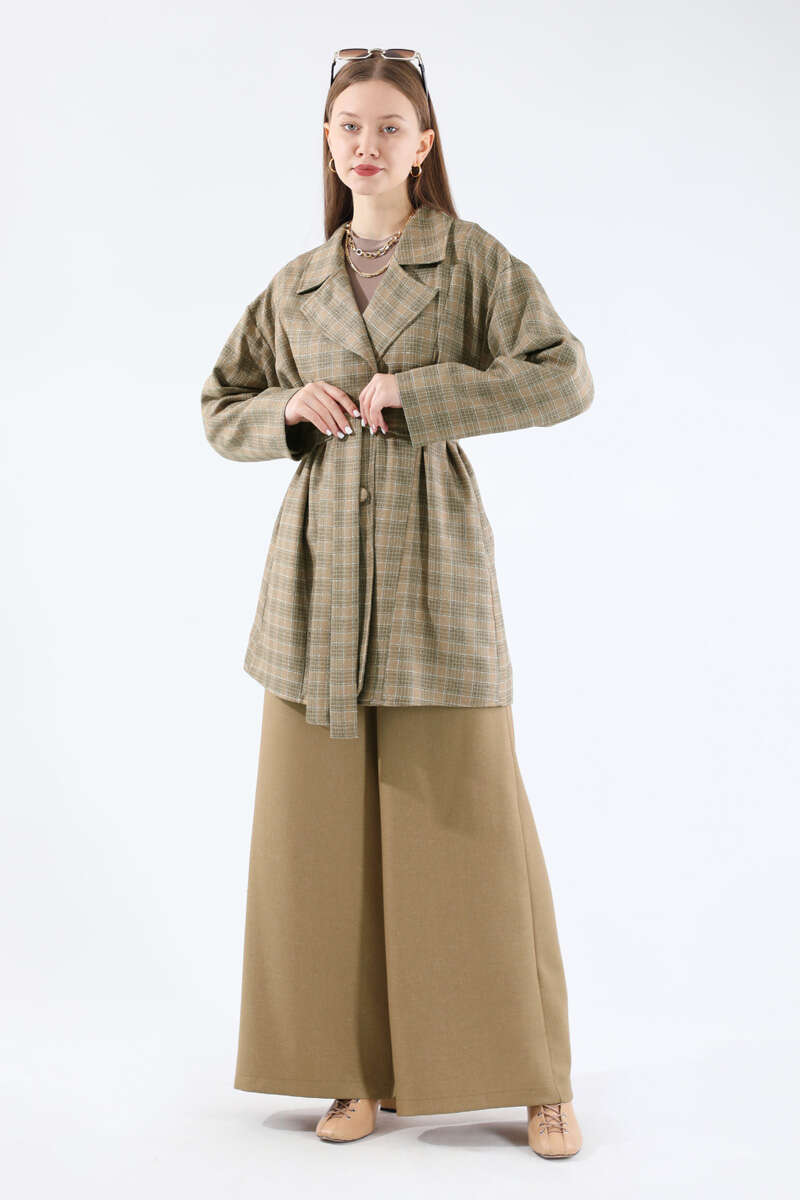 Ekose Kısa Ceket Takım Camel. Kruvaze yakalıdır. Düşük omuzludur. Arkası yırtmaçlıdır. Pantolon beli lastiklidir. Pantolon ve Ceket Yandan Ceplidir. Kuşaklıdır. Günlük kullanım ve özel günlerinizde tercih edebilirsiniz.