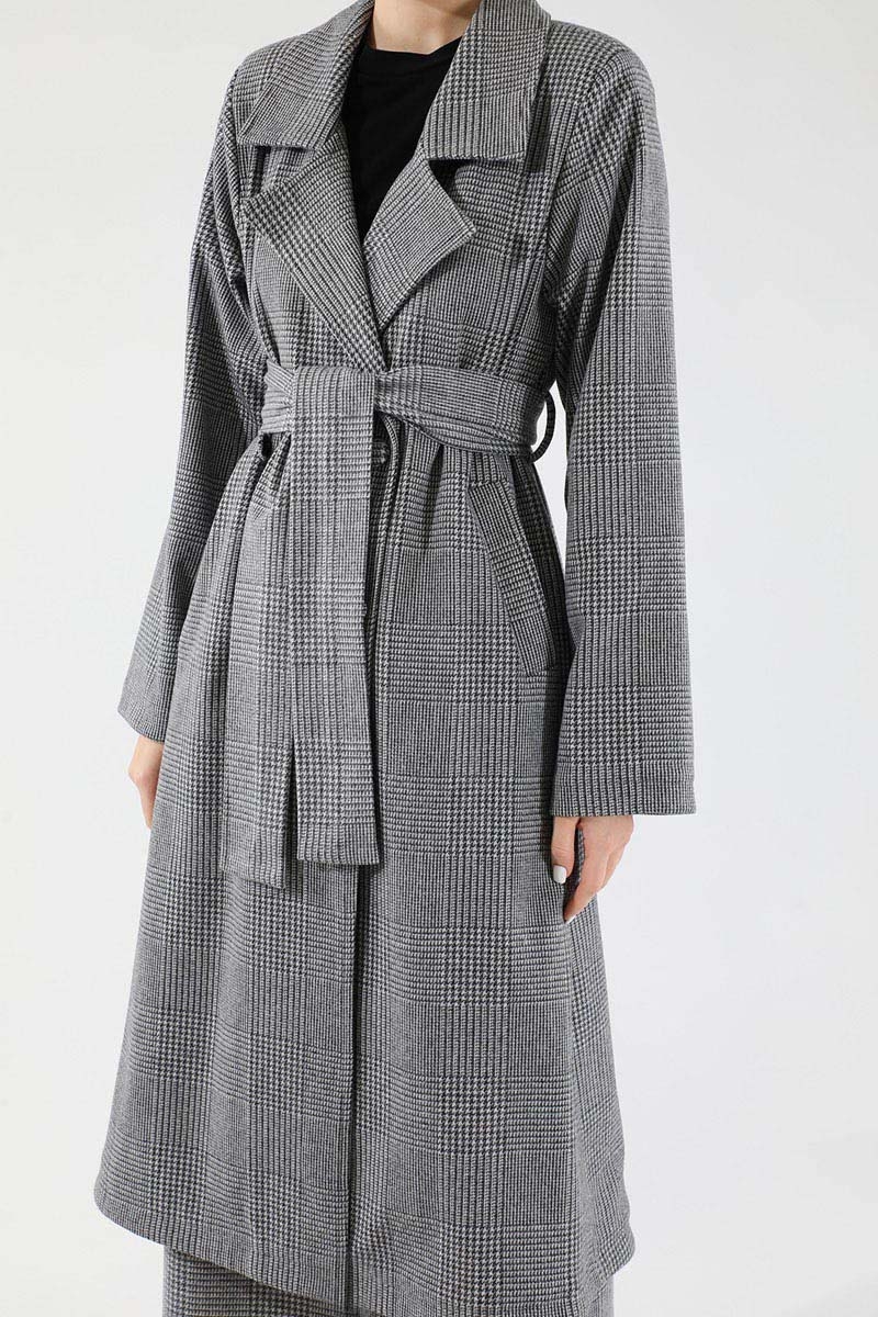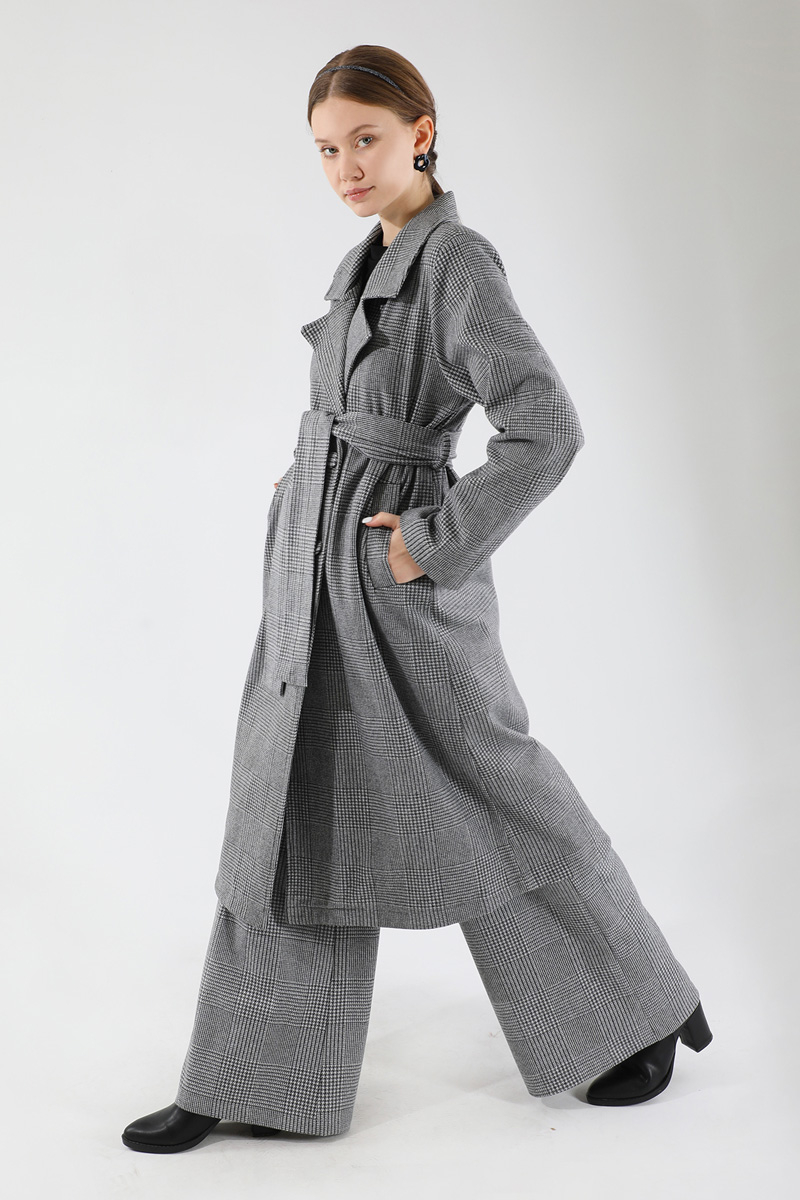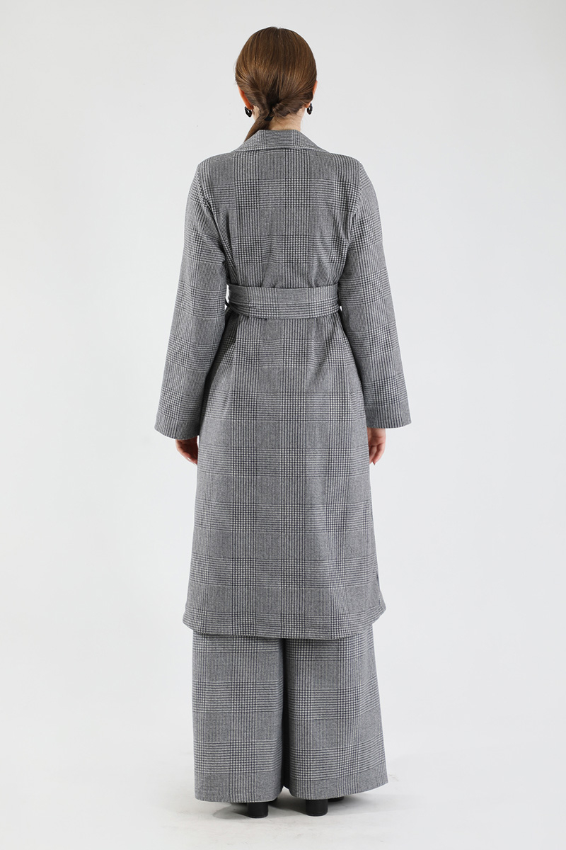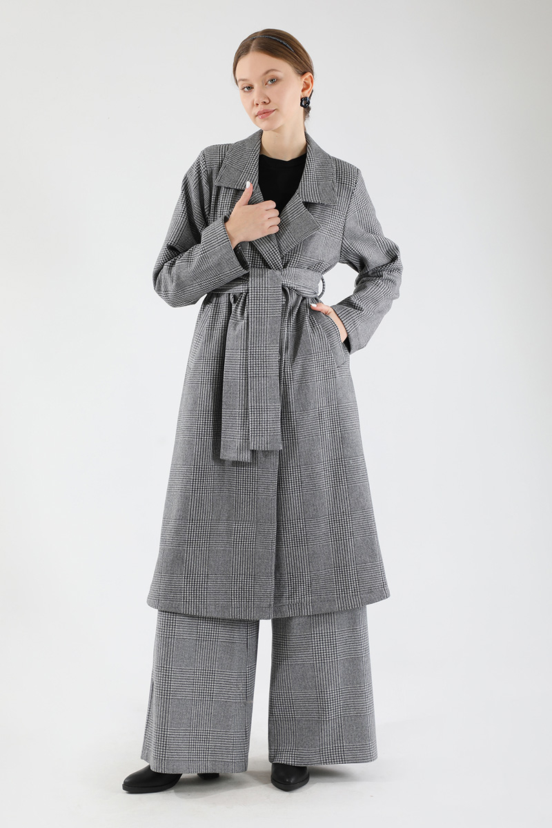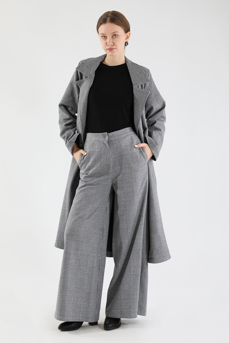 Ekose Uzun Ceket Takım Siyah