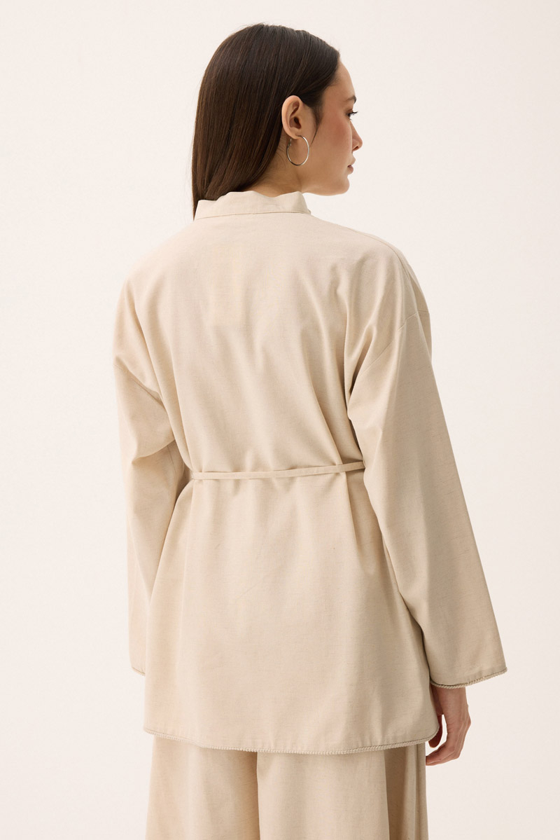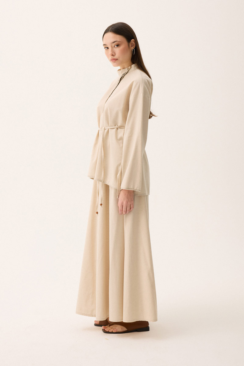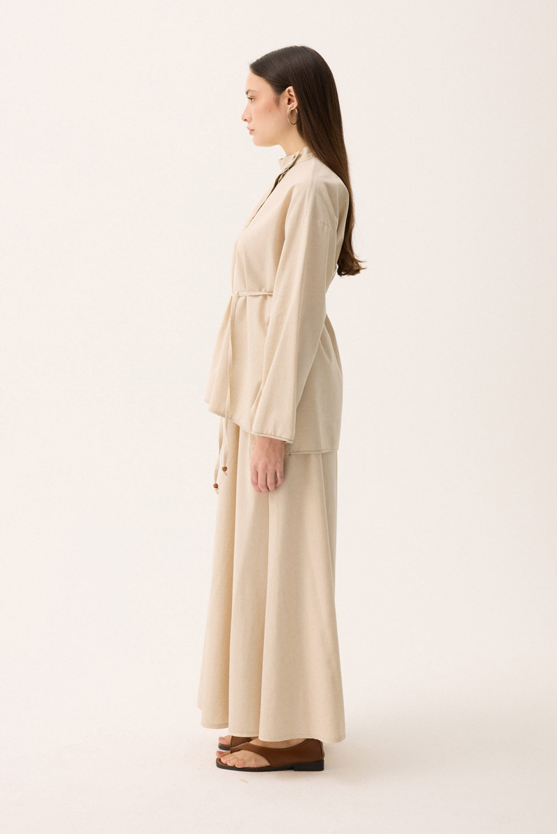 Dipnot: Bu üründe doğal kumaş yapısından dolayı, ilk yıkamada kumaşta %2 oranında çekme olabilir. Ketenin içeriğinden kaynaklı olan bu durum, ürünün formunu ve şıklığını etkilemez. İlk yıkamada soğuk su ve hassas program tercih etmeniz bu durumu azaltacaktır.