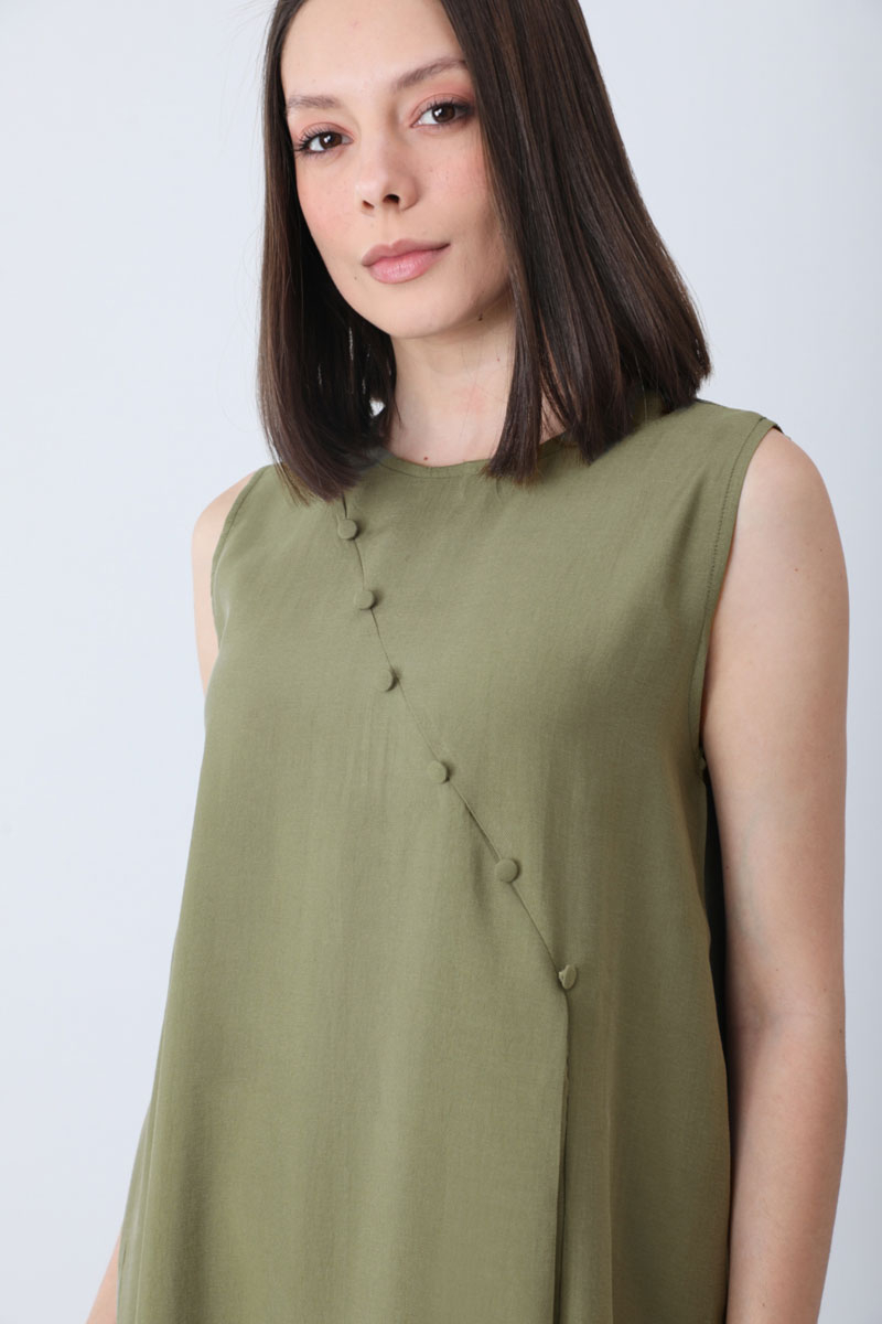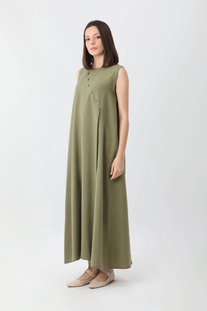 Elbisesi Düğmeli Abaya Takım Açık Haki
