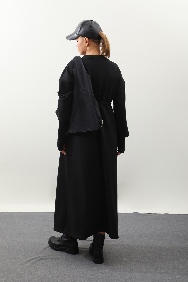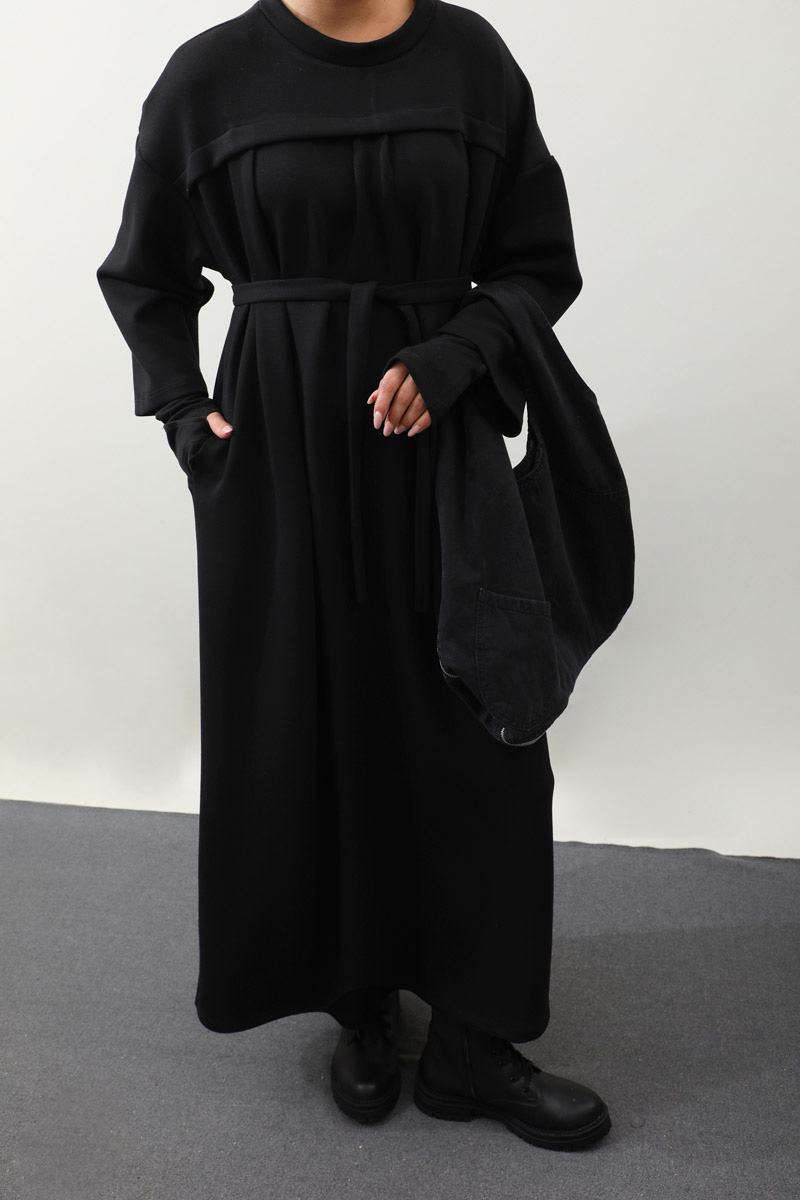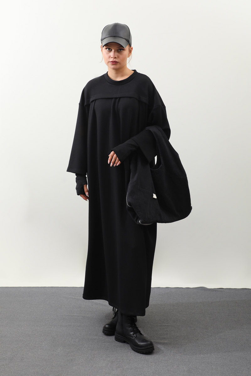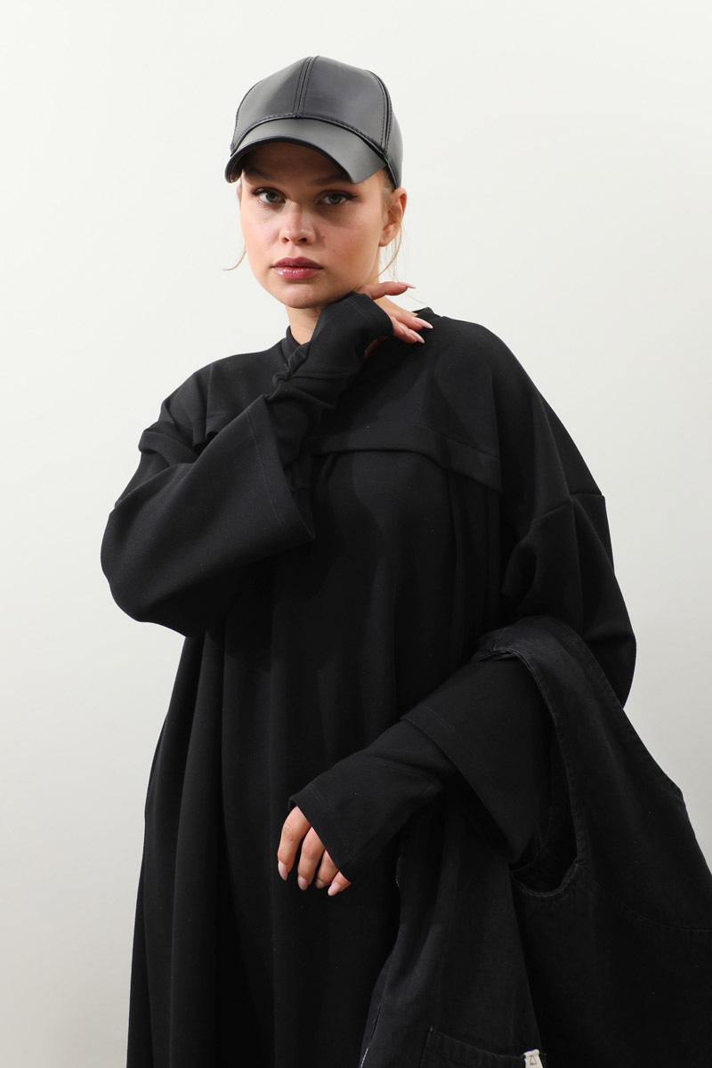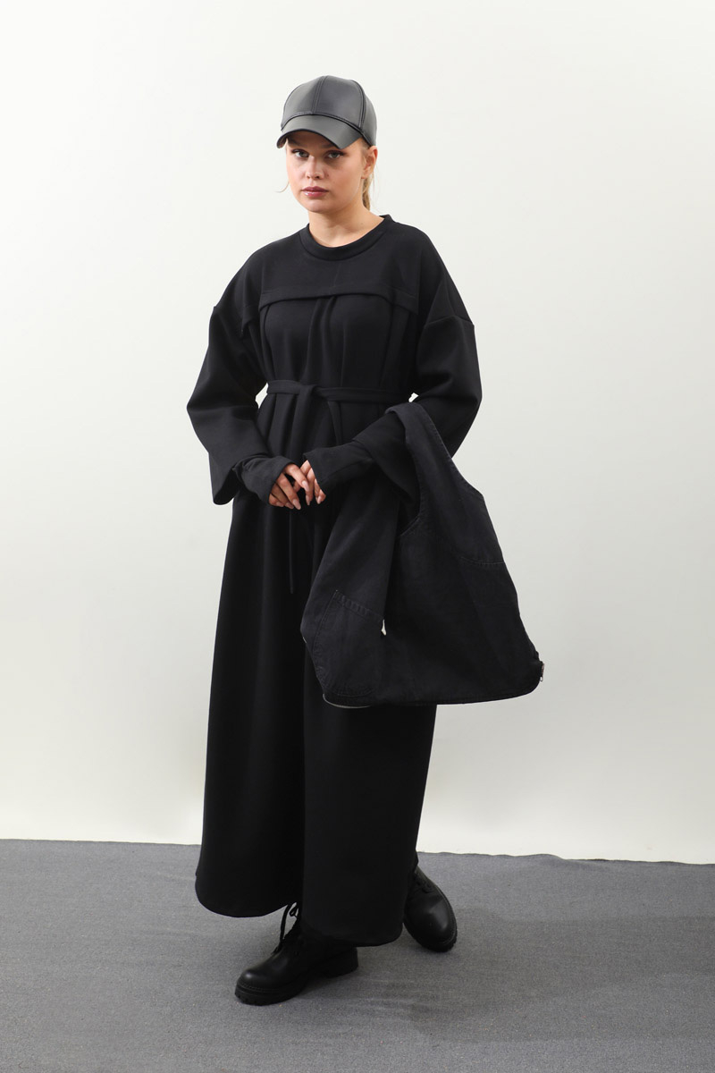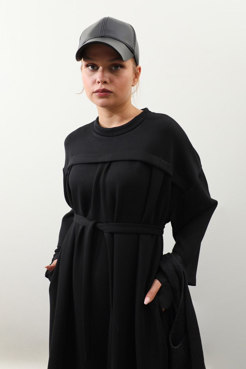 Eldiven Detay Elbise Siyah. Bisiklet yakadır, düşük omuzludur, önden pile ve aller detaylıdır, seyyar eldivenlidir, yandan gizli ceplidir, kuşaklıdır, astarsızdır, bol kalıptır. Günlük kullanım ve özel günlerinizde tercih edebilirsiniz.