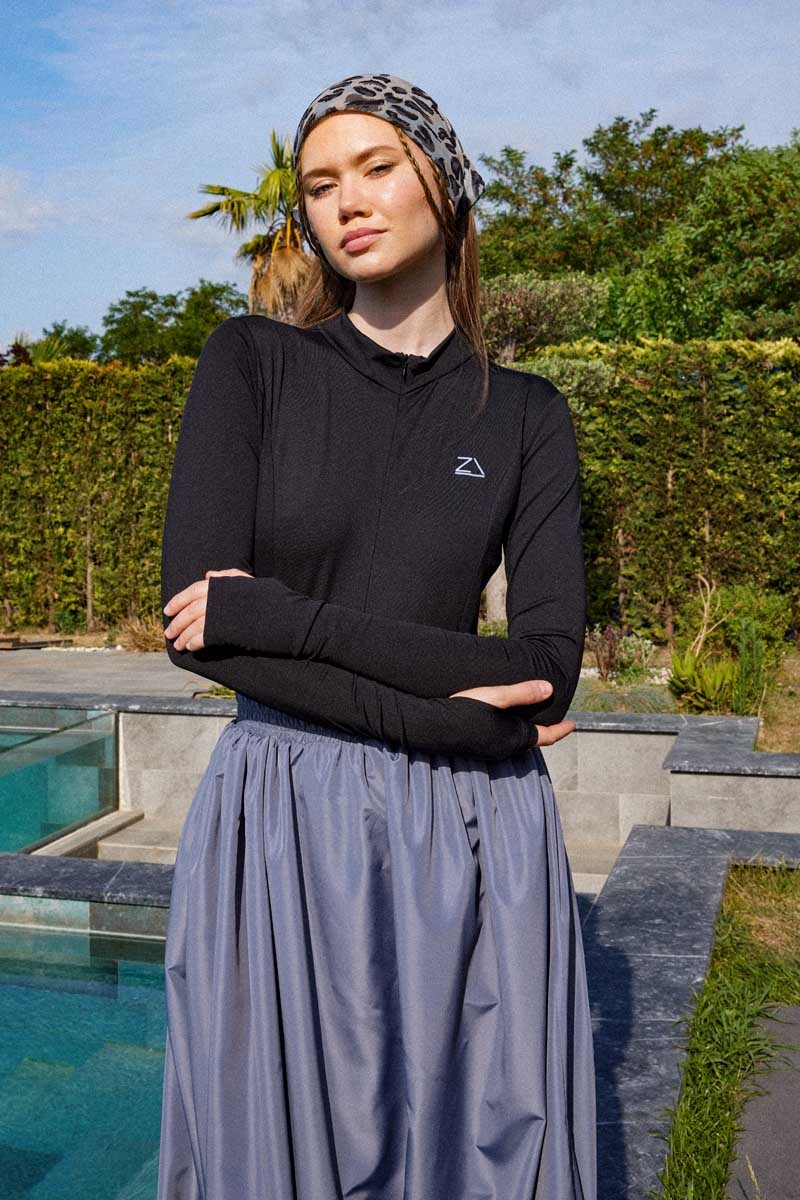 Etek Mayo Gri. Bel kısmı lastiklidir, cepsizdir, astarsızdır, alt kısmı lastiklidir ve ortadan çıtçıtlıdır. Bu özelliği ile ürün şalvar pantolon olarak kullanlabilmektdir.