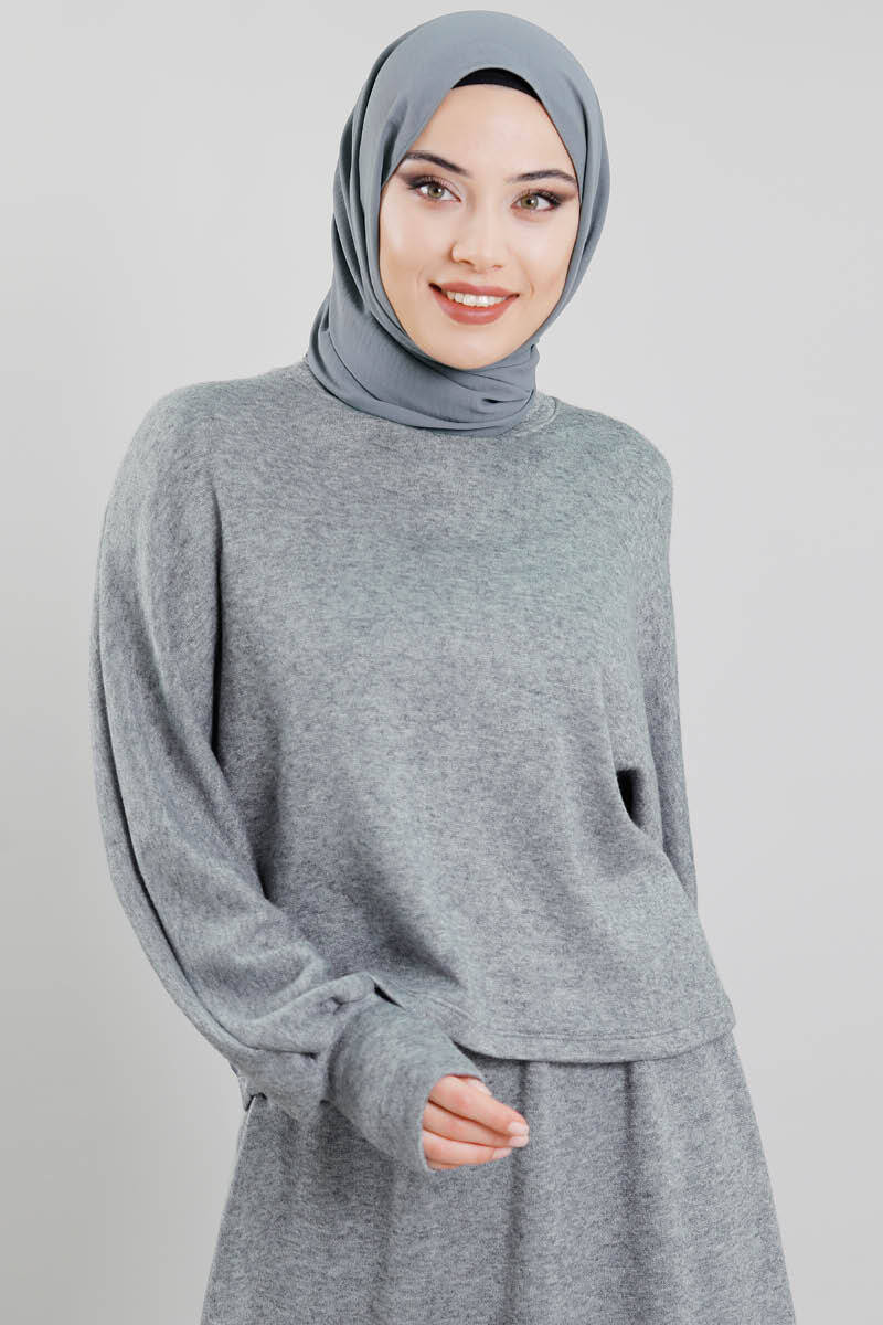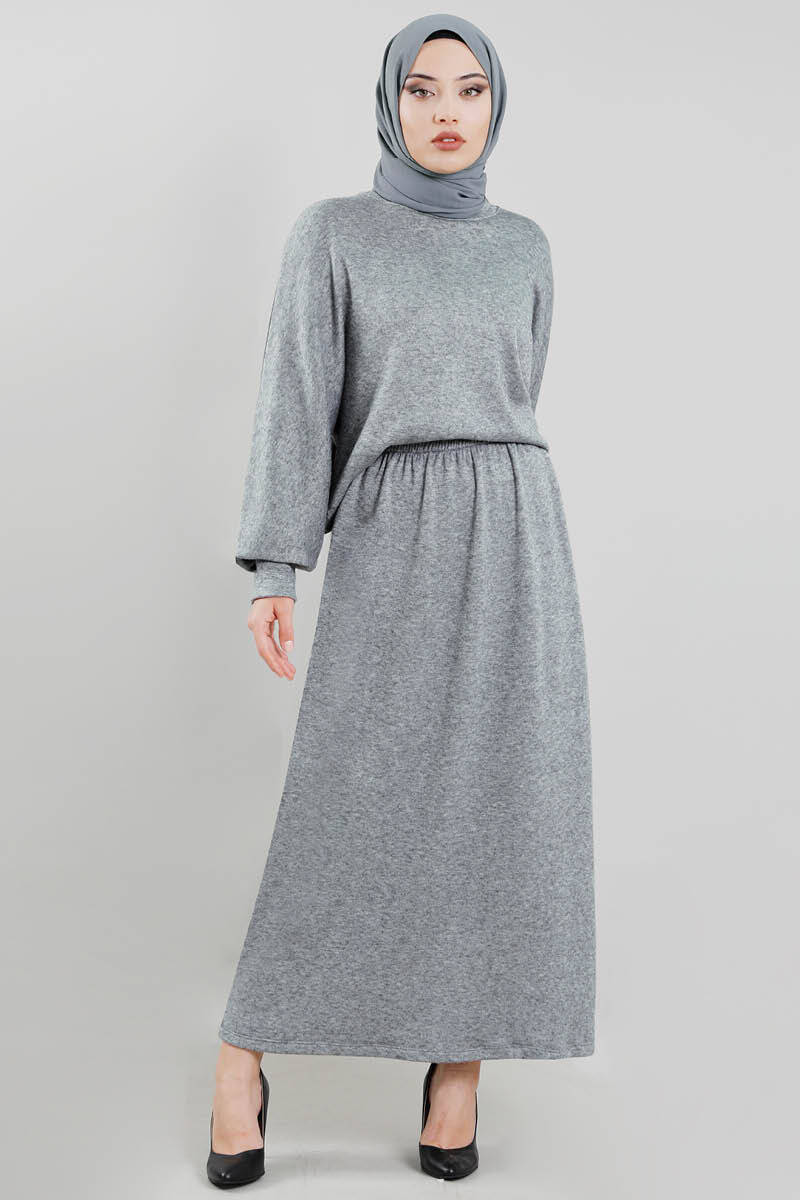 Yarasa kol, bisiklet yaka. Etek beli lastiklidir. Hafif kloştur.