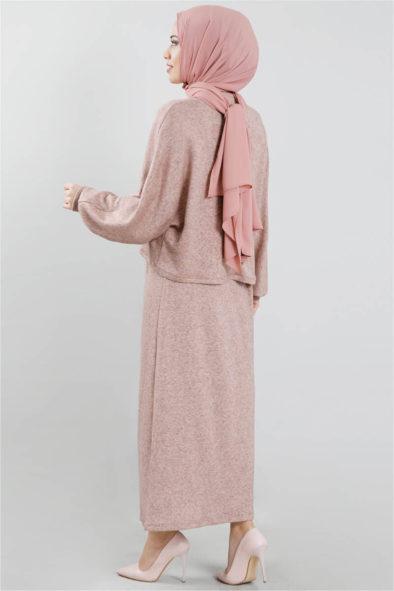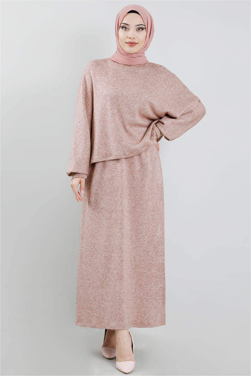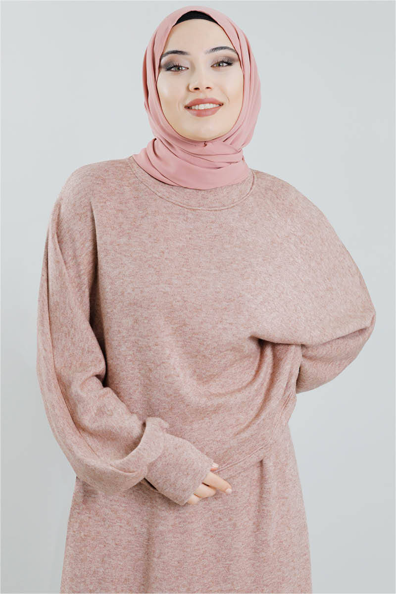 Yarasa kol, bisiklet yaka. Etek beli lastiklidir. Hafif kloştur.