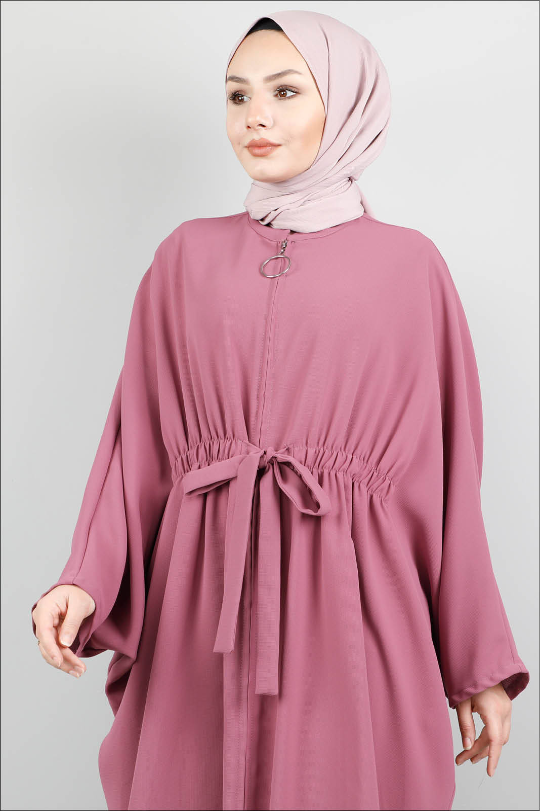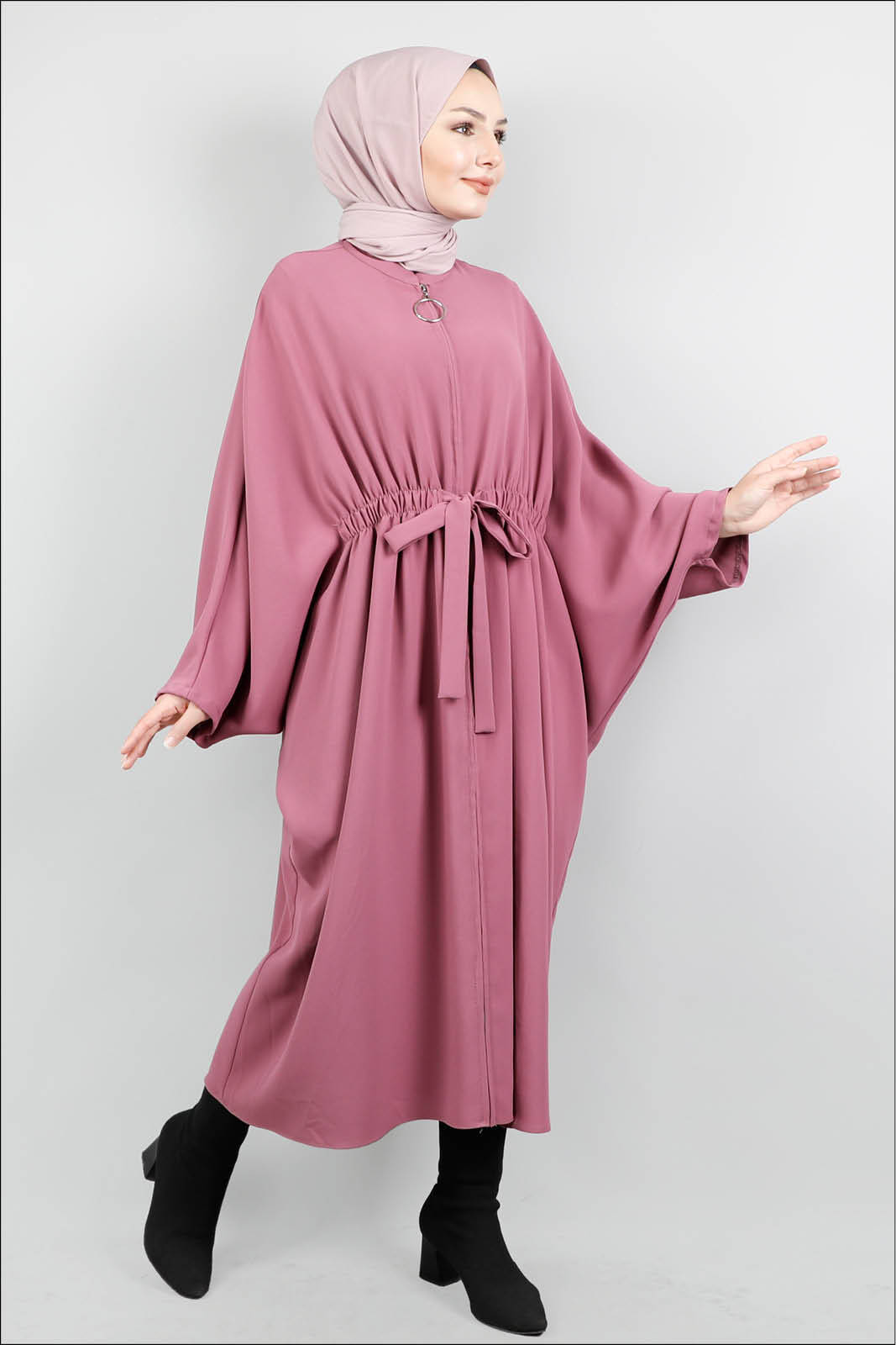 Fermuarlı Belden Kuşaklı Gül Kurusu Tunik