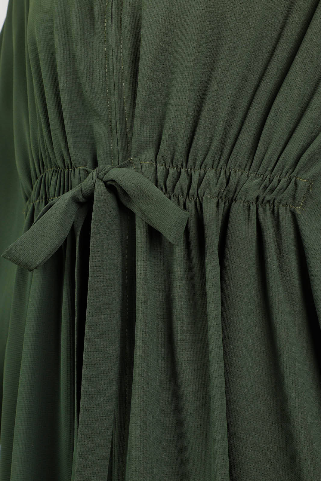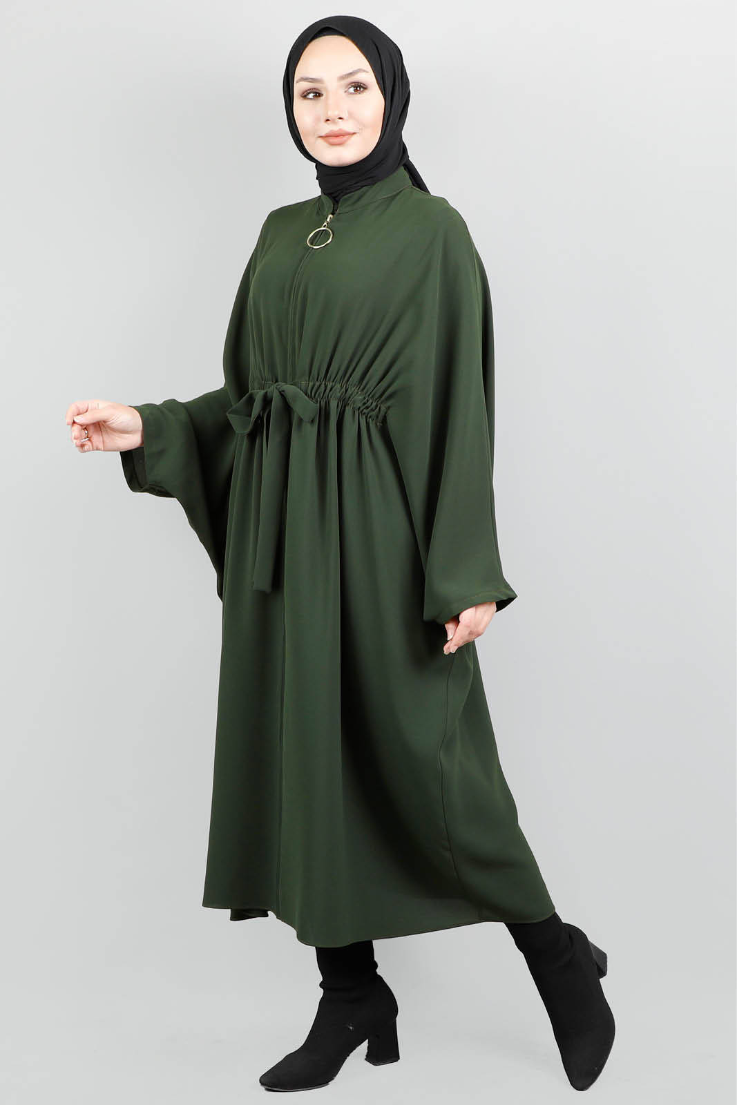 Fermuarlı Belden Kuşaklı Koyu Yeşil Tunik