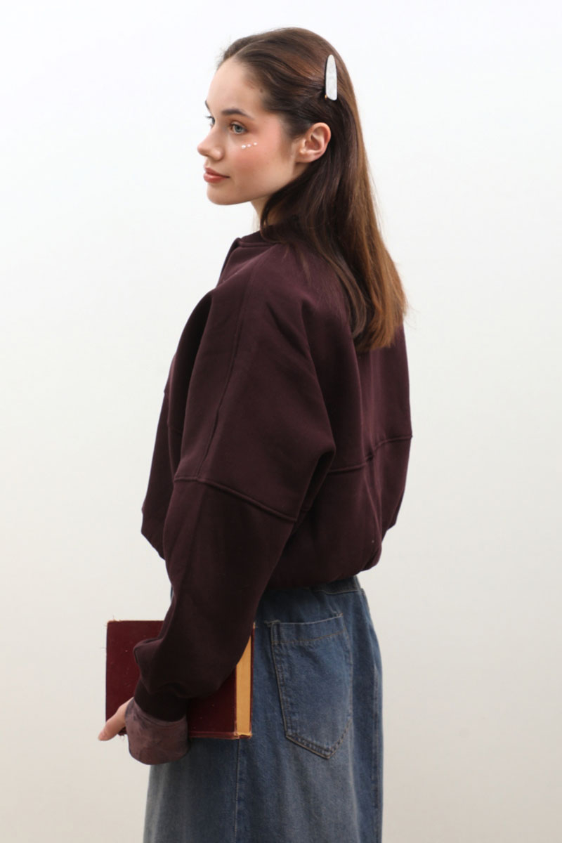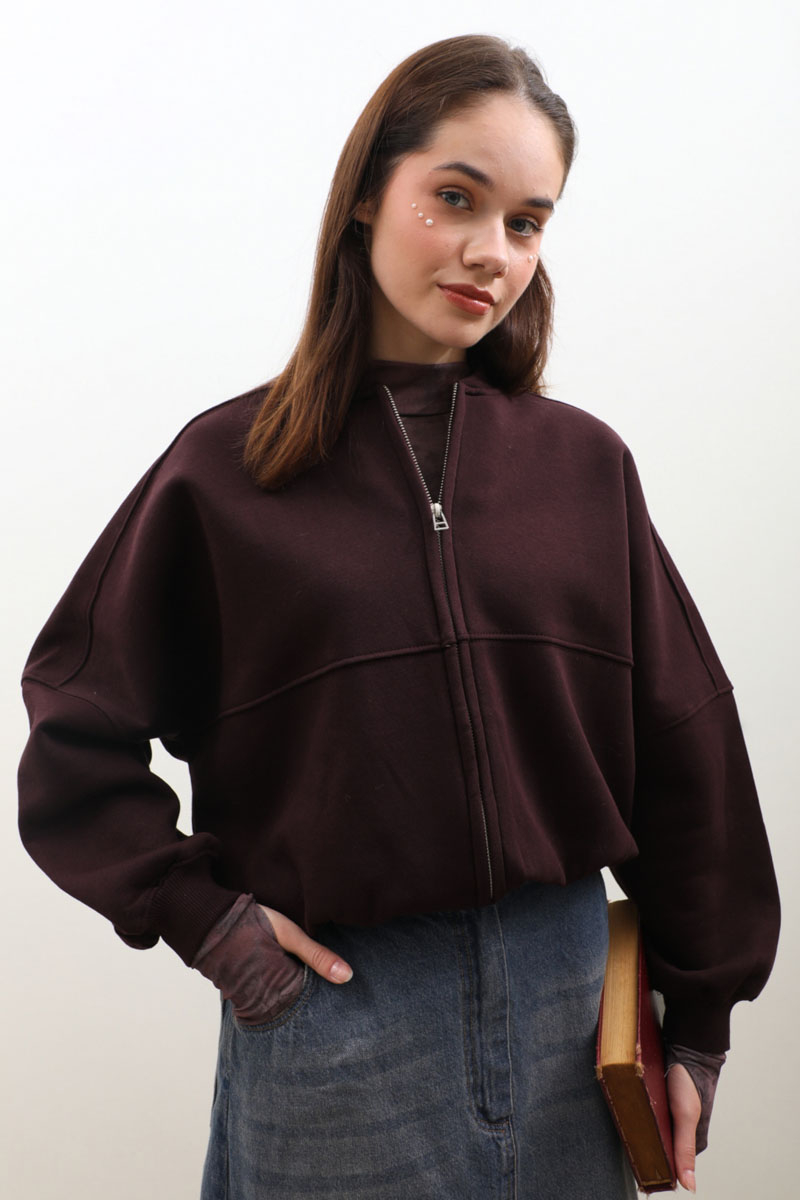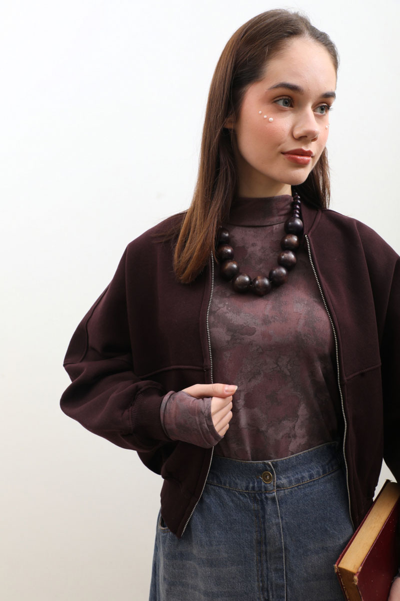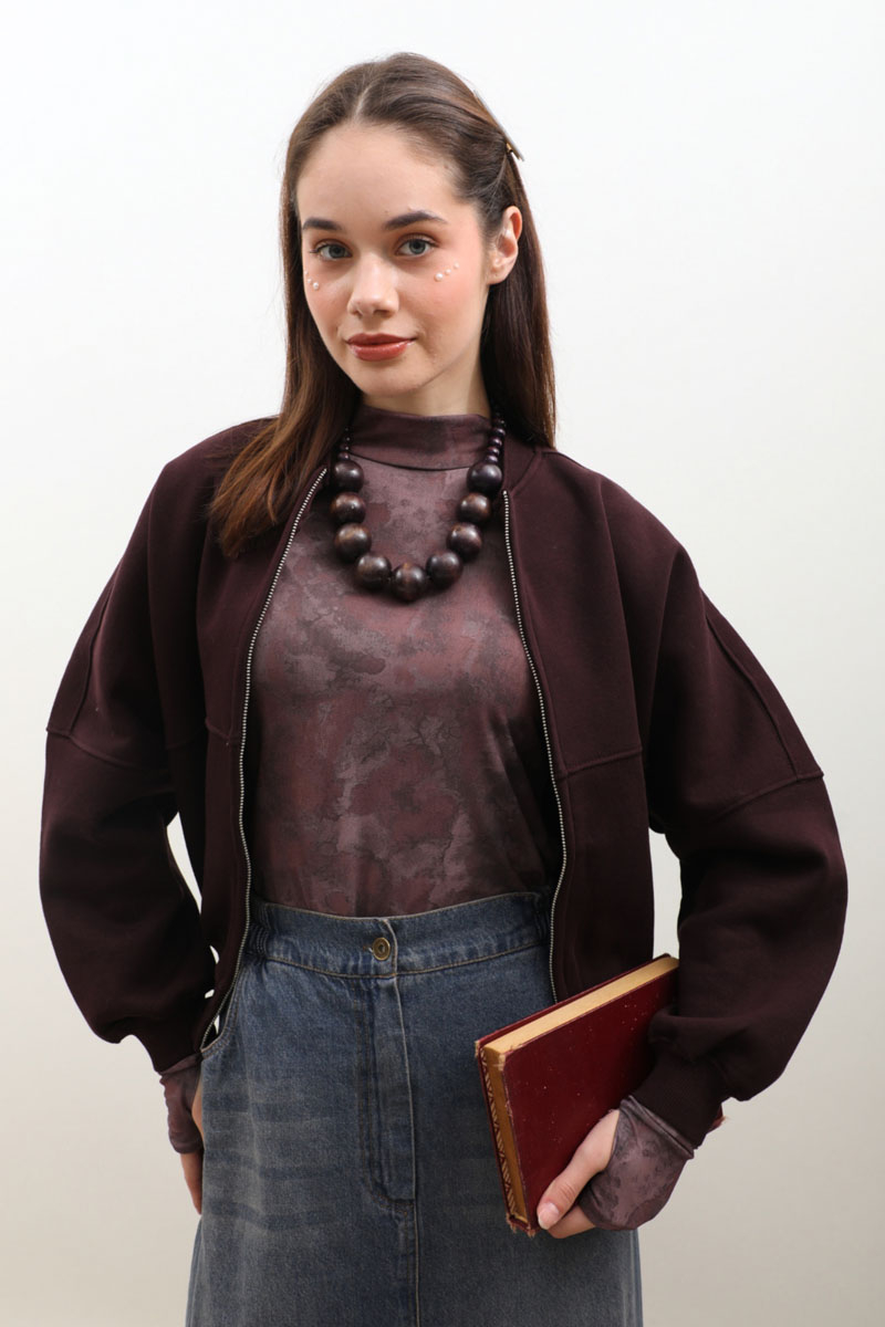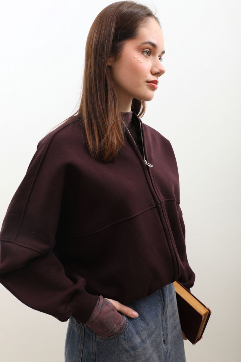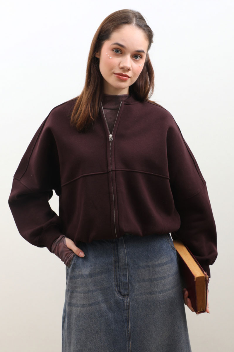Fermuarlı Bomber Ceket Bordo. Ribana yakadır, hafif yarasa kolludur, bomber kesimdir, önden dikiş detayldır ve fermuarlıdır, cepsizdir, içi polarlıdır. Günlük kullanım ve özel günlerinizde tercih edebilirsiniz.
