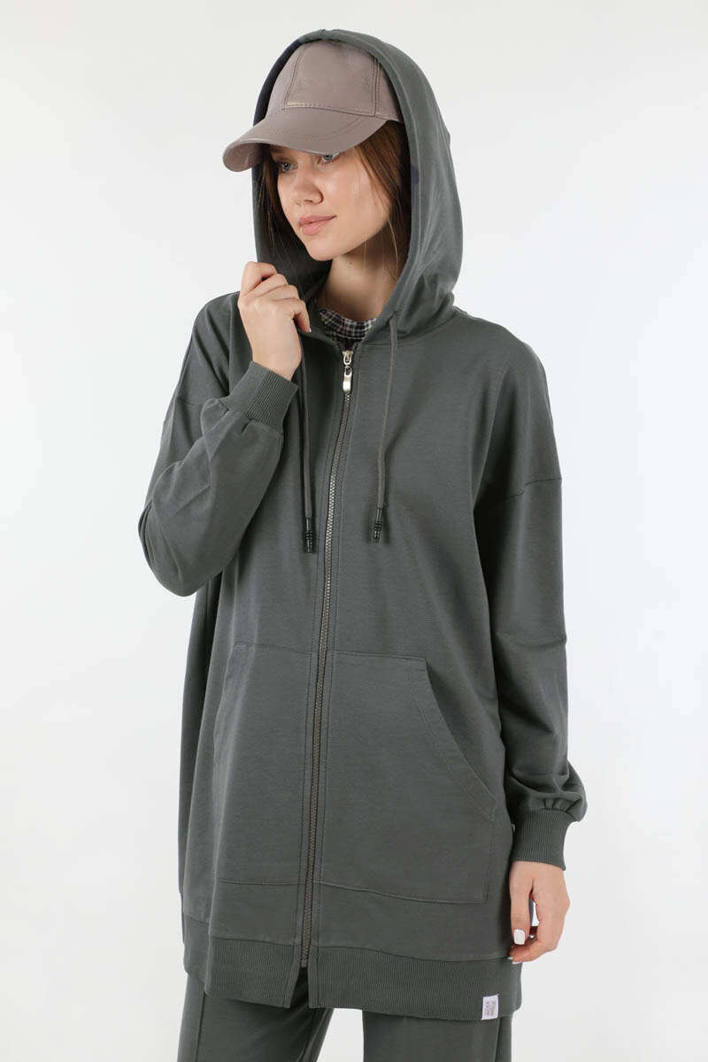 Fermuarlı Kapüşonlu Spor Takım Füme
