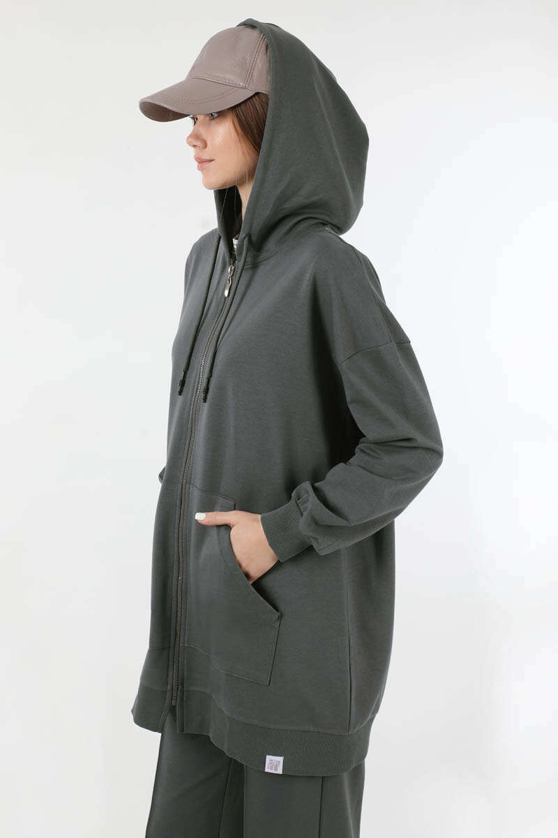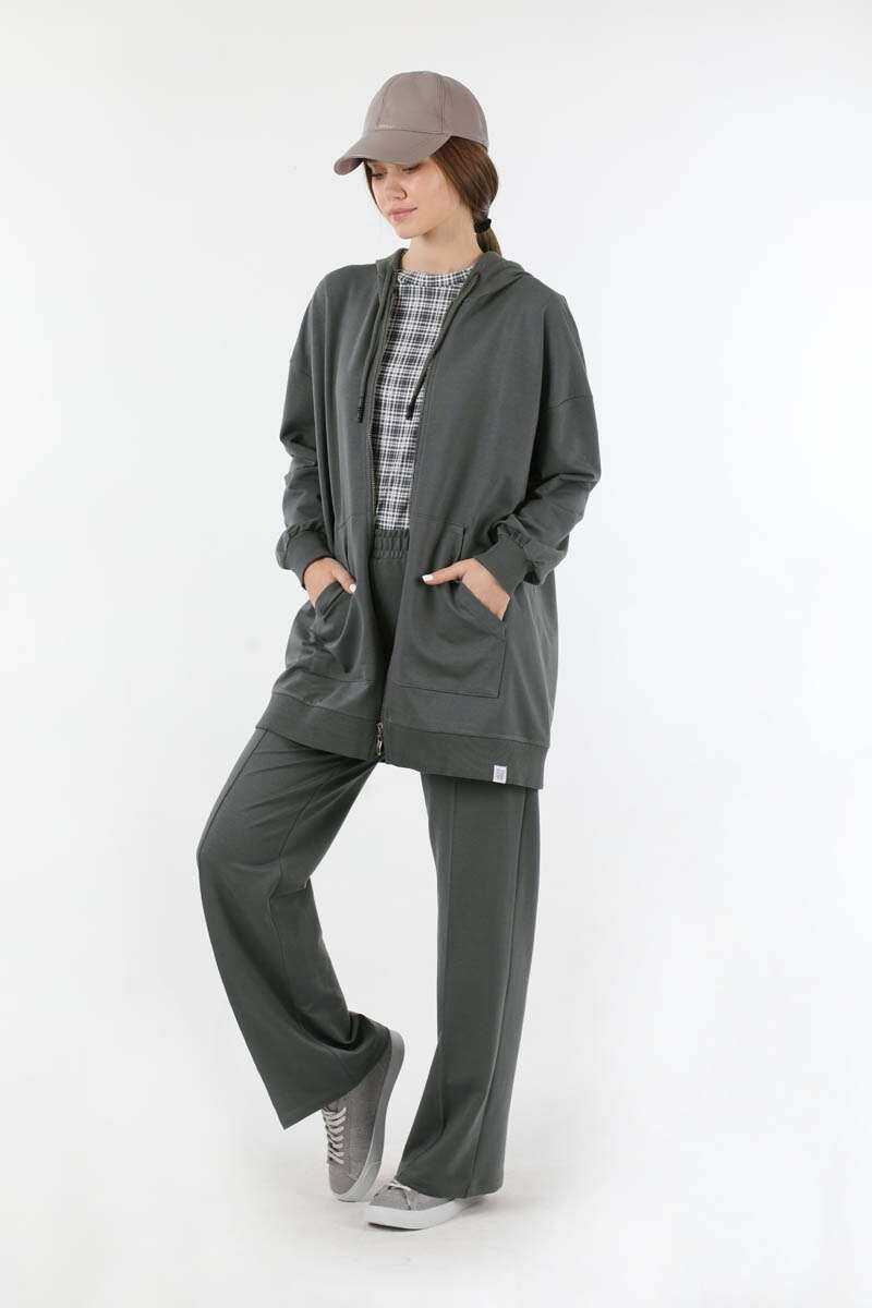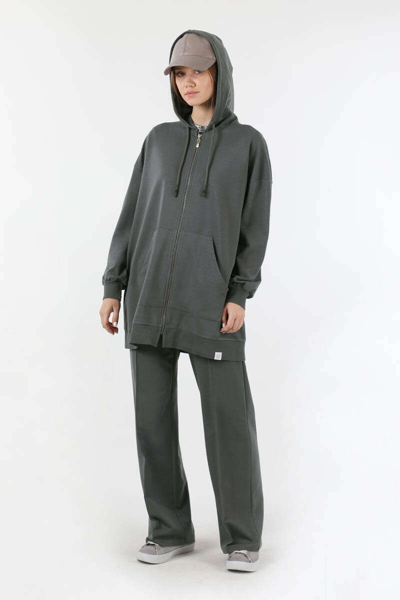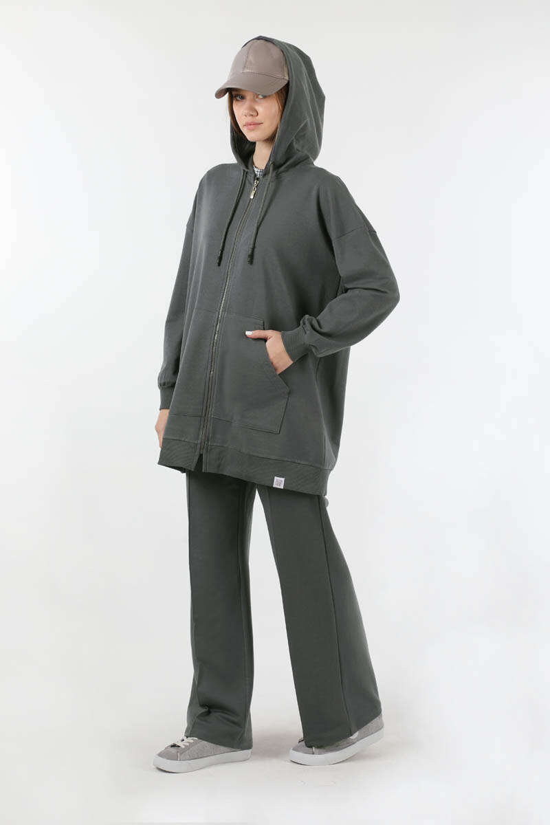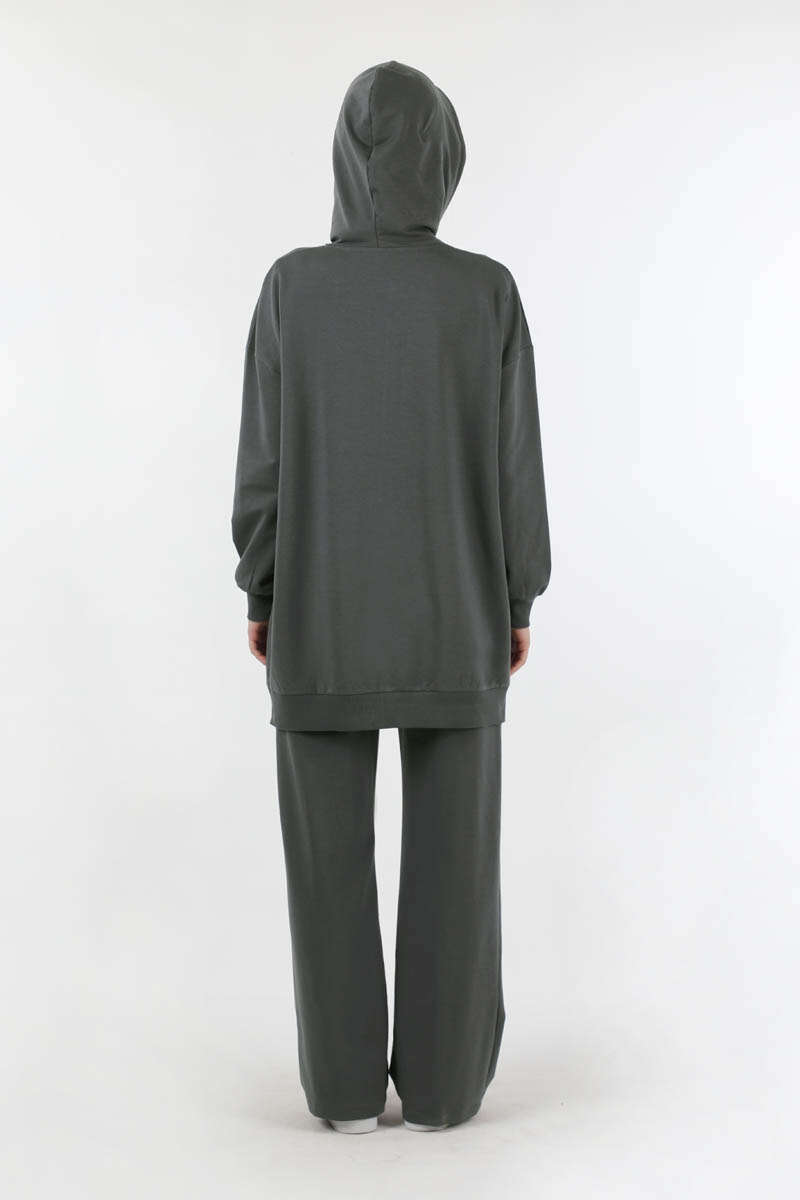 Fermuarlı Kapüşonlu Spor Takım Füme. Kanguru ceplidir. Kol ağzı ve eteği triko bant detaylıdır. Kapüşonludur. Düşük omuzludur. Pantolon önden çima detaylıdır. Pantolon beli lastiklidir. Günlük kullanım ve özel günlerinizde tercih edebilirsiniz.