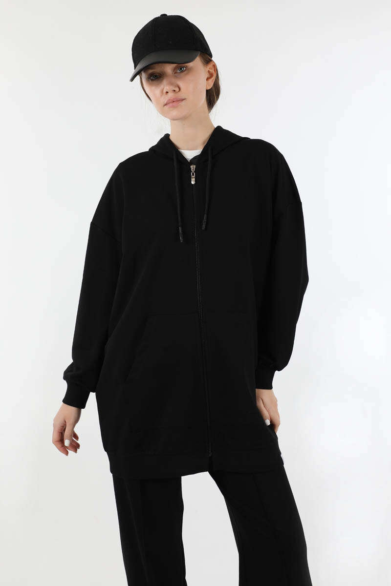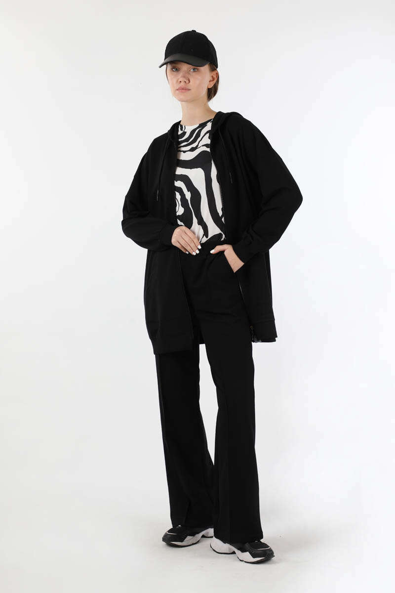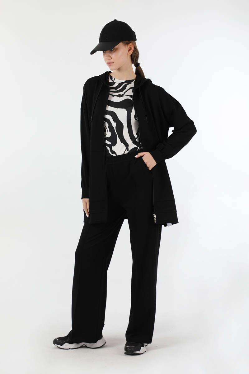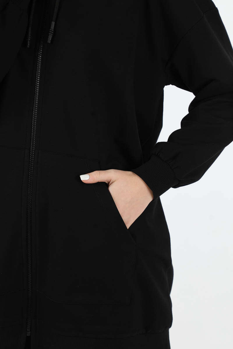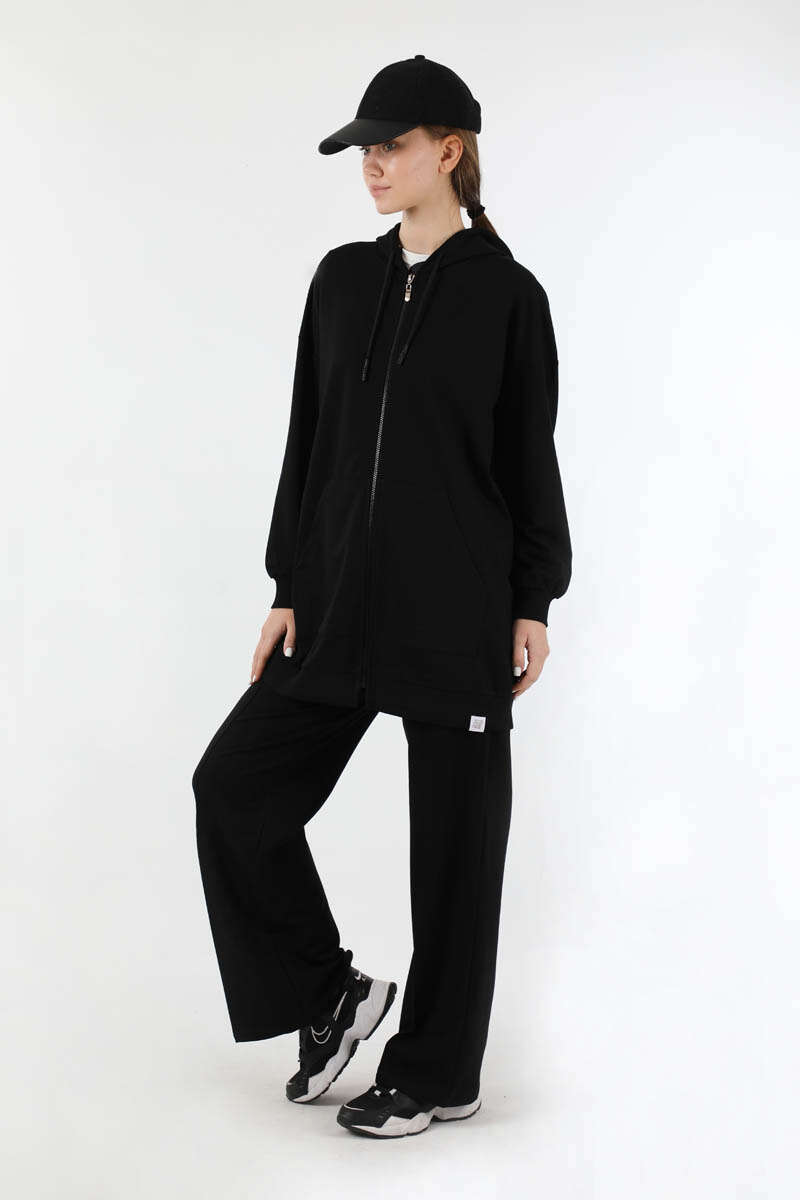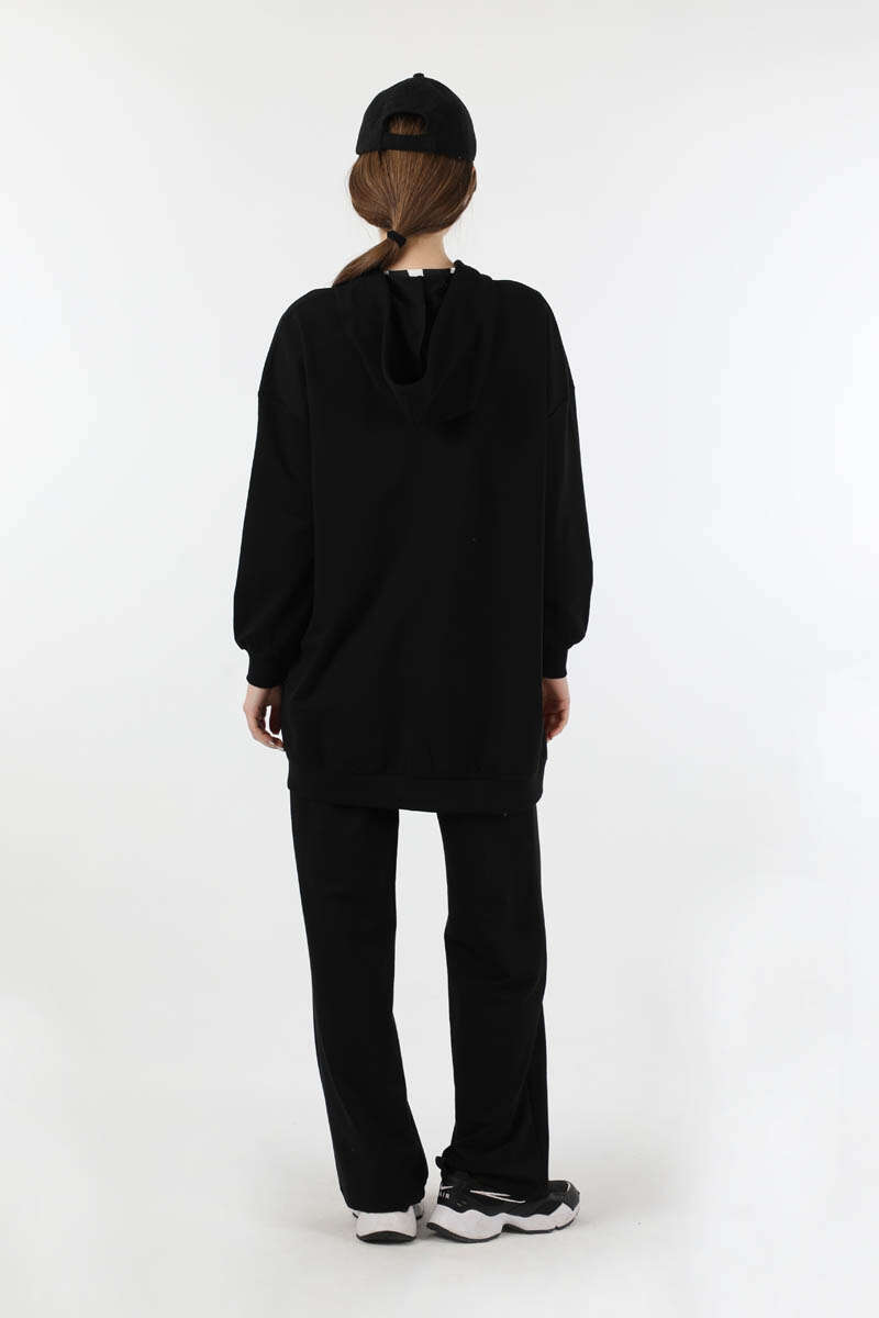 Fermuarlı Kapüşonlu Spor Takım Siyah. Kanguru ceplidir. Kol ağzı ve eteği triko bant detaylıdır. Kapüşonludur. Düşük omuzludur. Pantolon önden çima detaylıdır. Pantolon beli lastiklidir. Günlük kullanım ve özel günlerinizde tercih edebilirsiniz.