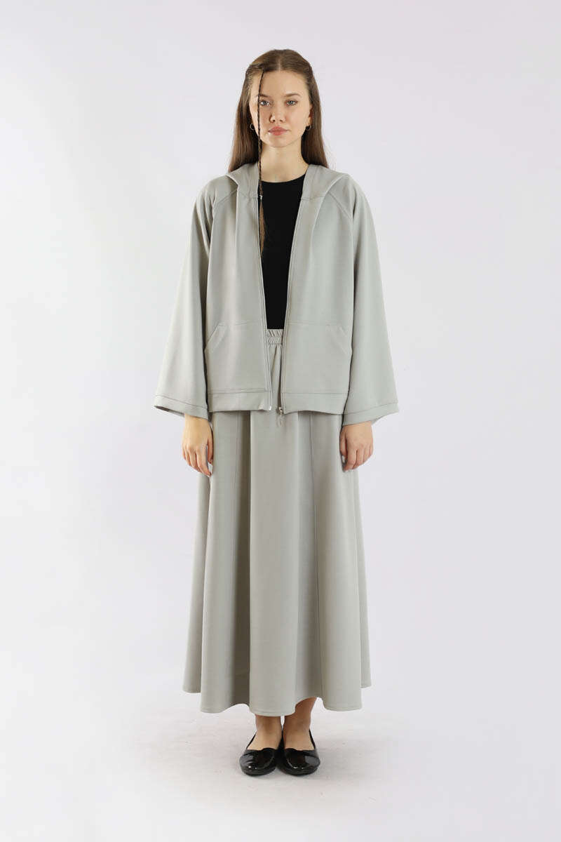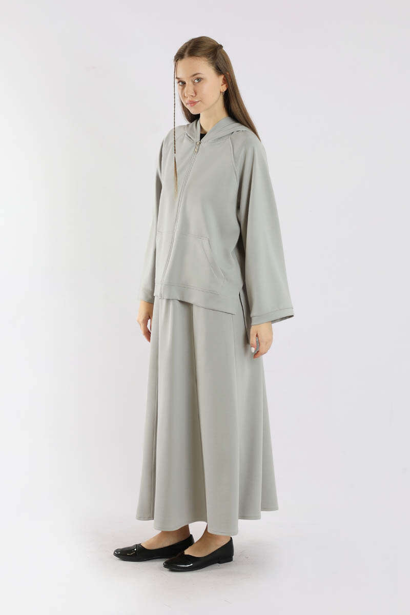 Fermuarlı Sweat Etek Takım Gri. Sweat ön arkadan kısa şeklinde tasarlanmıştır. Kol ağzı geniştir. Reglan kolludur. Kanguru ceplidir. Etek yandan ceplidir. Etek beli lastiklidir. Hem spor hem de günlük aktiviteler için ideal olan bu takım, rahatlığı, şıklığı ve konforu aynı anda sunarak stilin mükemmel bir kombinasyonunu sunuyor.