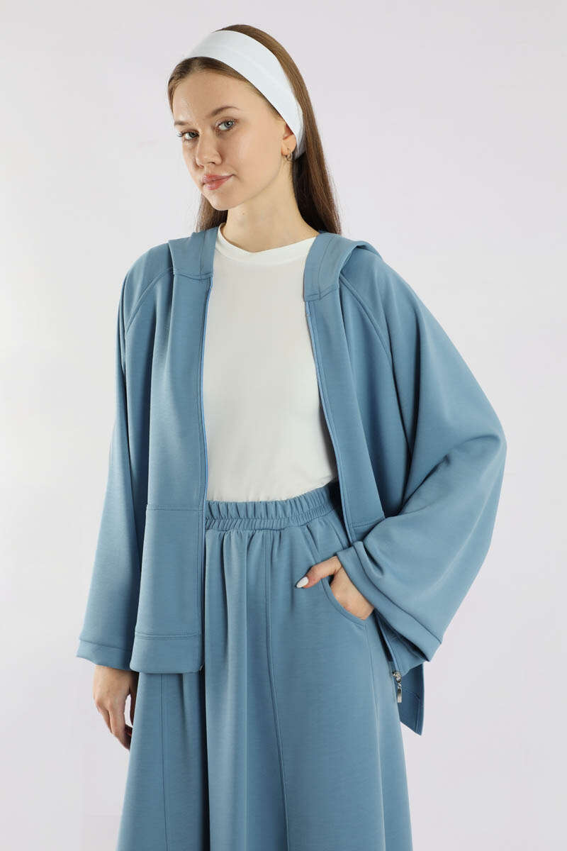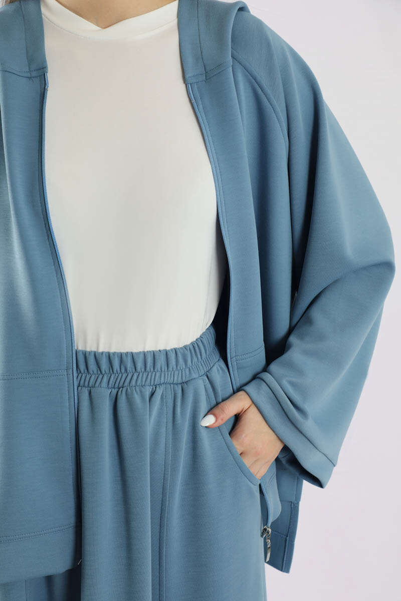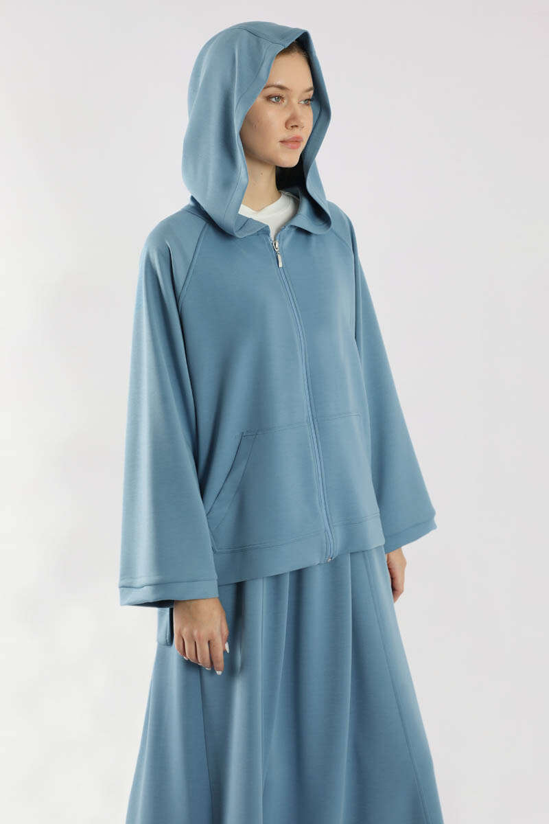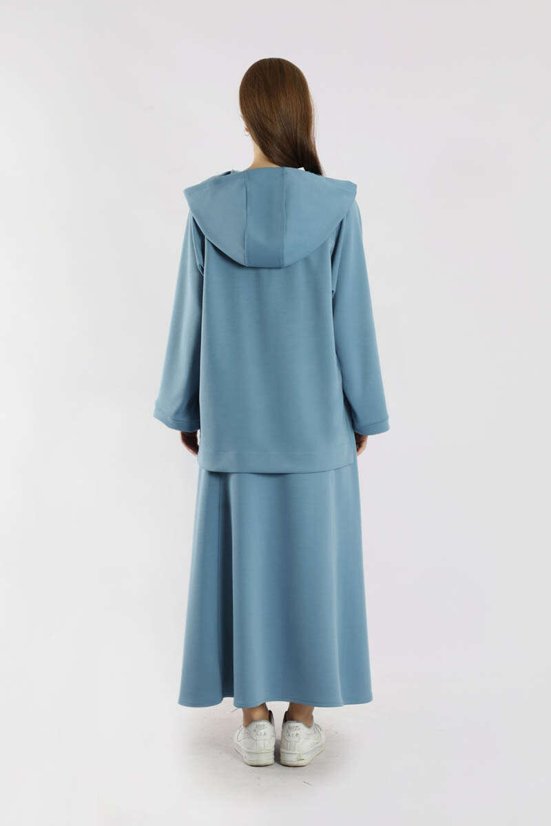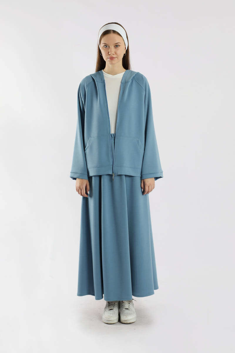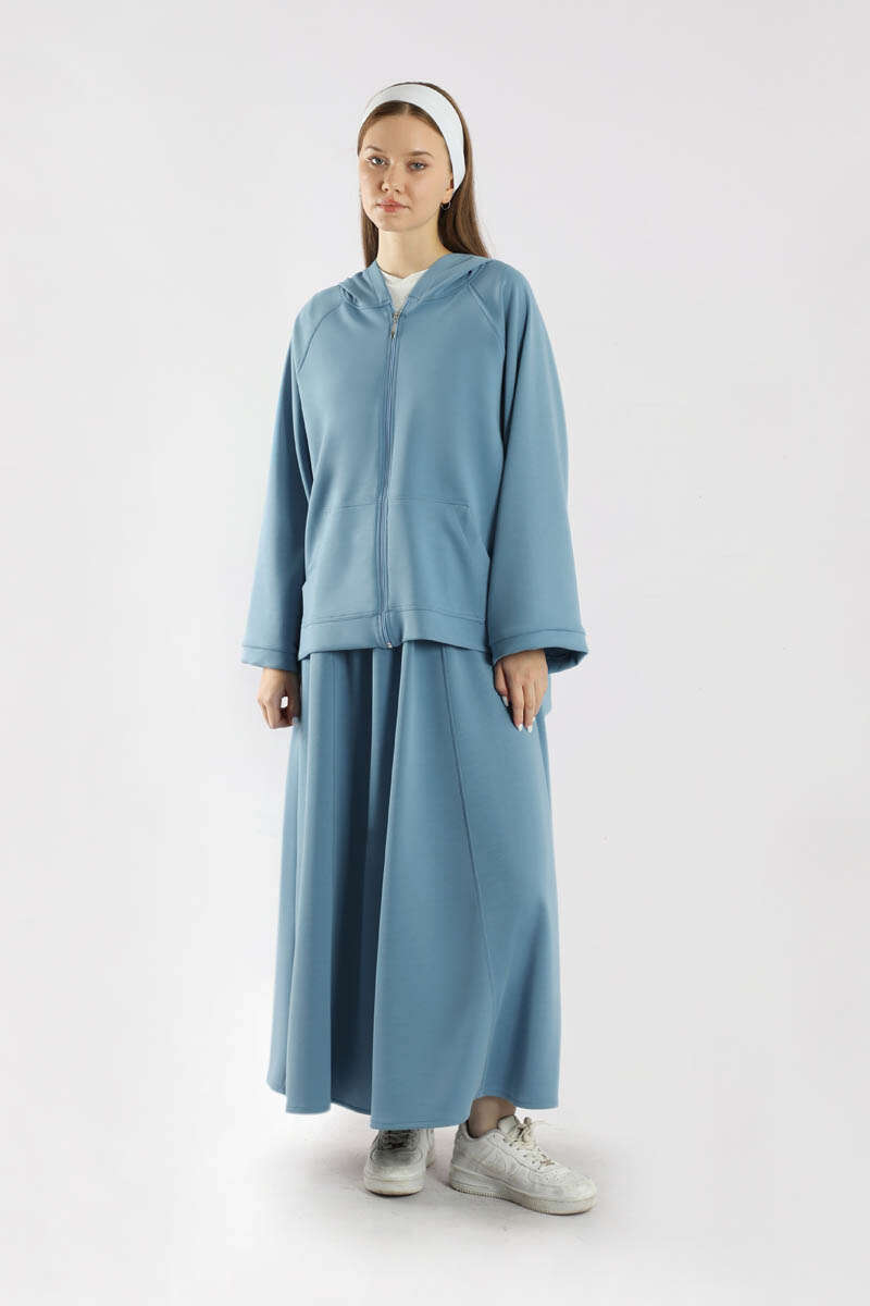 Fermuarlı Sweat Etek Takım İndigo