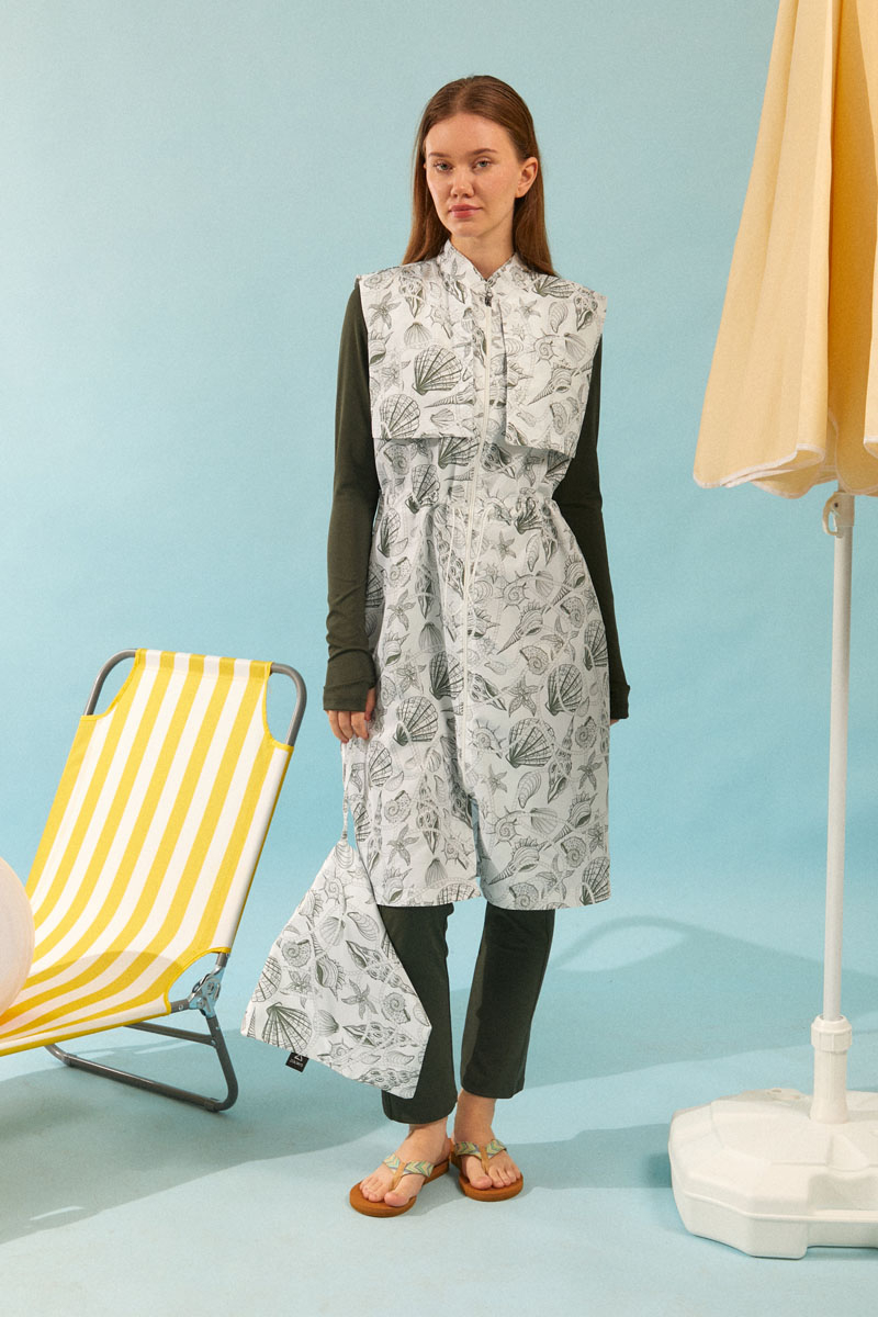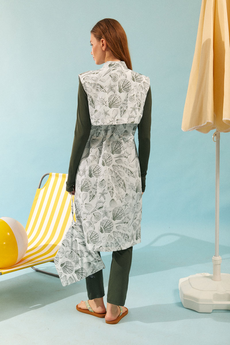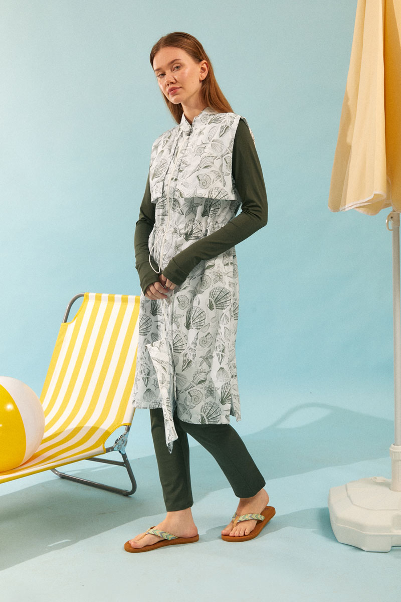 Fermuarlı Yelekli Tesettür Mayo Haki
